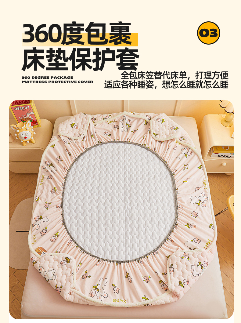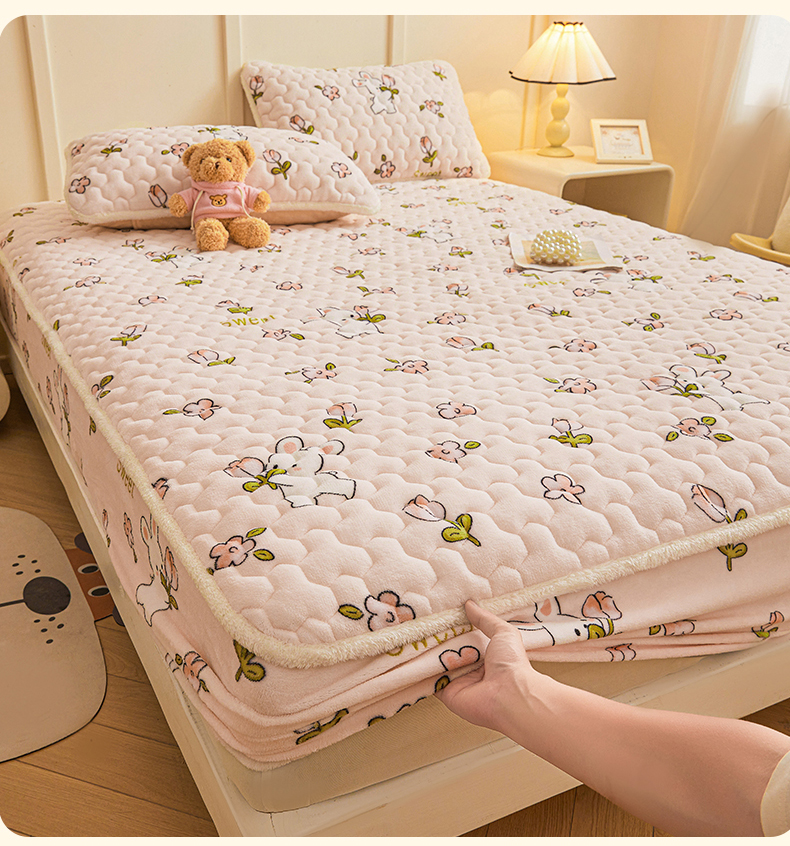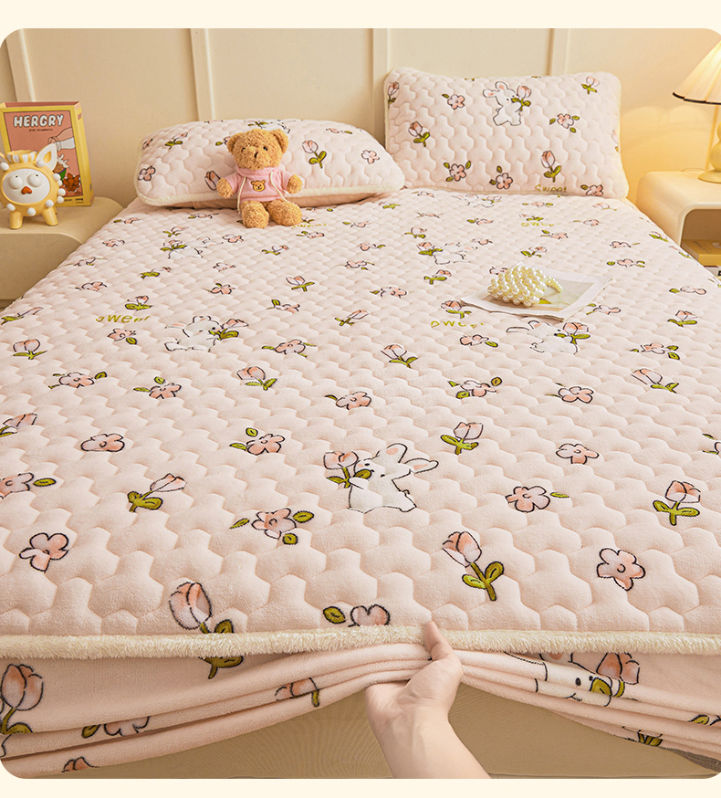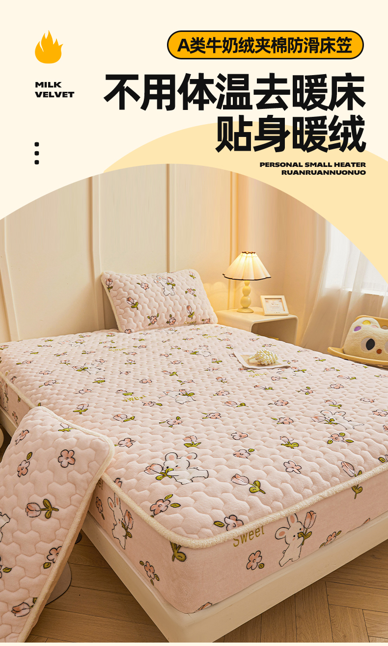 当前位置: 91家纺网 > 商品网购 > 床上用品 > 床垫套 > 雯豆家纺 2025新款牛奶绒夹棉床笠印花款床垫保护套秋冬保暖床罩 牛奶绒夹棉床笠-月季小兔