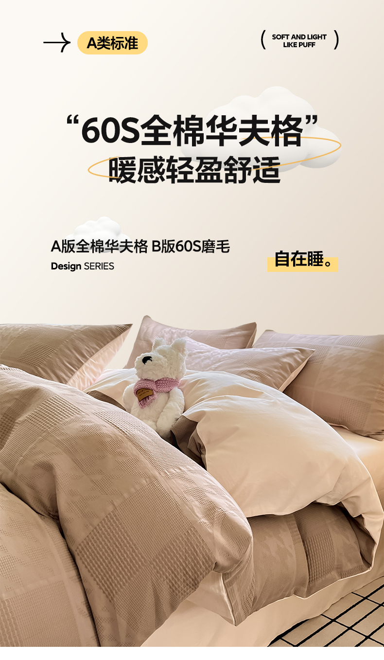 商品名称:(总)言一 2025秋冬新品A类60S新疆长绒棉纯棉陶瓷轻磨毛四件套提花全棉床单被套不掉毛2