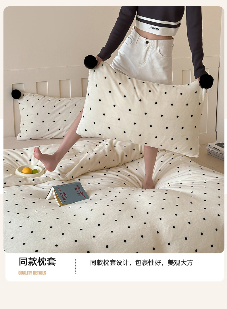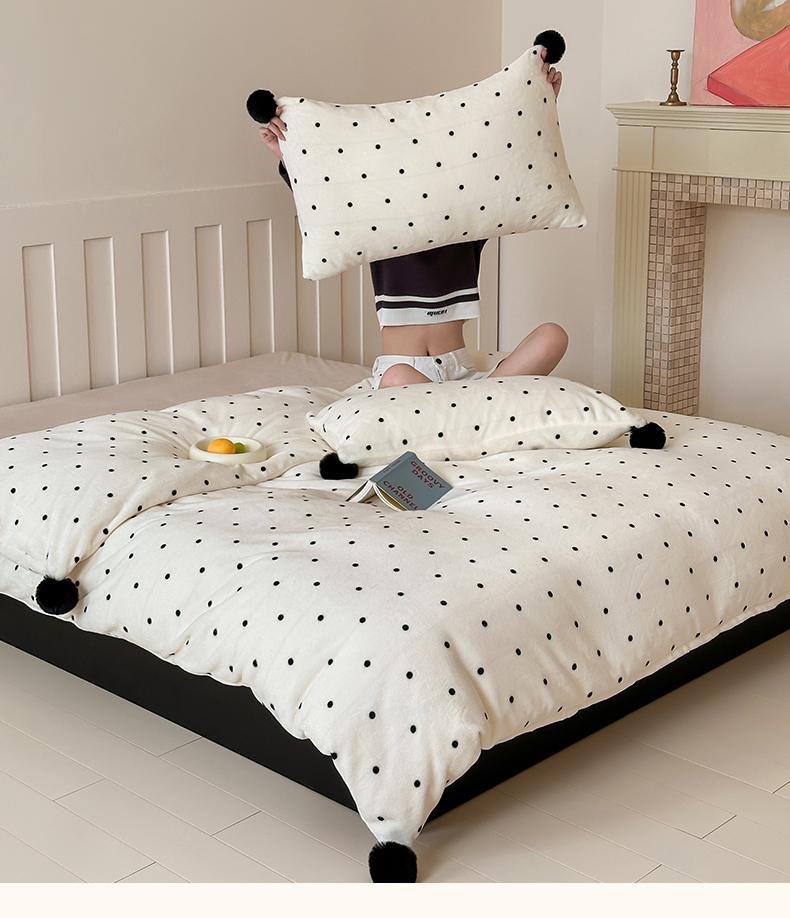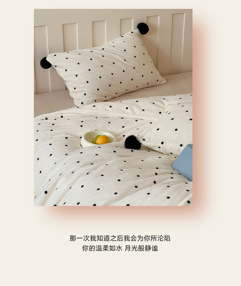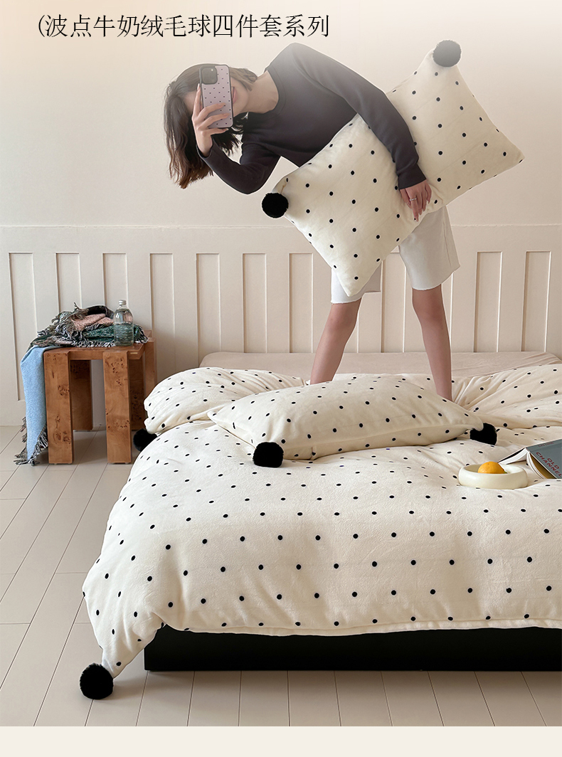 商品名称:玛奇朵 2024秋冬新品波点牛奶绒毛球套件四件套 波点-奶白