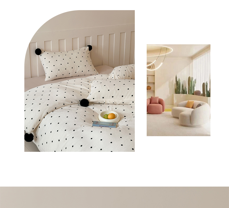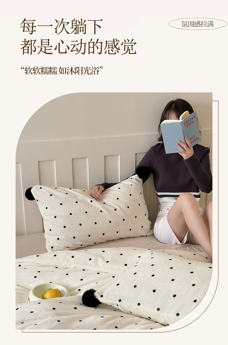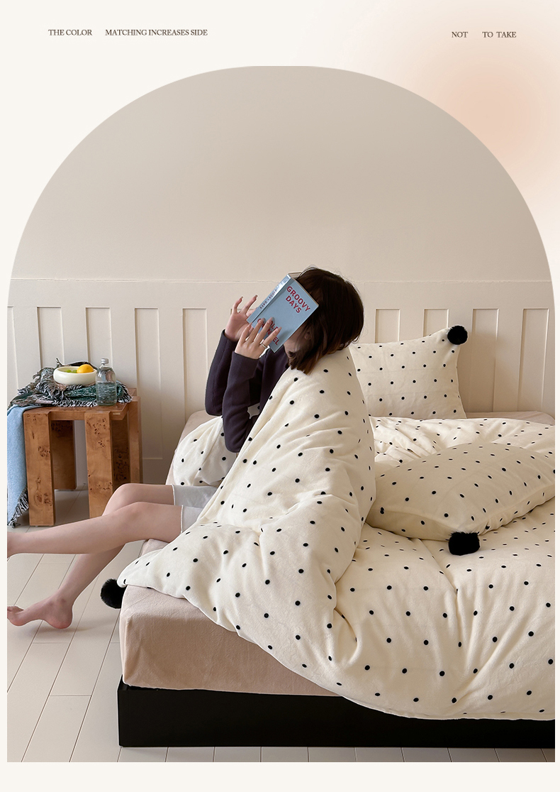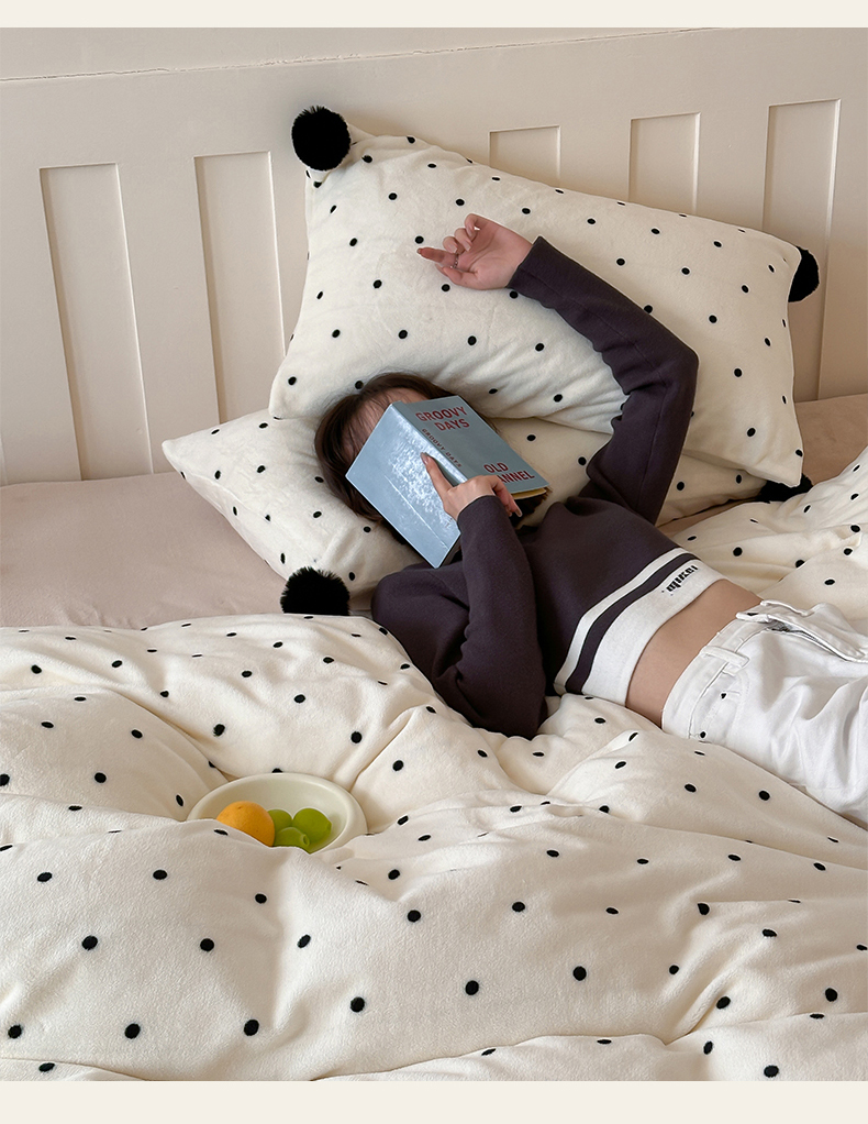商品名称:玛奇朵 2024秋冬新品波点牛奶绒毛球套件四件套 波点-奶白