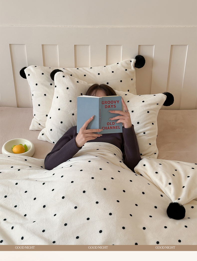 玛奇朵 2024秋冬新品波点牛奶绒毛球套件四件套 波点-奶白