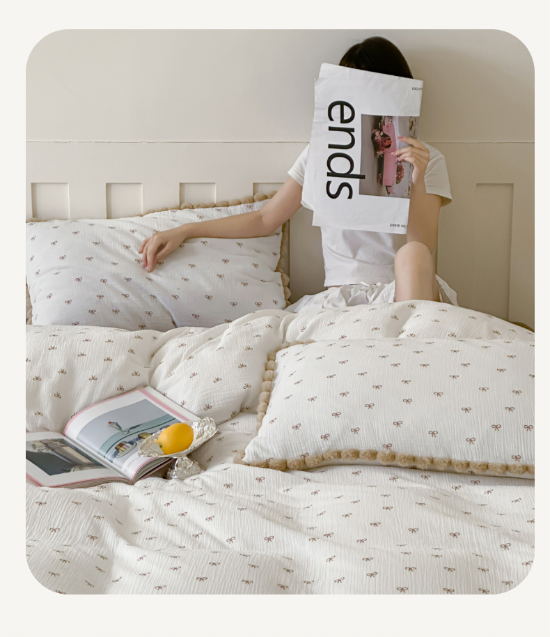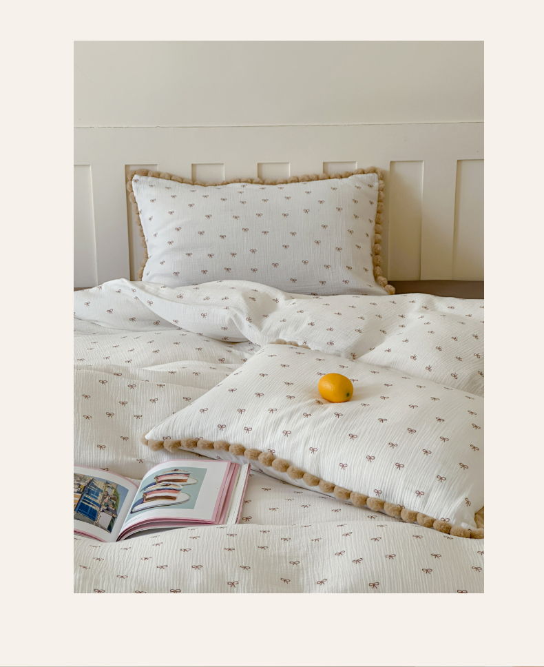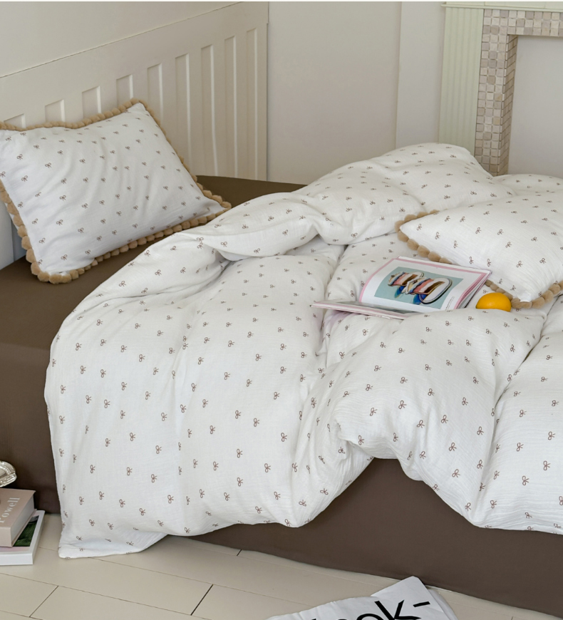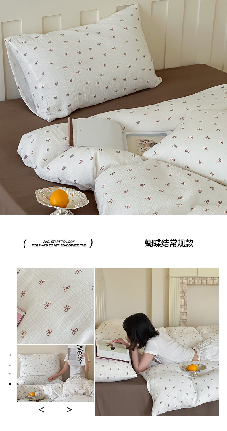 商品名称:玛奇朵 2025新品全棉A类双层皱皱纱四件套-蝴蝶结系列 蝴蝶结毛边款