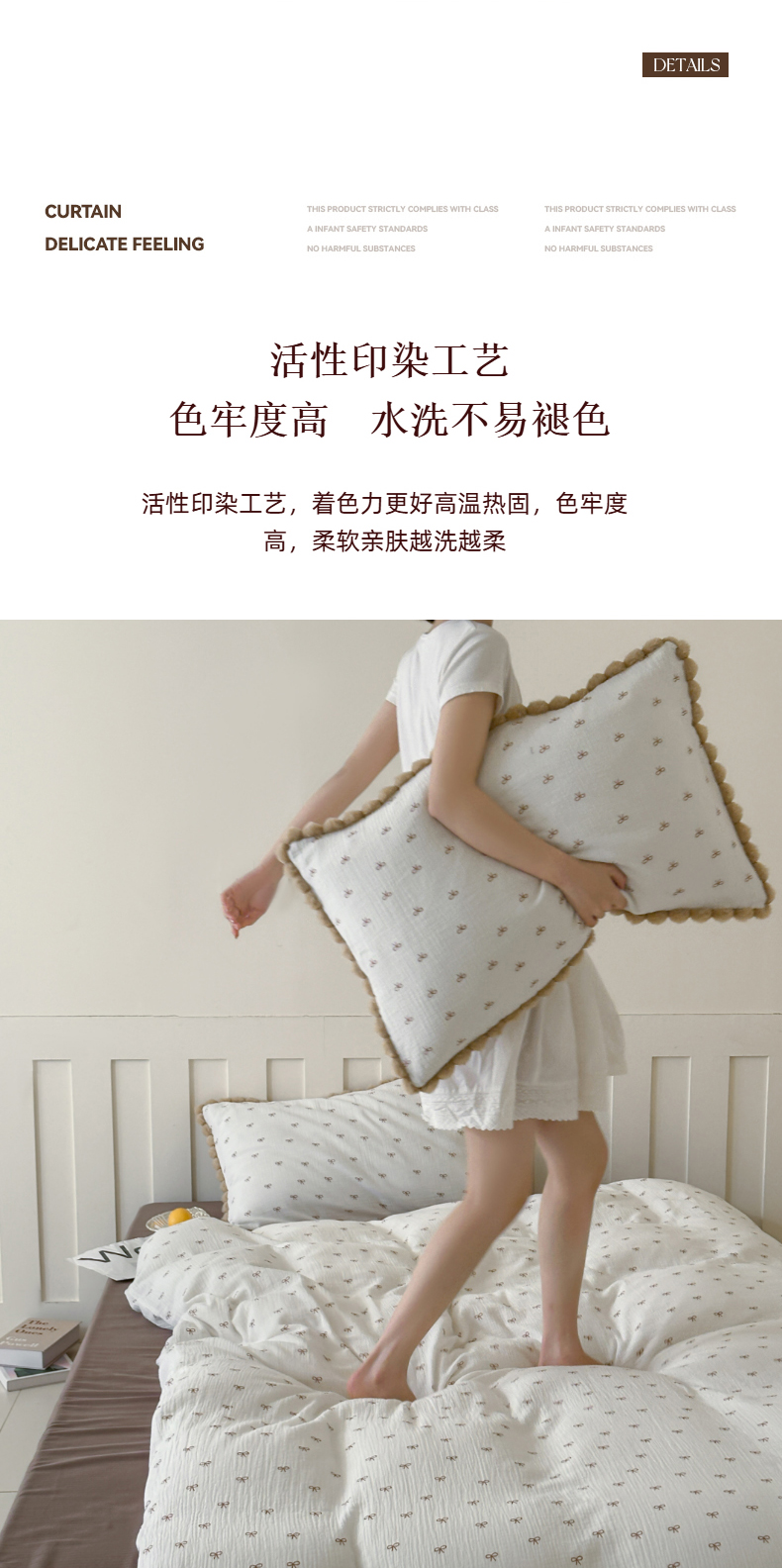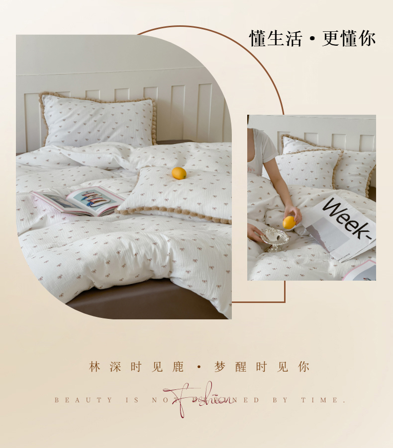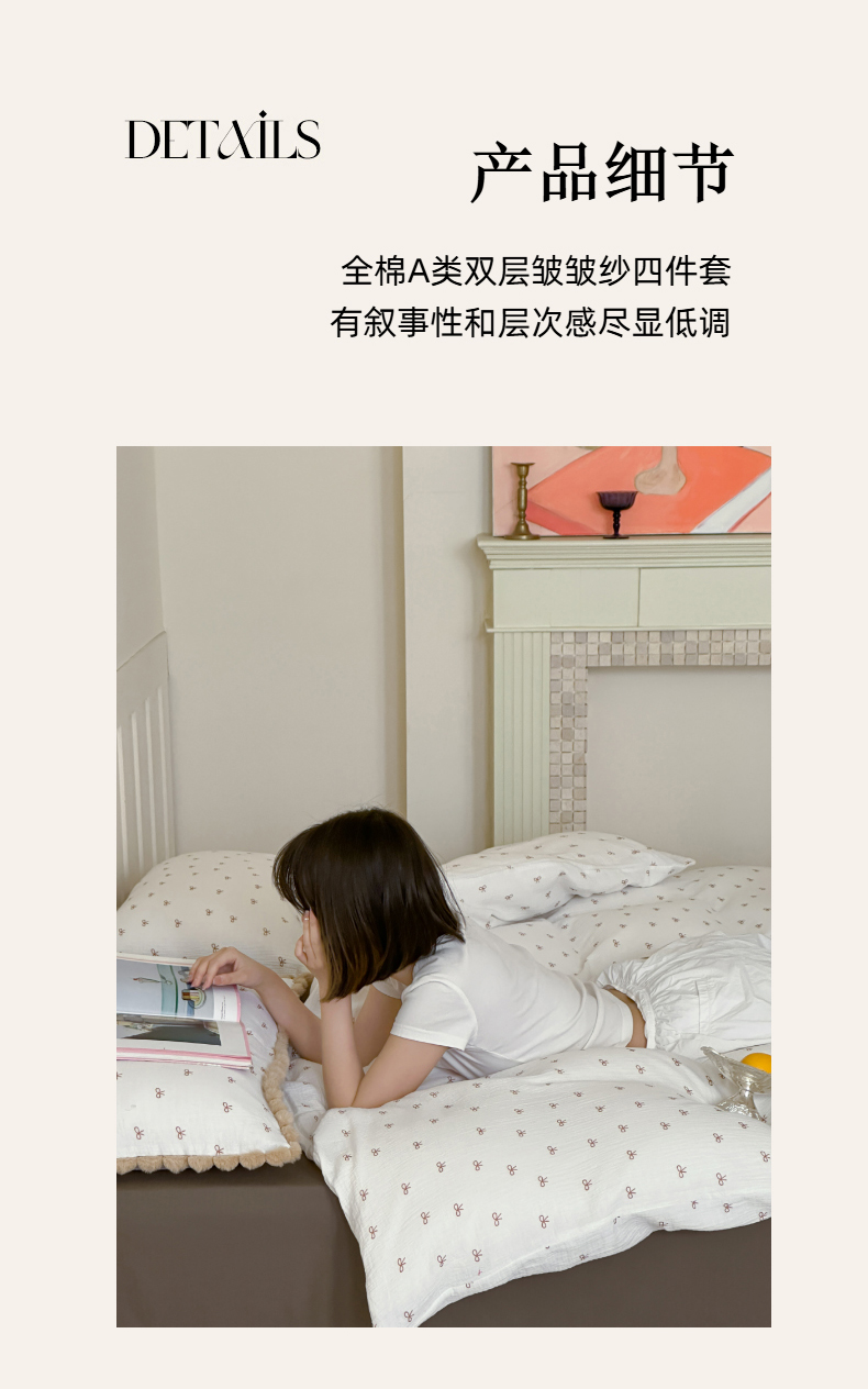 商品名称:玛奇朵 2025新品全棉A类双层皱皱纱四件套-蝴蝶结系列 蝴蝶结毛边款