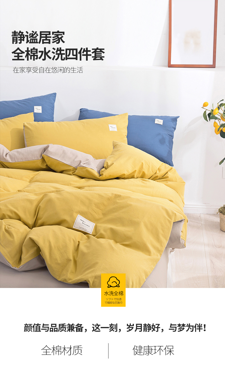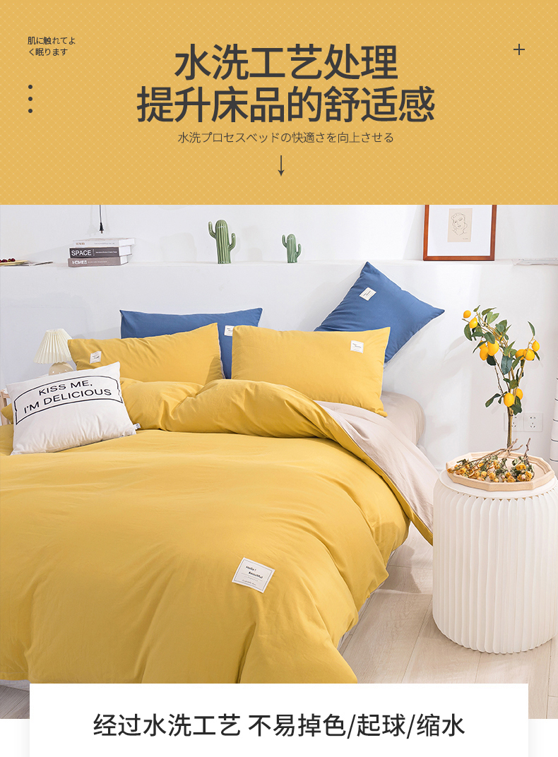 (总)贝尔 PELLHOME 全棉纯棉水洗棉四件套1.5m1.8m纯色北欧风简约(可抖音代发)