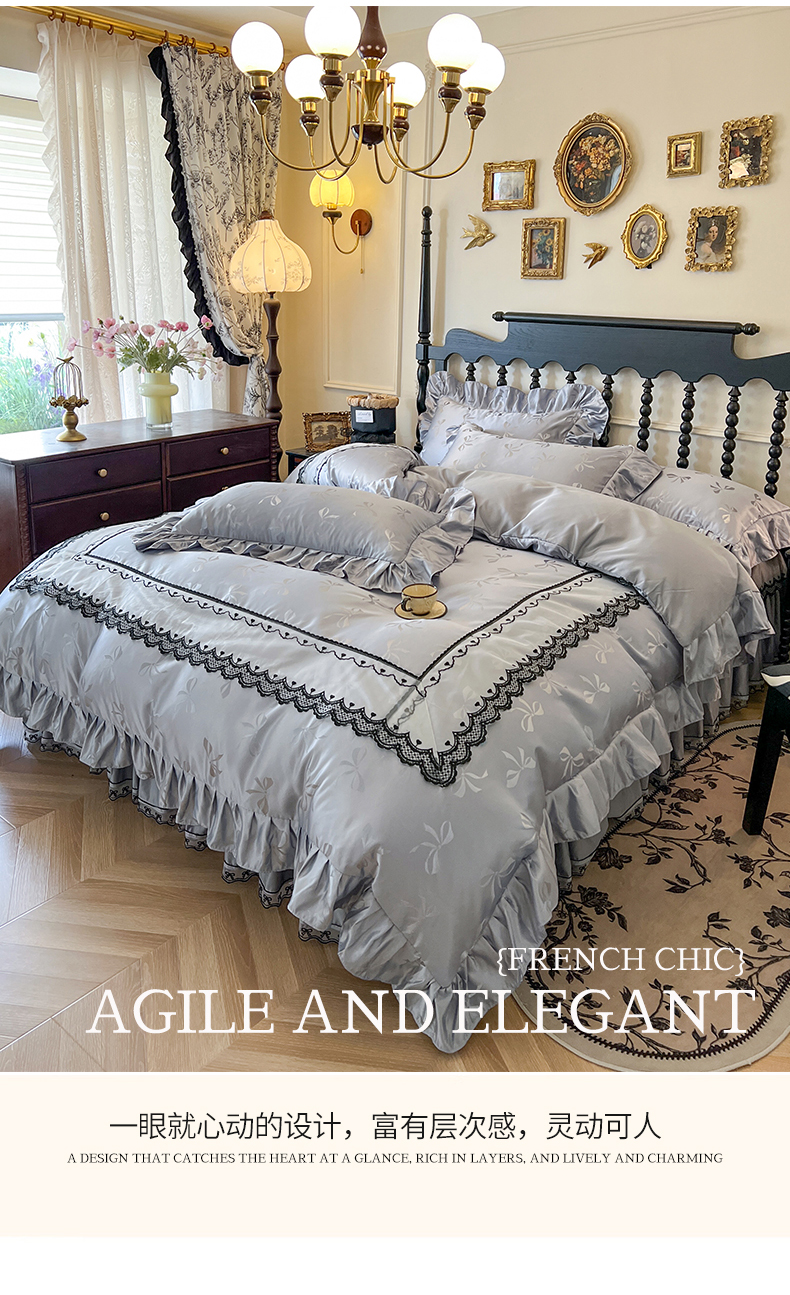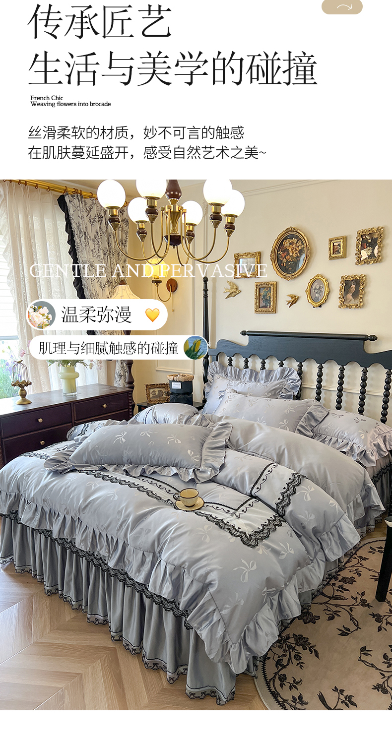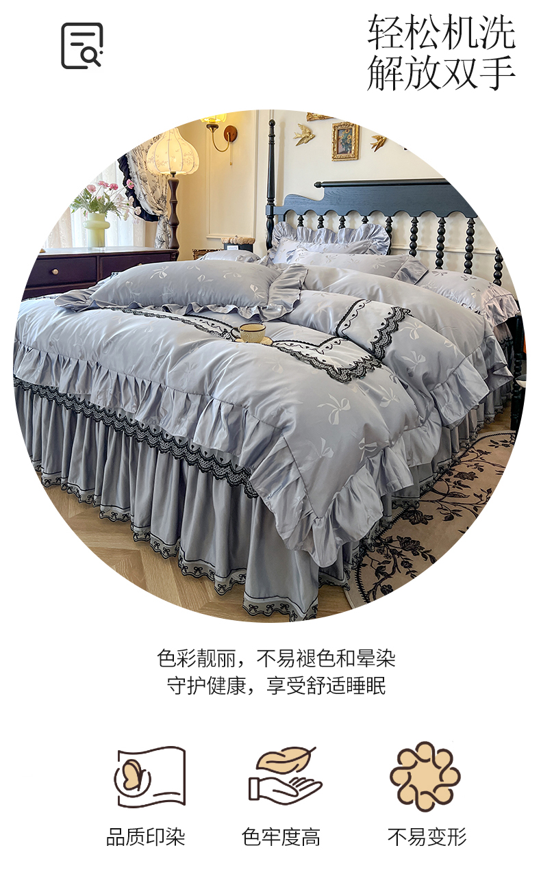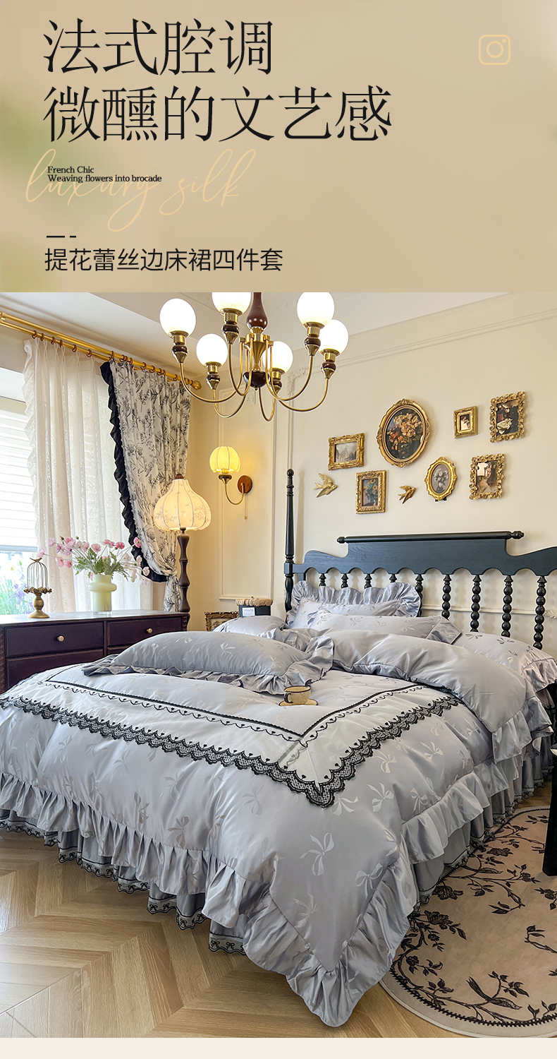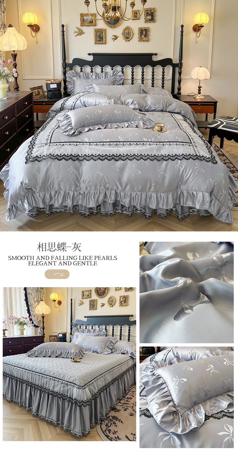 • 91家纺网 家纺一手货源 找家纺 网红馆(ck家纺)2025新款提花蕾丝边床裙四件套-相思蝶 相思蝶-灰