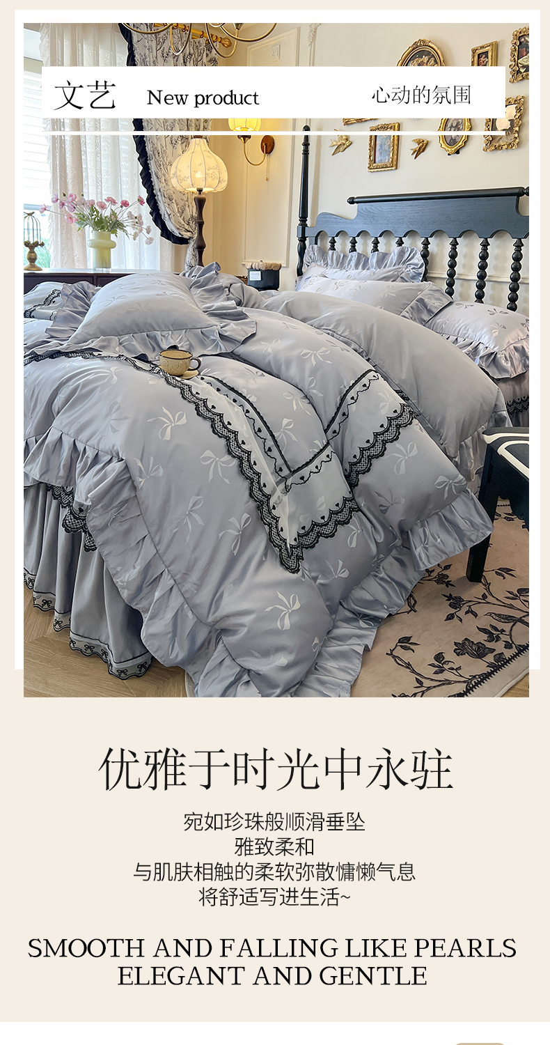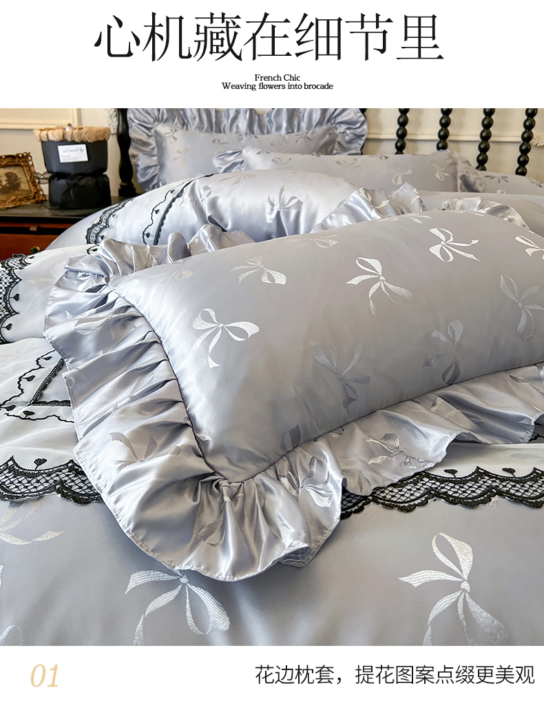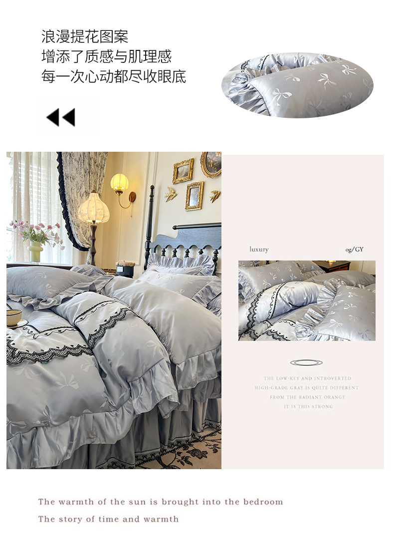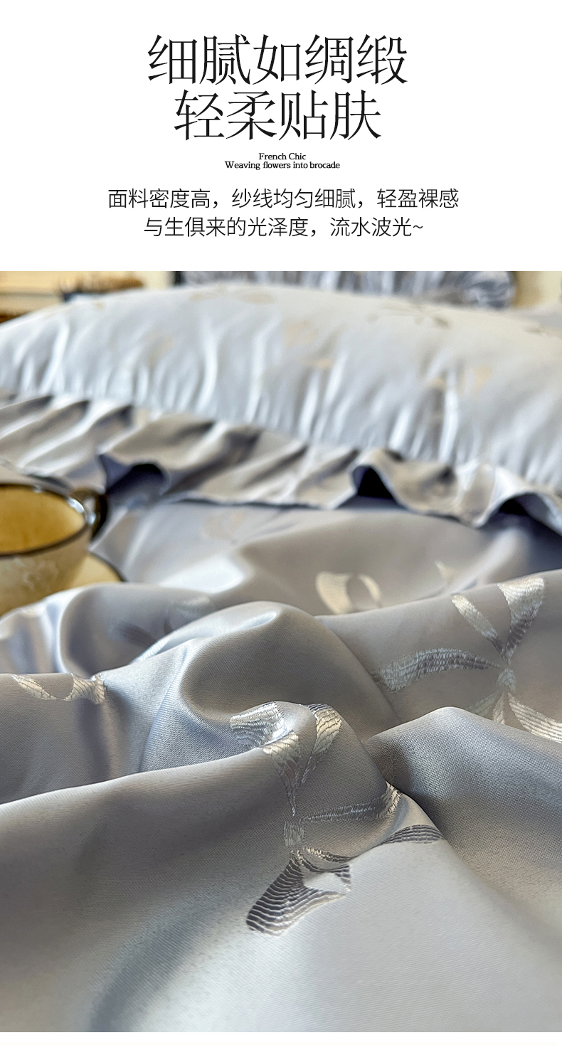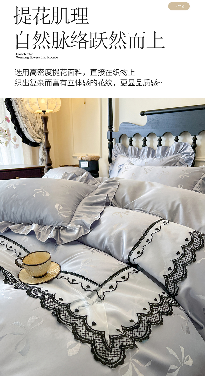 • 91家纺网 家纺一手货源 找家纺 网红馆(ck家纺)2025新款提花蕾丝边床裙四件套-相思蝶 相思蝶-灰