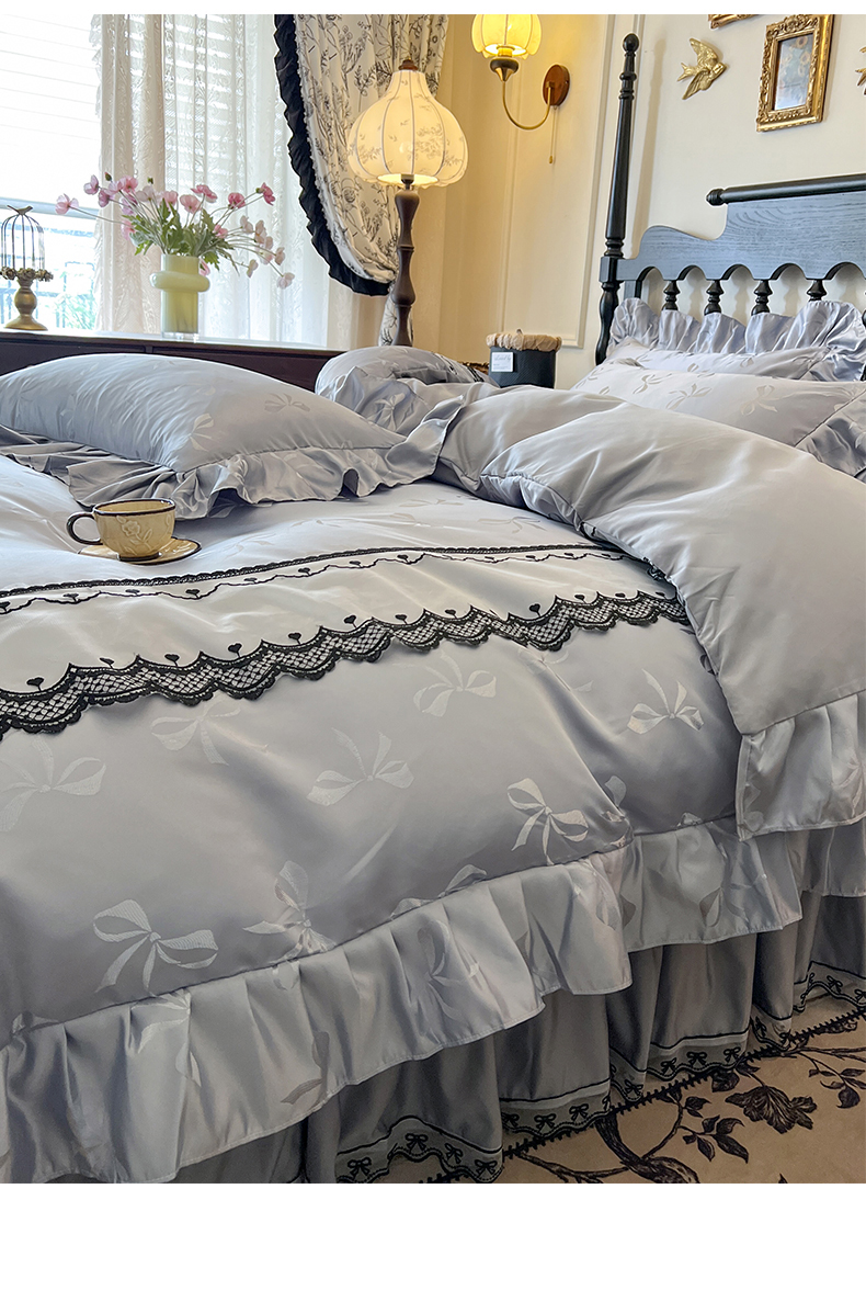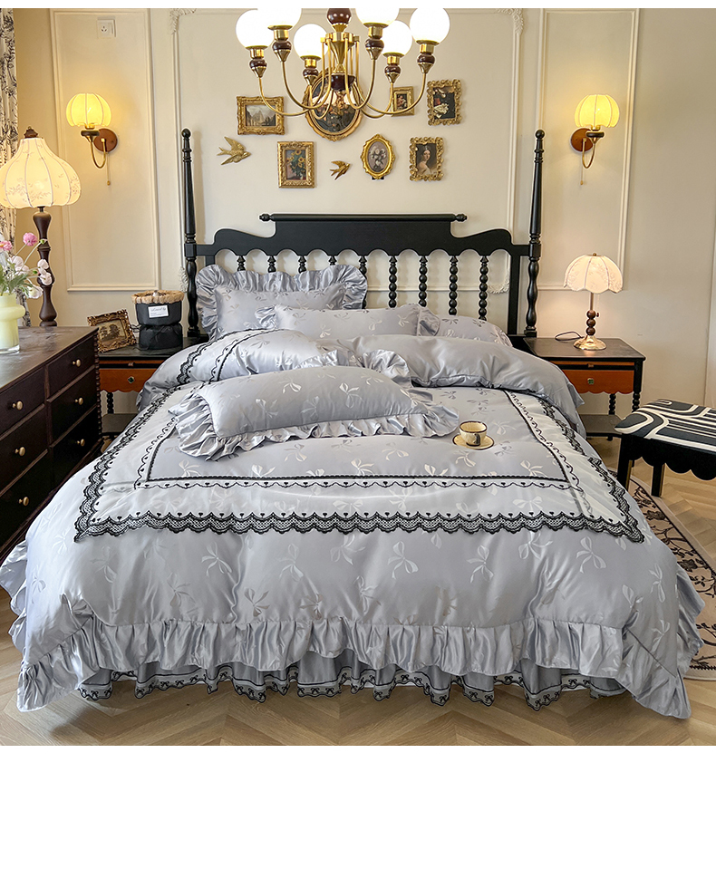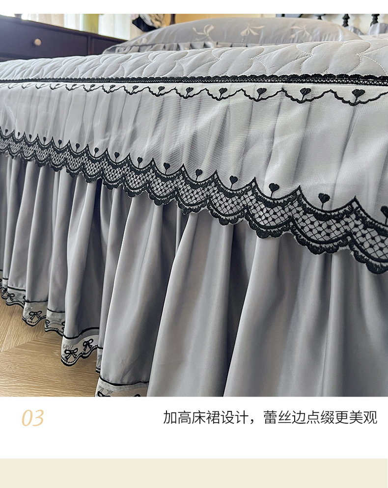 网红馆(ck家纺)2025新款提花蕾丝边床裙四件套-相思蝶 相思蝶-灰