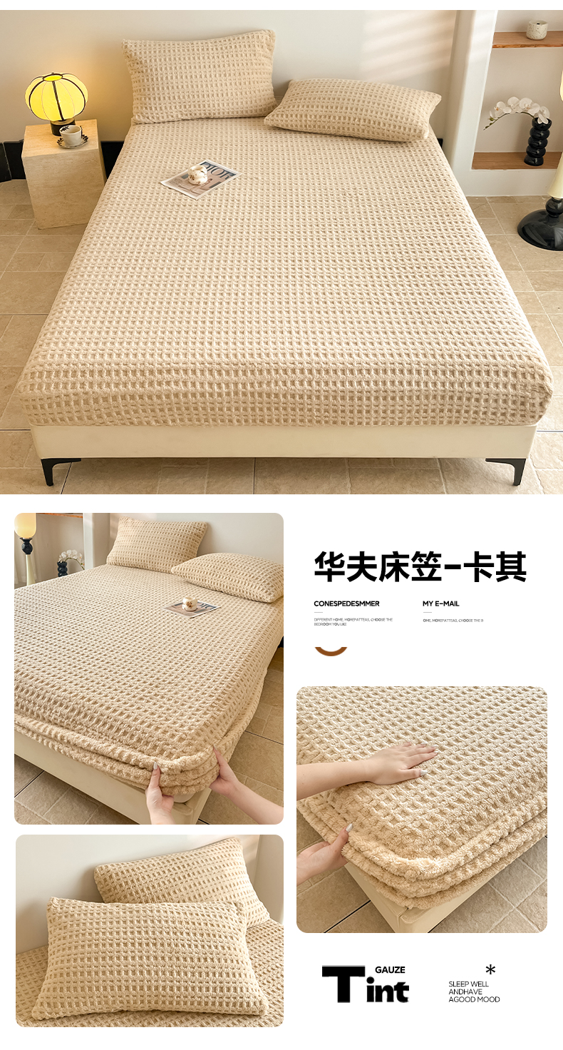 • 91家纺网 家纺一手货源 找家纺 欧邦 2025新款华夫格塔芙绒单床笠 床笠单件 华夫床笠-雾蓝