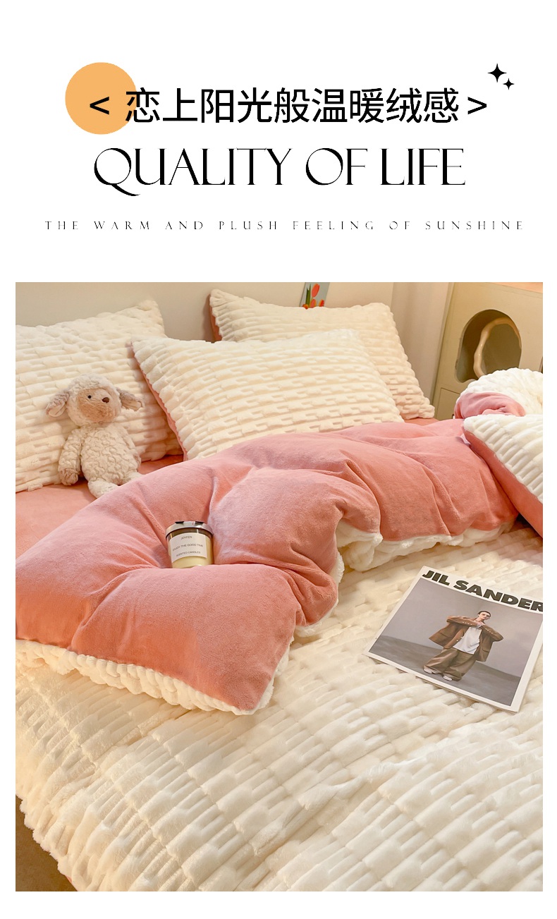 当前位置: 91家纺网 > 商品网购 > 床品套件 > 四件套 > 牛奶绒四件套 > 爱彼家纺 2024新款兔兔绒四件套系列 免兔绒-蜜桃粉粉