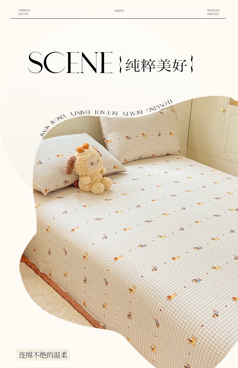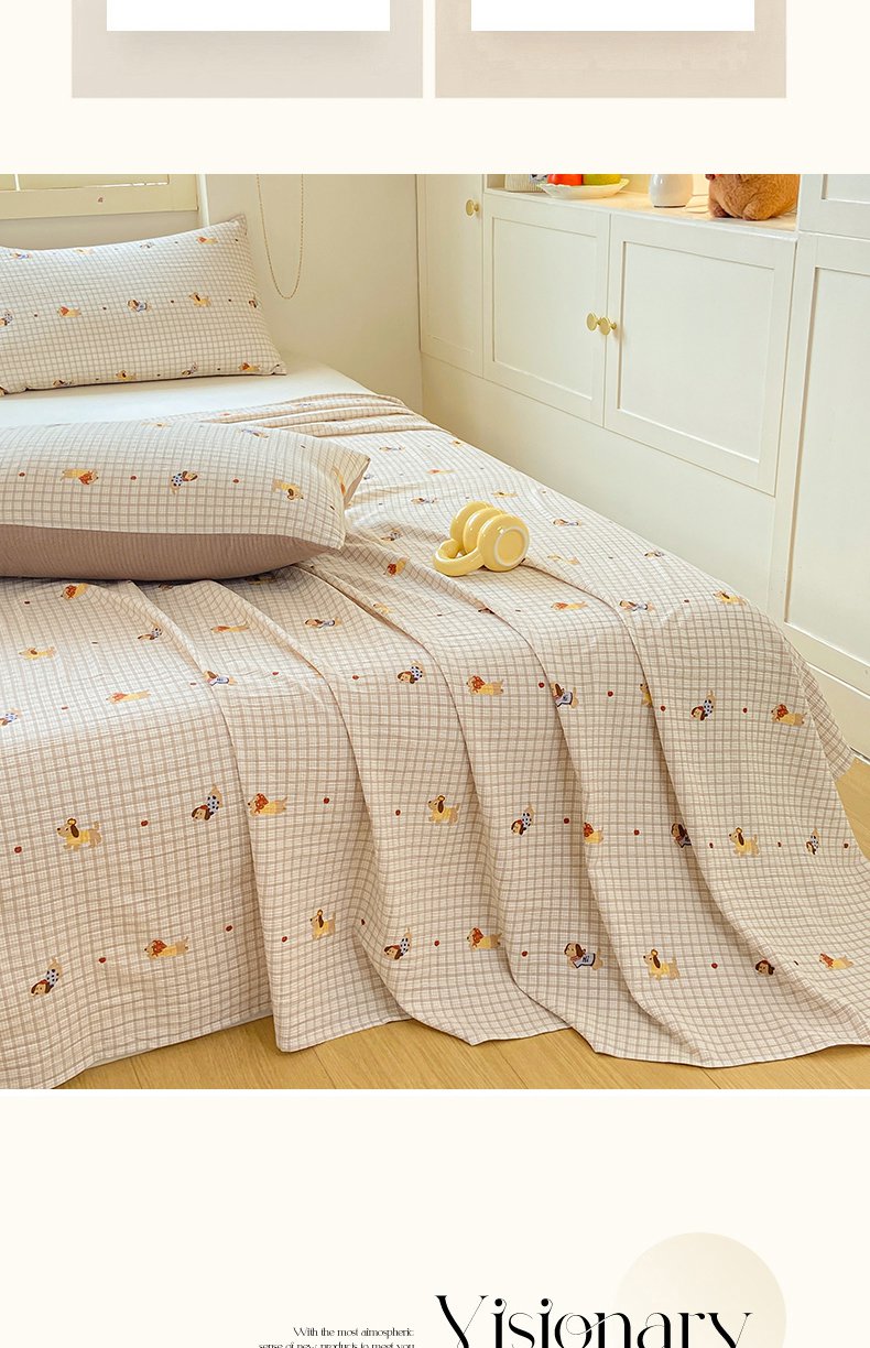 夜笙家纺 2025新款110克水洗棉双层纱单床单系列 巴克小狗