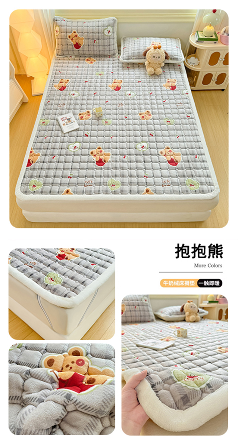 (总)优品惠 2025新款牛奶绒夹棉床护垫夹棉床褥床盖床单加厚保暖,可爱熊,抱抱熊,彩虹蝴蝶结,都市潮熊,发财暴富,高级灰,卡皮巴拉粉,卡皮巴拉灰,卡皮巴拉蓝,卡皮巴拉米,腊肠狗,朗格蓝,星月织梦灰,星月织梦蓝,熊猫灰,熊兔花园,烟灰蓝,月亮蓝,月亮萌宝,字母樱桃,组合图