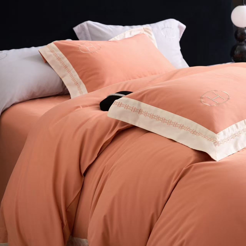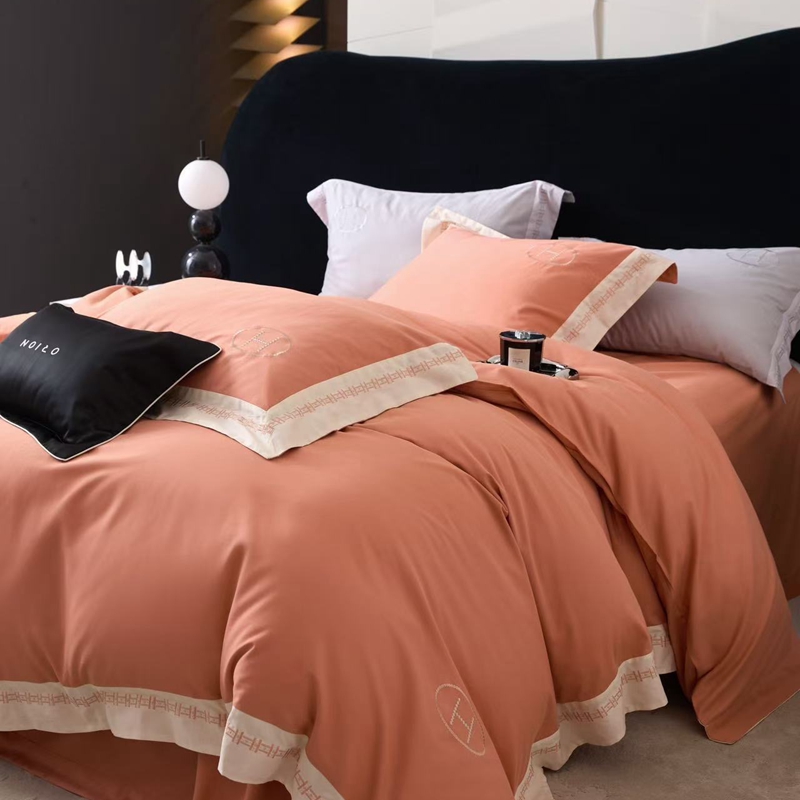 嘉汀兰家居 2025新款长绒棉磨毛四件套—蔓莎 桔色