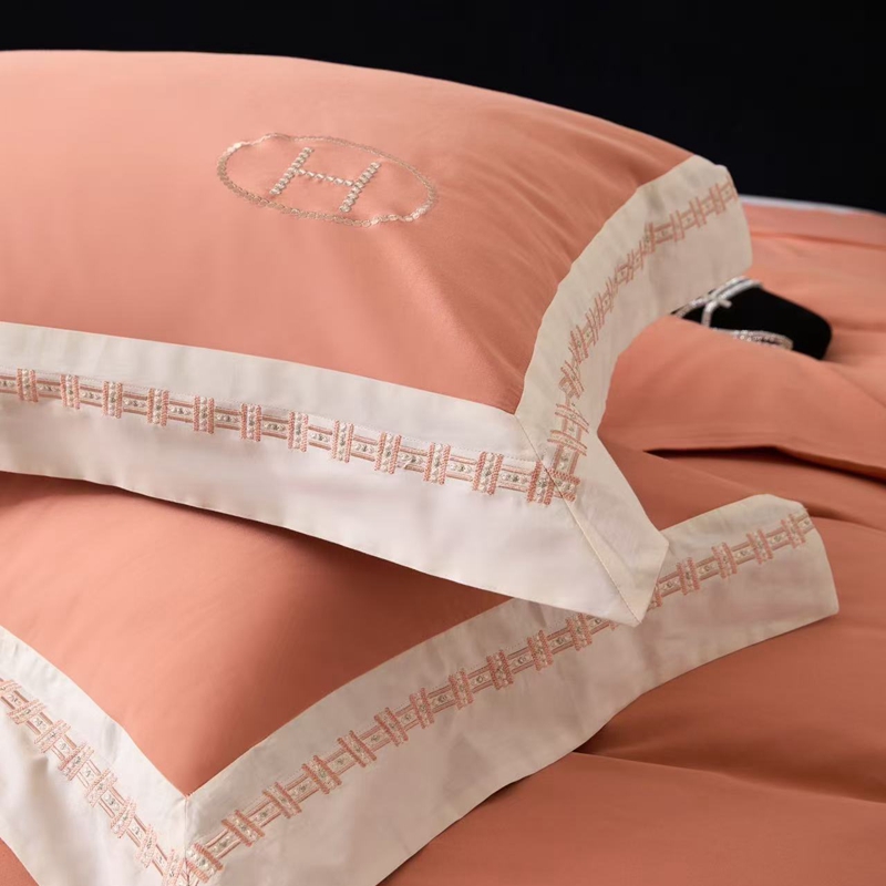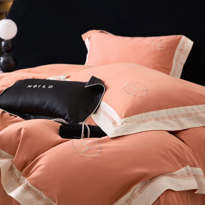 (总)嘉汀兰 2023新款60支全棉磨毛绣花撞色轻奢四件套—暮里,粉色,红灰色,芥绿色,浅灰色,深青色