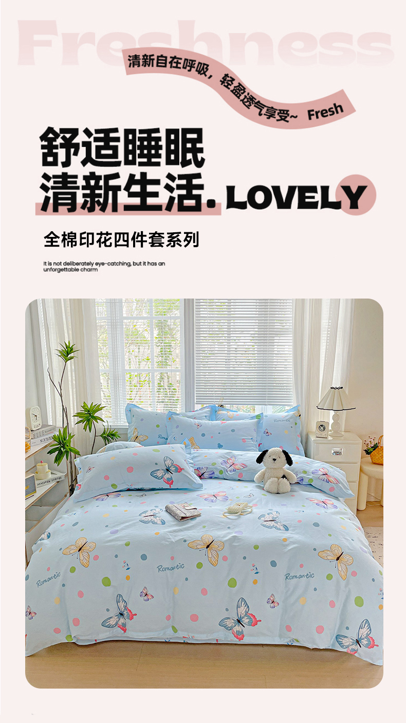 当前位置: 91家纺网 > 商品网购 > 床品套件 > 四件套 > 全棉普通四件套 > 文黛家居 2025新款全棉喷气印花全棉纯棉印花系列四件套 蝶舞-兰