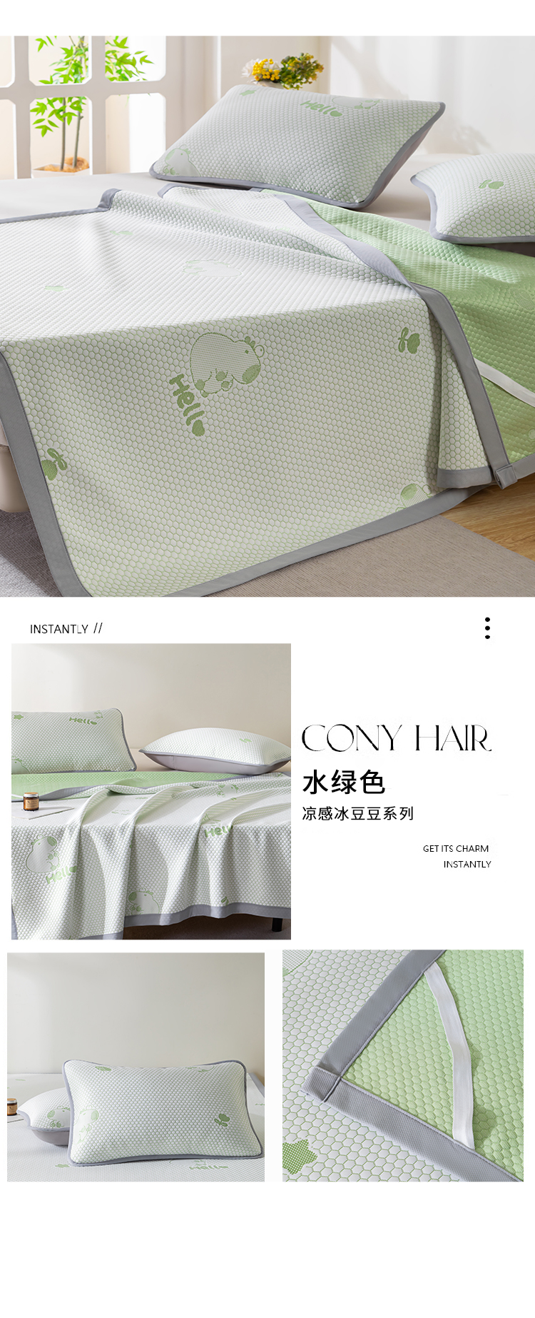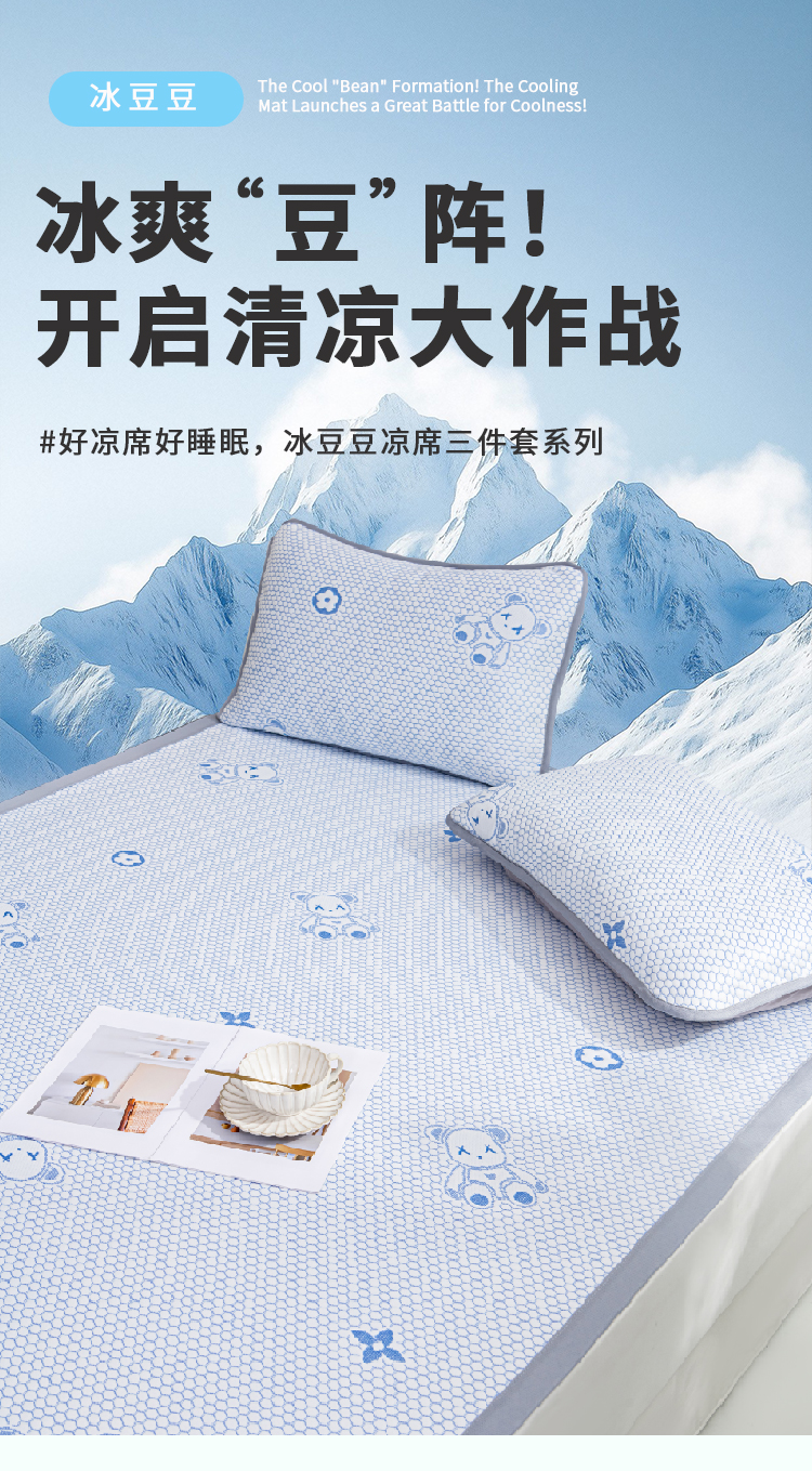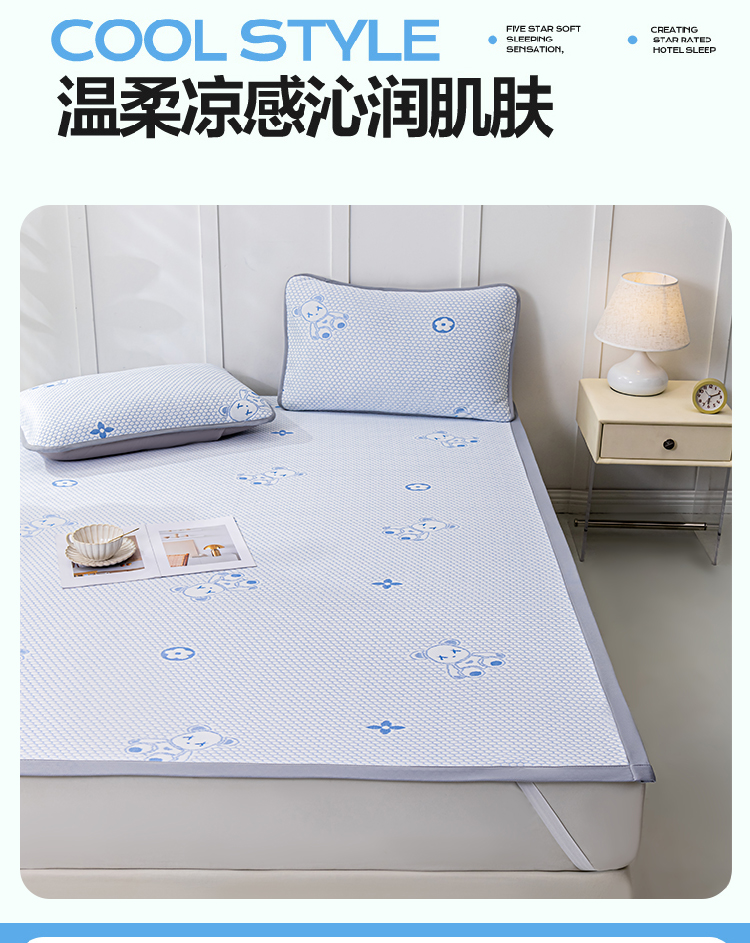 • 91家纺网 家纺一手货源 找家纺 观月轩家纺 2025新款亲肤舒适冰豆豆凉感席 凉席席子 暴力熊-浅咖色