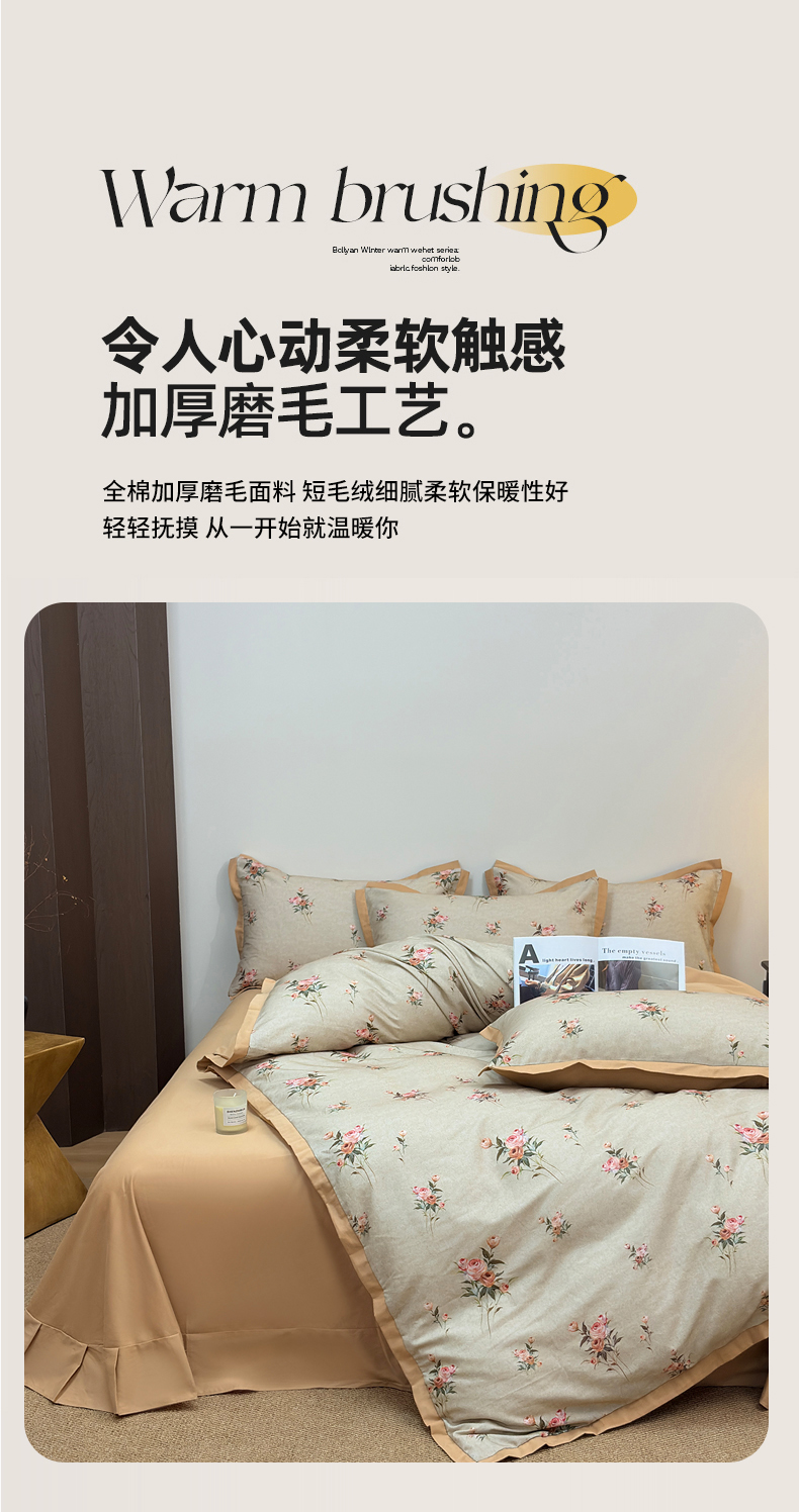 当前位置: 91家纺网 > 商品网购 > 床品套件 > 四件套 > 全棉普通四件套 > 未来家居 2025新款秋冬全棉加厚磨毛纯色印花缺角工艺系列高端礼盒包装四件套 芸香-咖