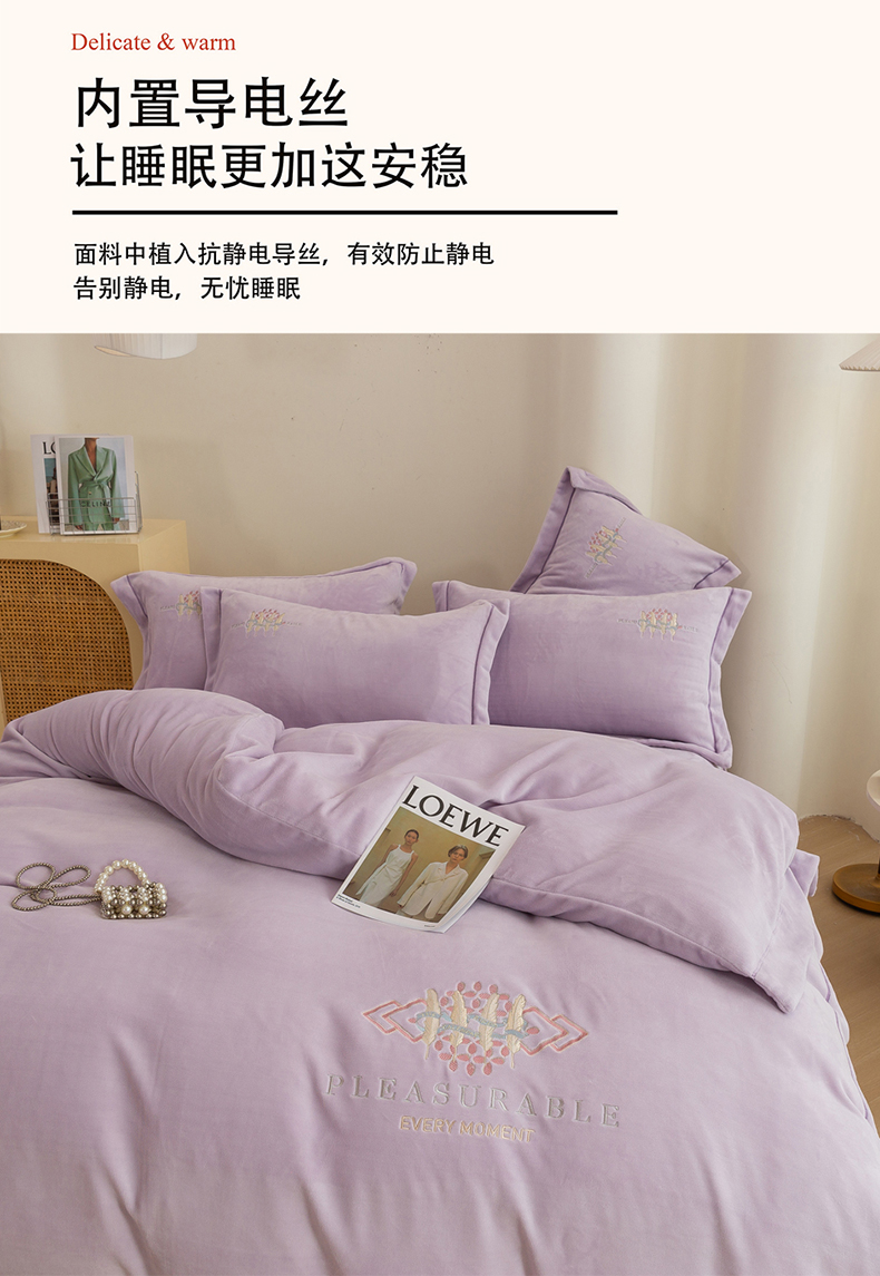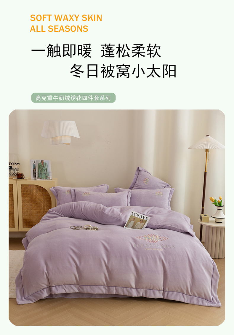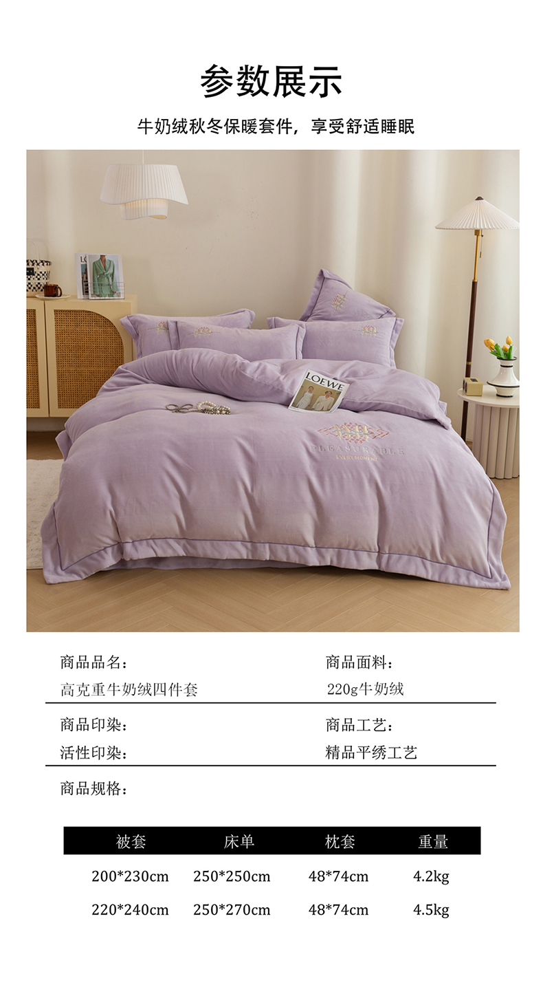 (总)绒博士 2025新款220克牛奶绒刺绣四件套--叶烨生辉系列,叶烨生辉-奶绿,叶烨生辉-宾利蓝,叶烨生辉-豆沙,叶烨生辉-芳菲紫,叶烨生辉-灰色,叶烨生辉-樱花粉
