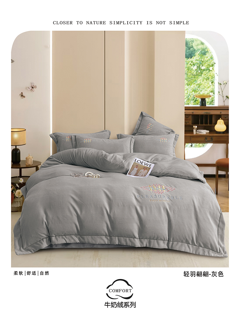 (总)绒博士 2025新款220克牛奶绒刺绣三件套--欧拉系列,欧拉-宾利蓝,欧拉-芳菲紫,欧拉-灰色,欧拉-奶绿,欧拉-樱花粉