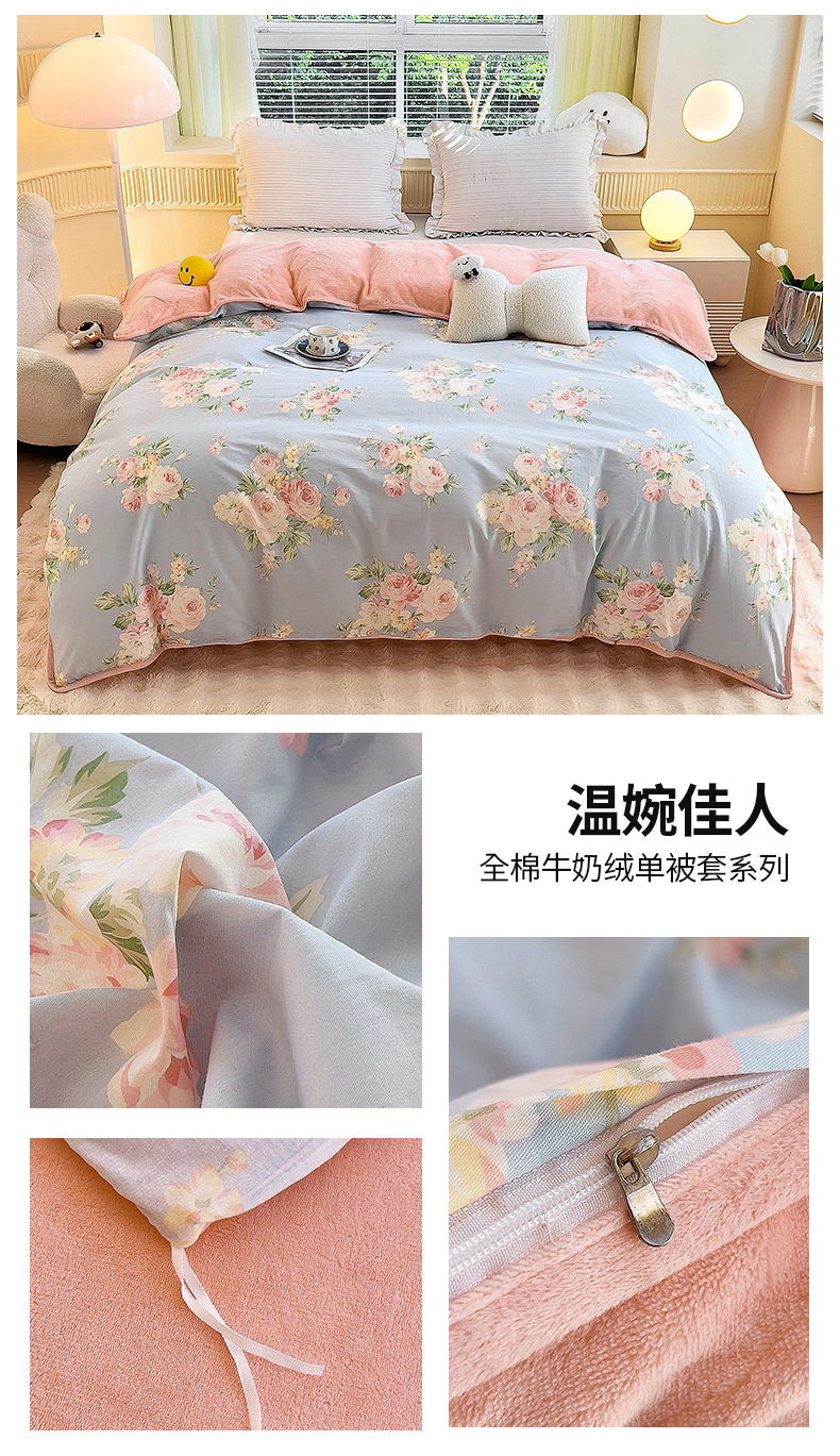 琪琪阁家纺 2025秋冬新款全棉加牛奶绒单被套棉加绒被套 初恋日记