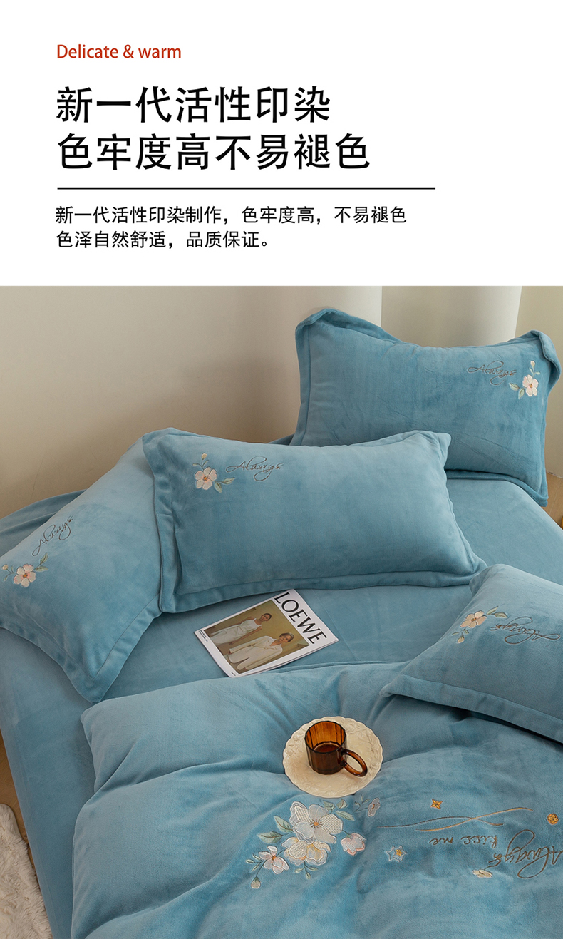 商品名称:绒博士 2025新款220克牛奶绒刺绣四件套--花绒私语系列 花绒私语-宾利蓝