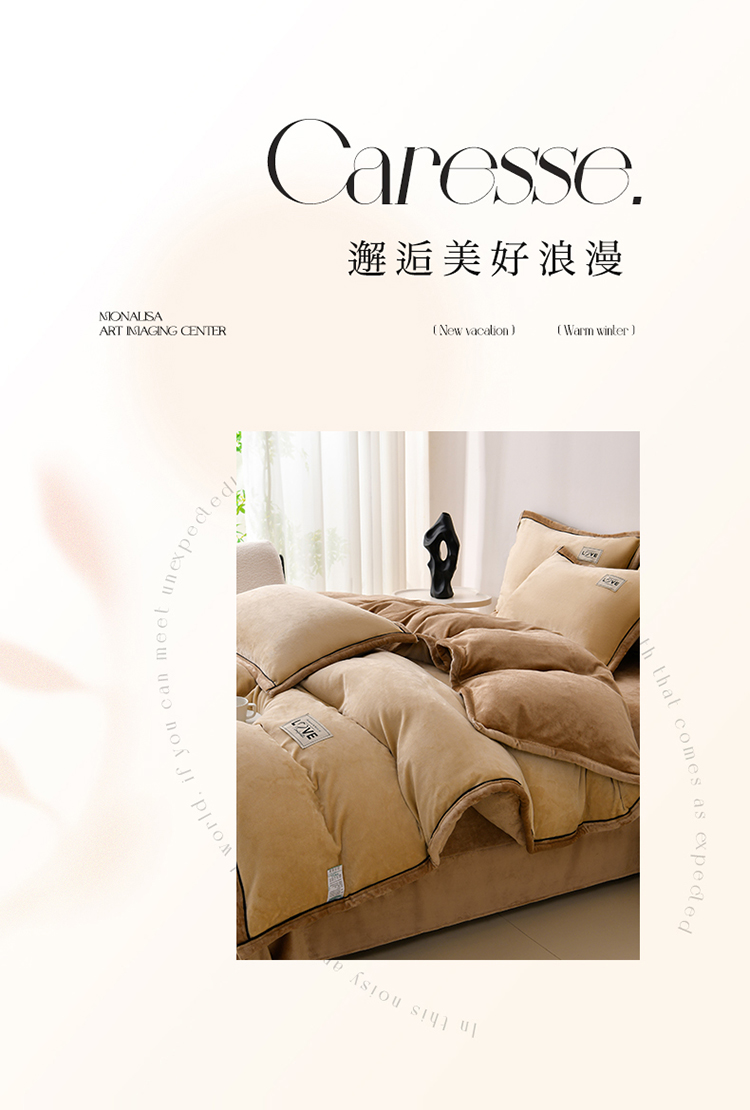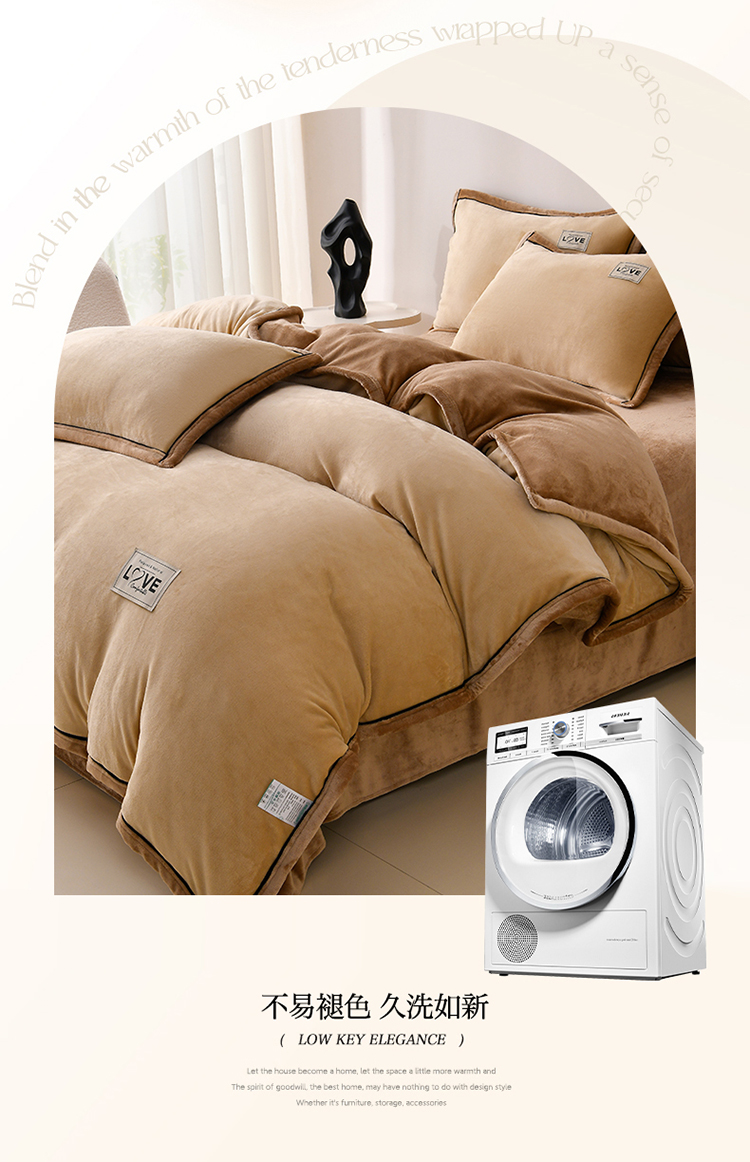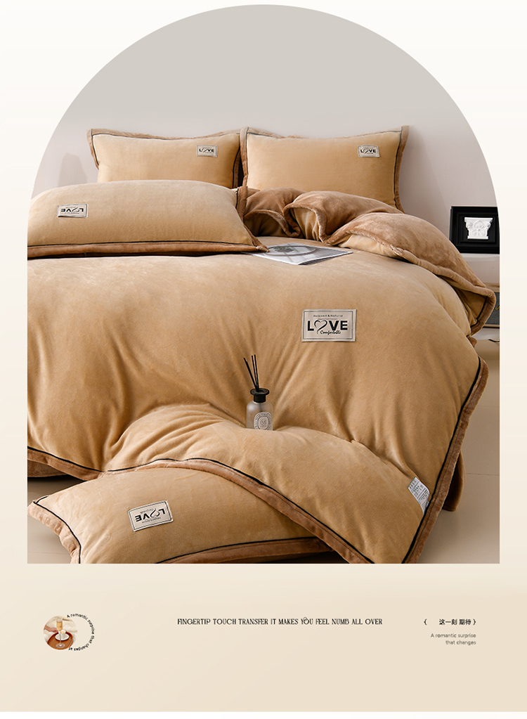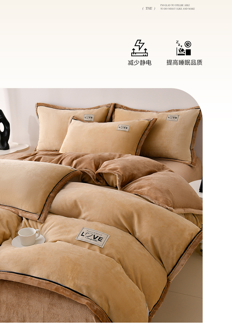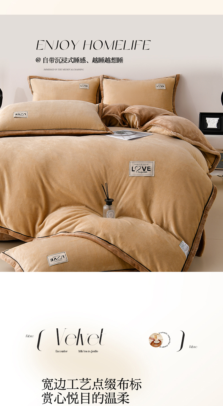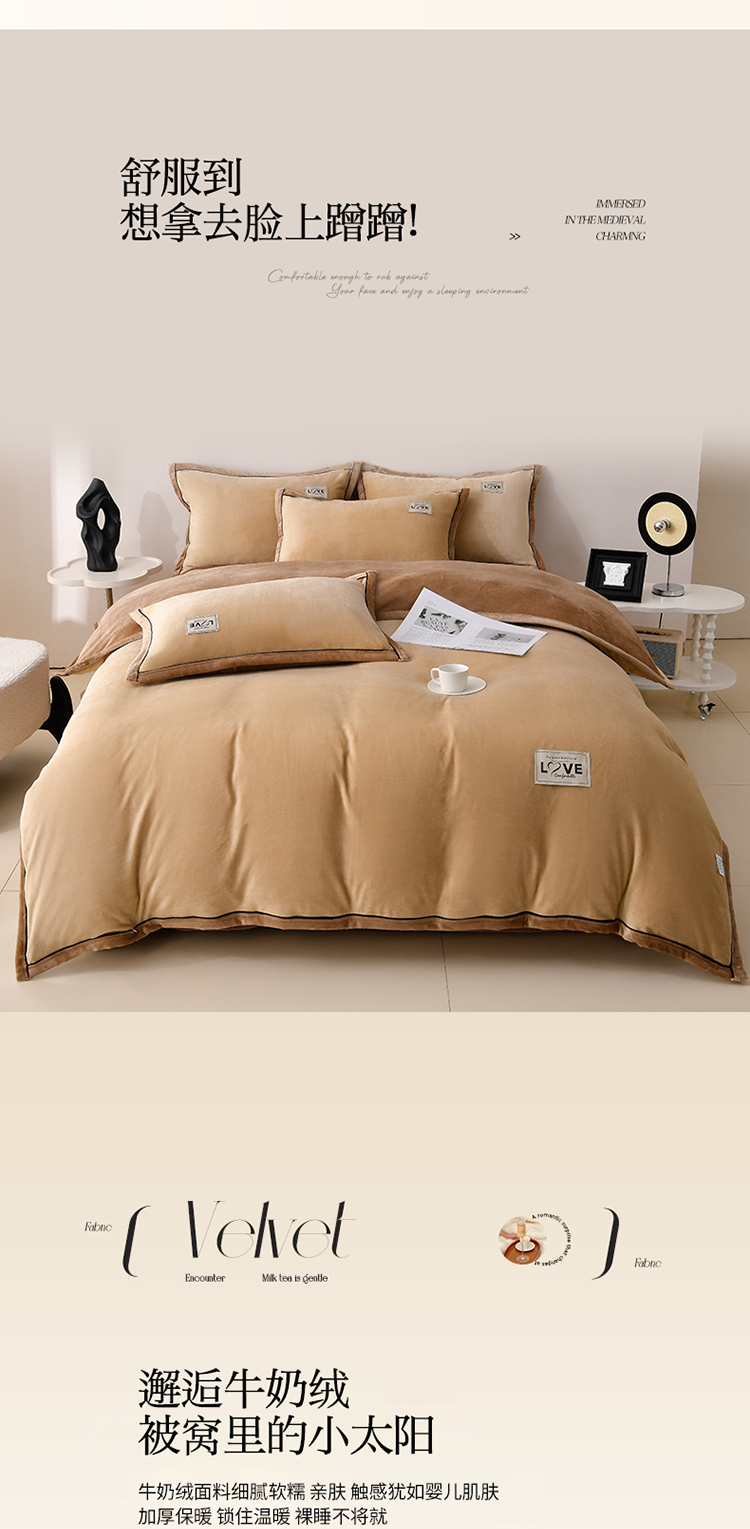 馨梦缘-2025新款牛奶绒四件套 米驼+深驼