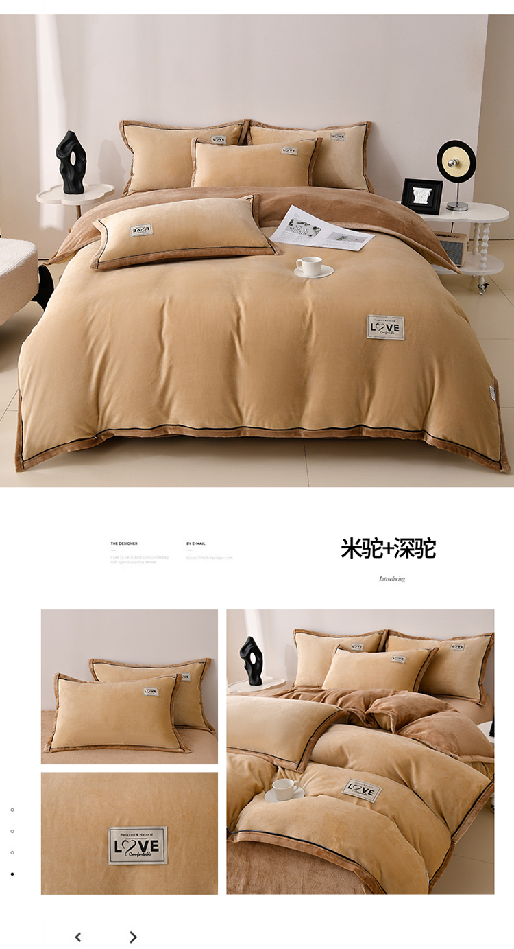 商品名称:馨梦缘-2025新款牛奶绒四件套 米驼+深驼
