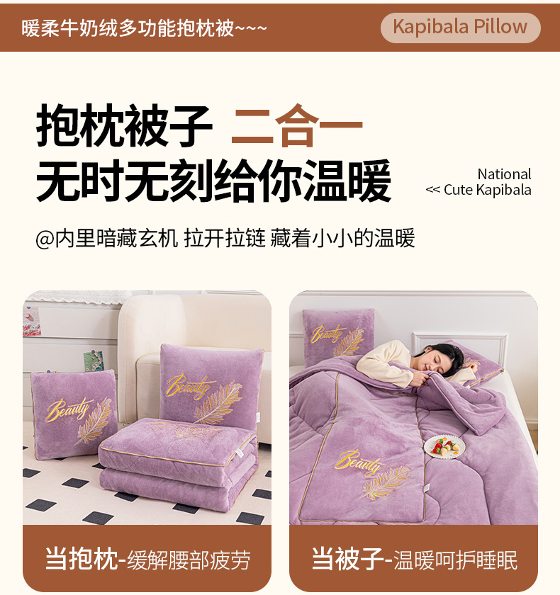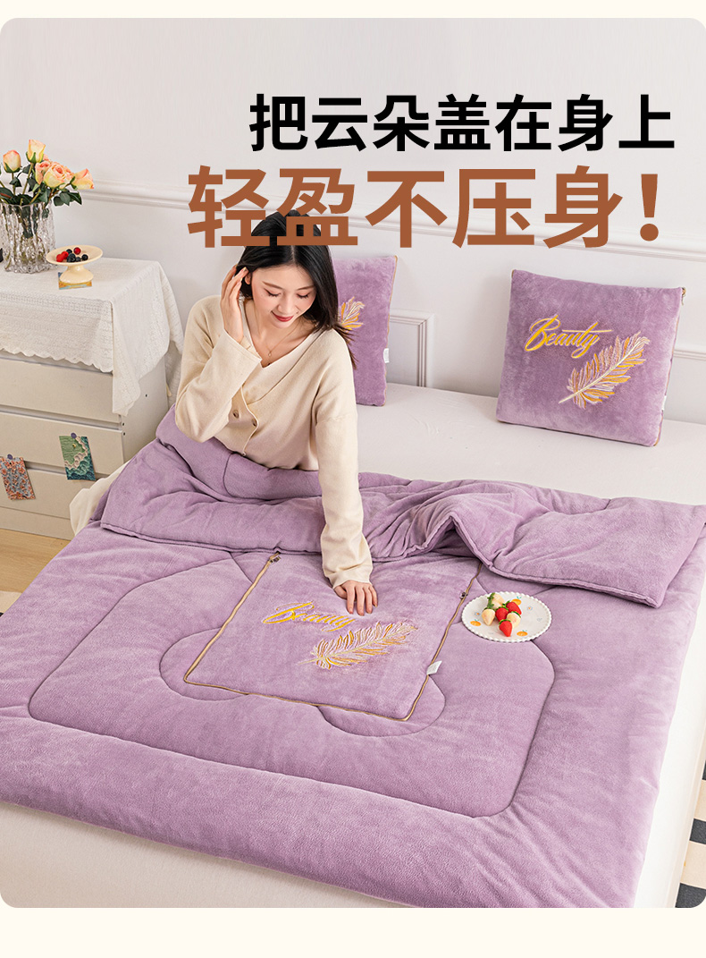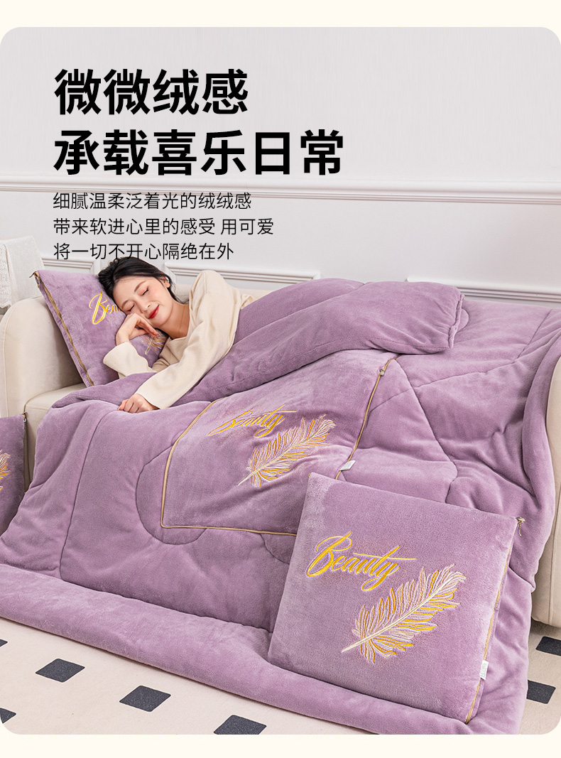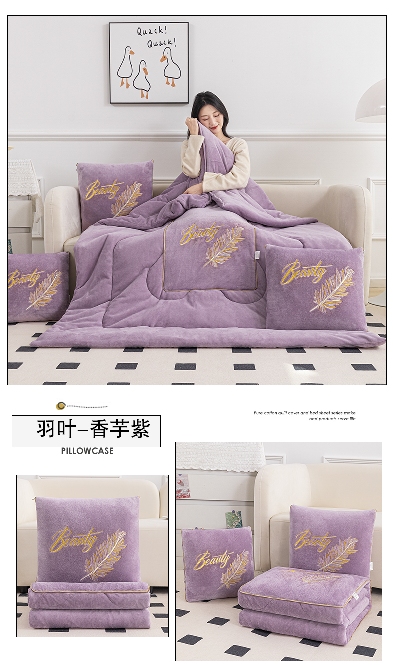 商品名称:哩哩熊 2025新款抱枕被子两用加厚二合一汽车载枕头办公室午睡毯子冬天靠枕-羽叶 羽叶-香芋紫