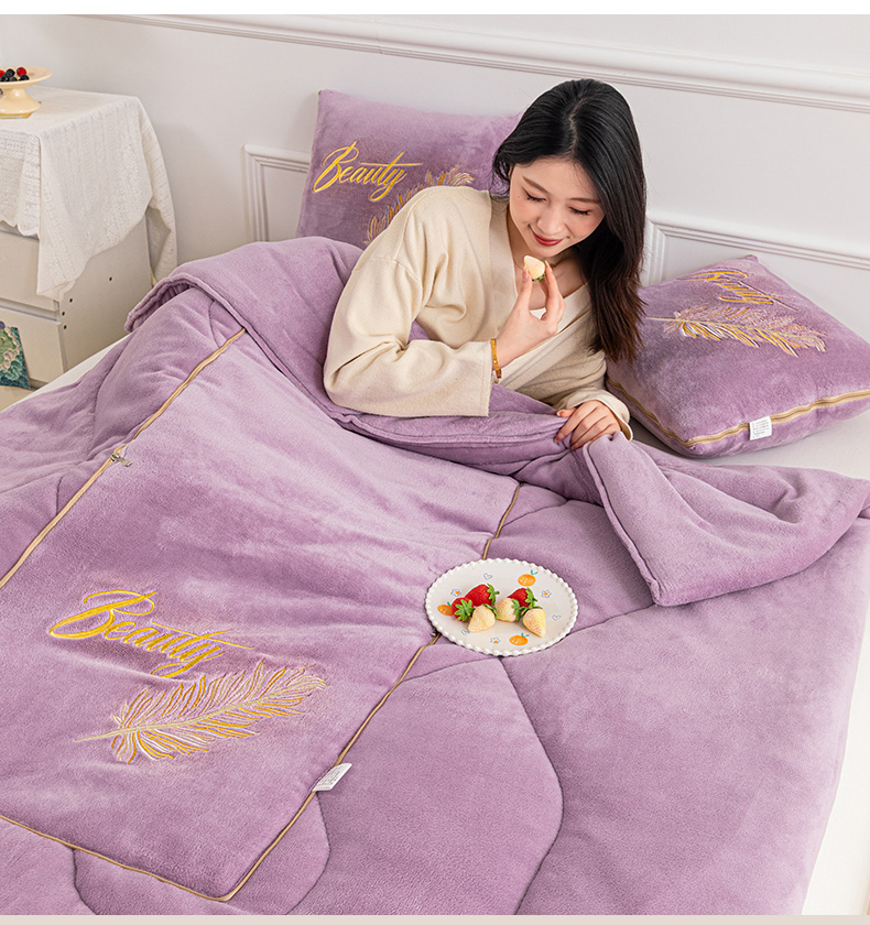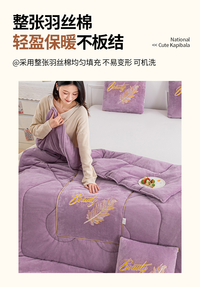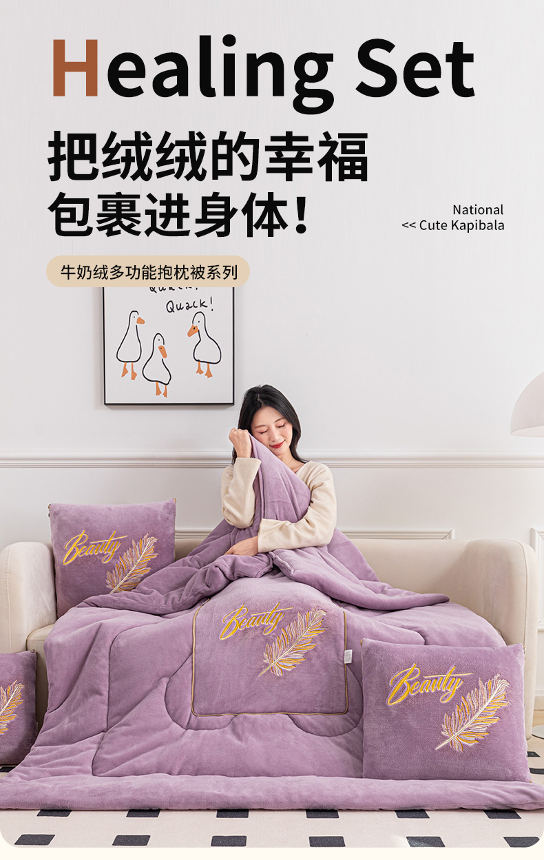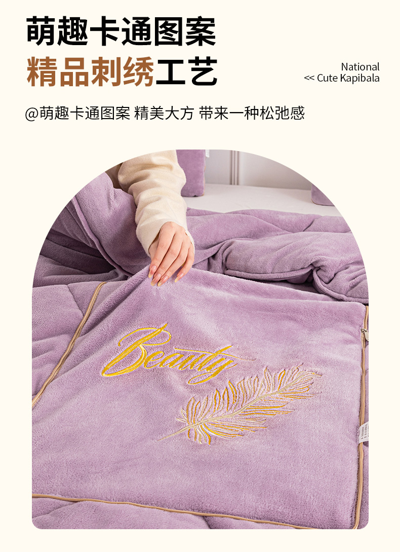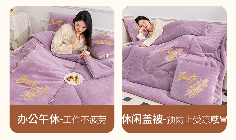 商品名称:哩哩熊 2025新款抱枕被子两用加厚二合一汽车载枕头办公室午睡毯子冬天靠枕-羽叶 羽叶-香芋紫