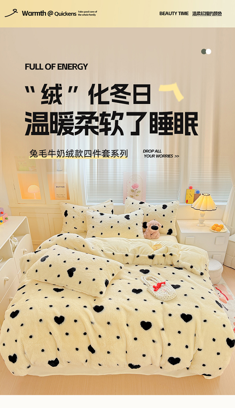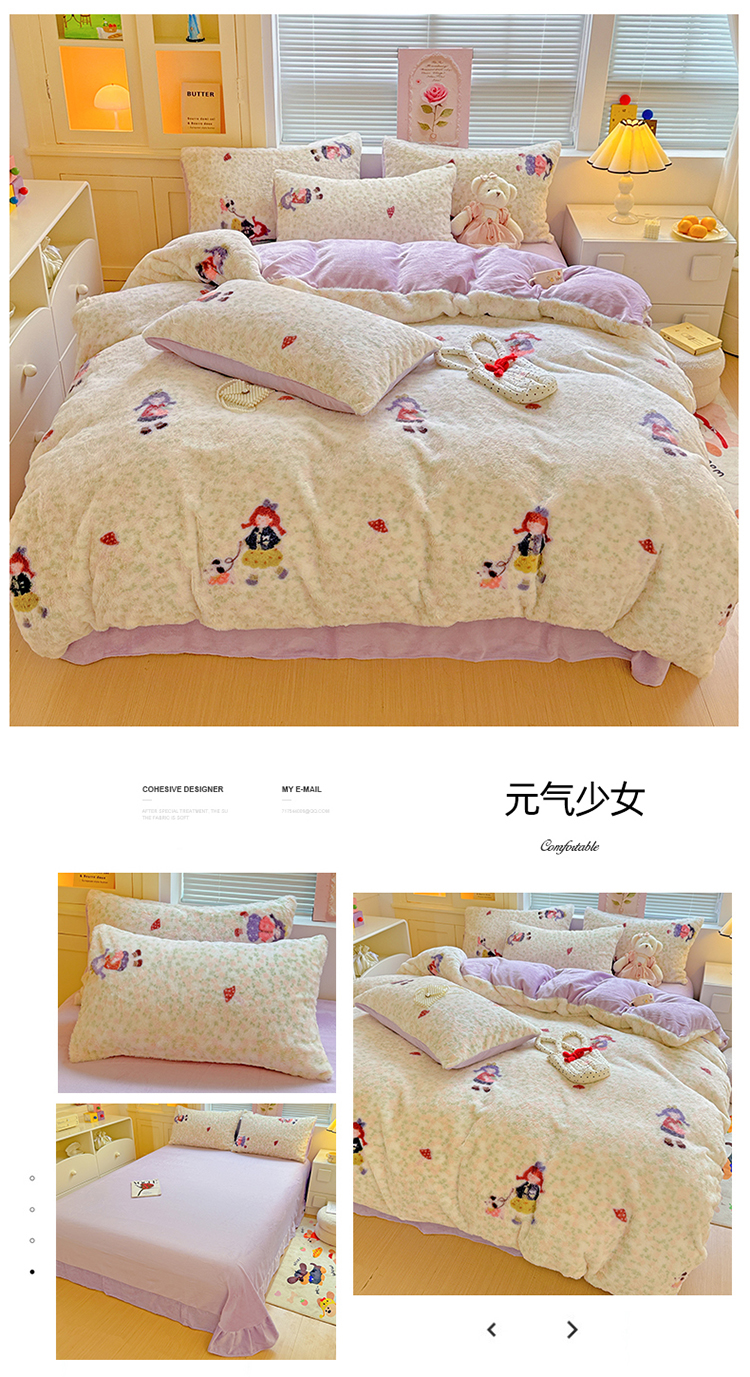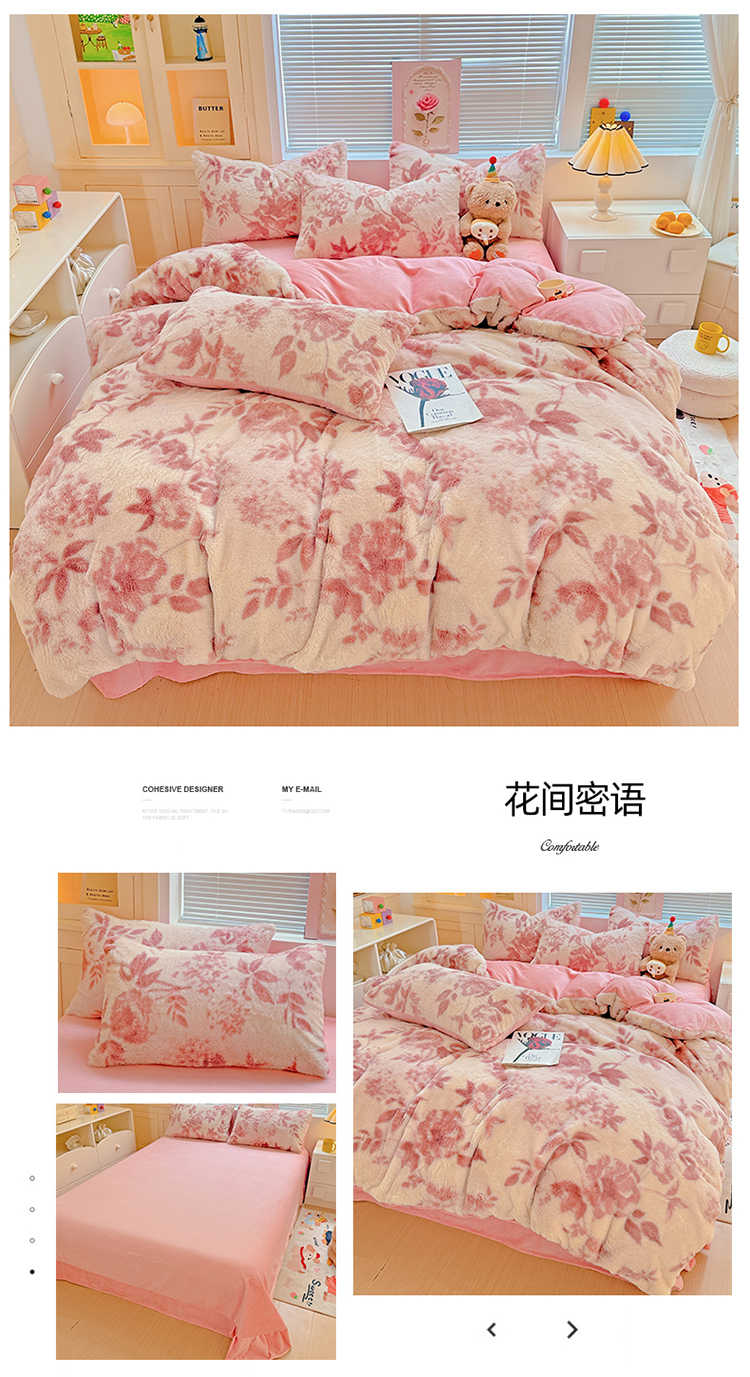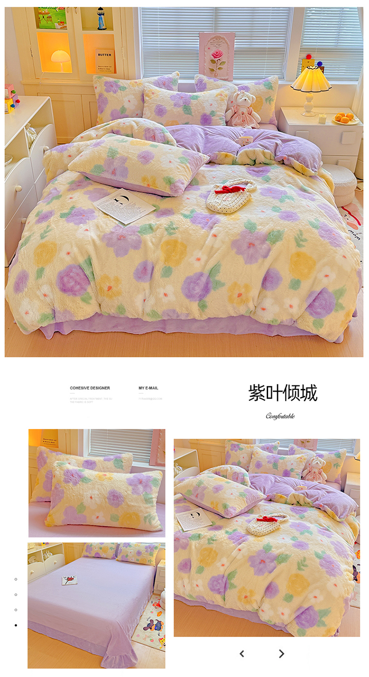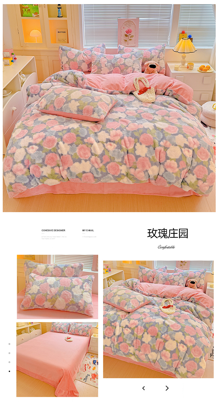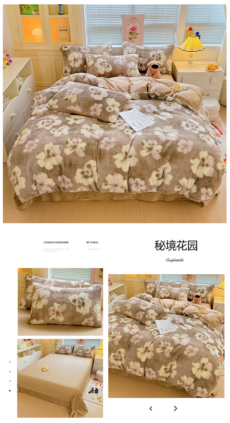商品名称:(总)2025印花小清新风兔毛四件套加厚牛奶绒兔毛套件A版兔毛B版牛奶绒四件套