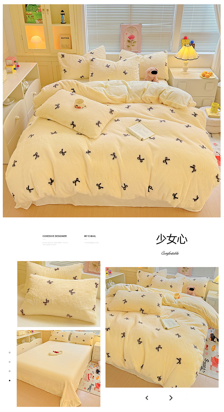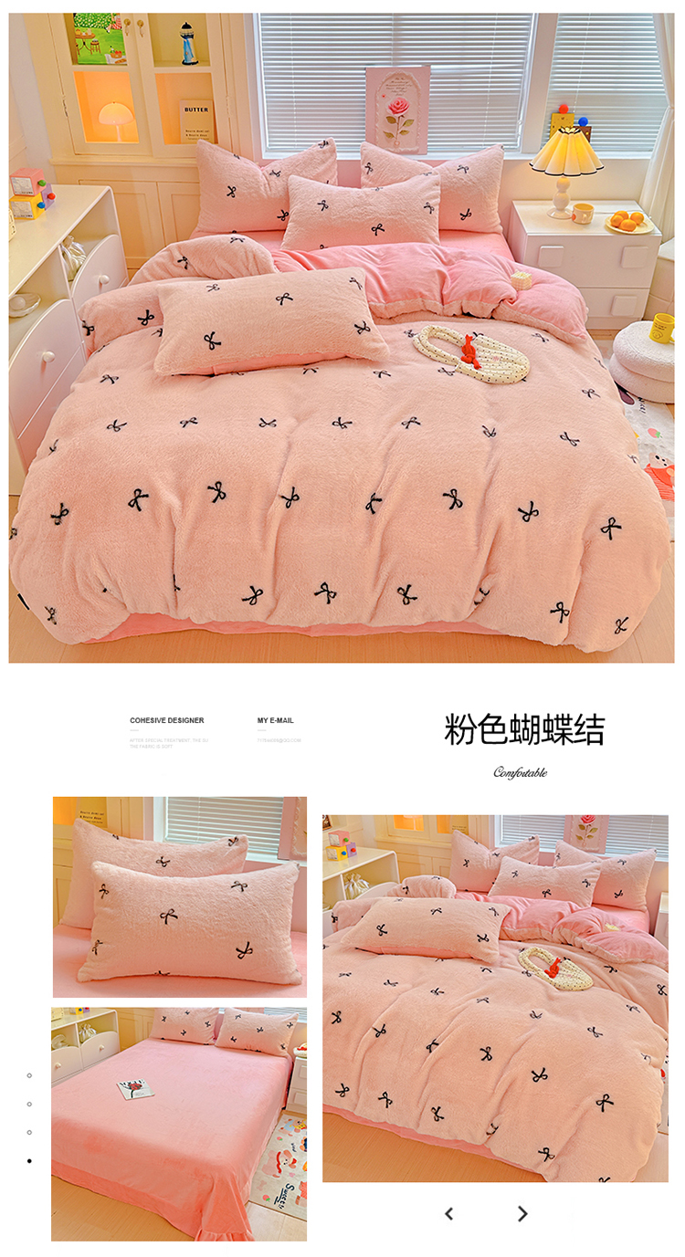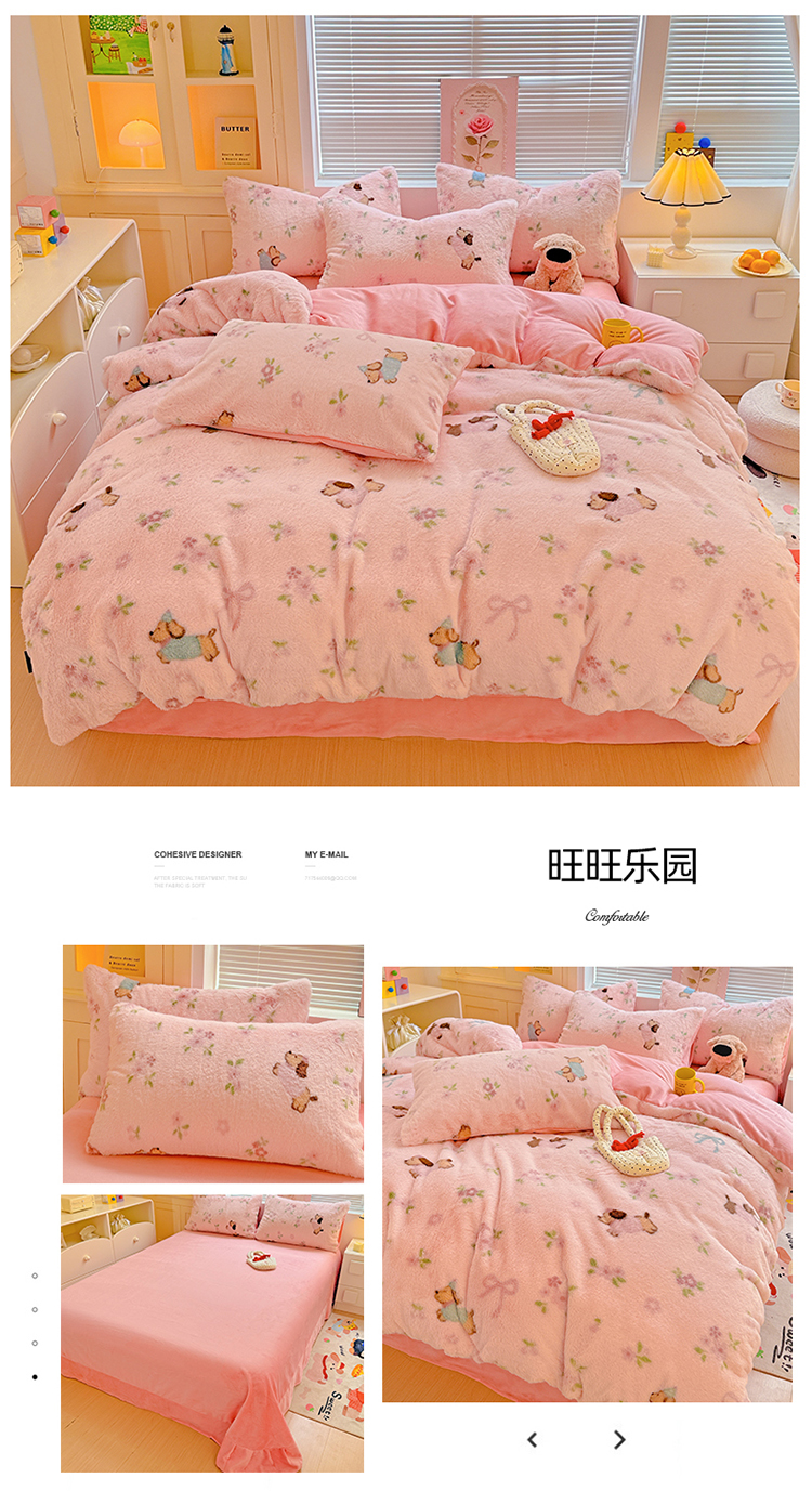 (总)2025印花小清新风兔毛四件套加厚牛奶绒兔毛套件A版兔毛B版牛奶绒四件套