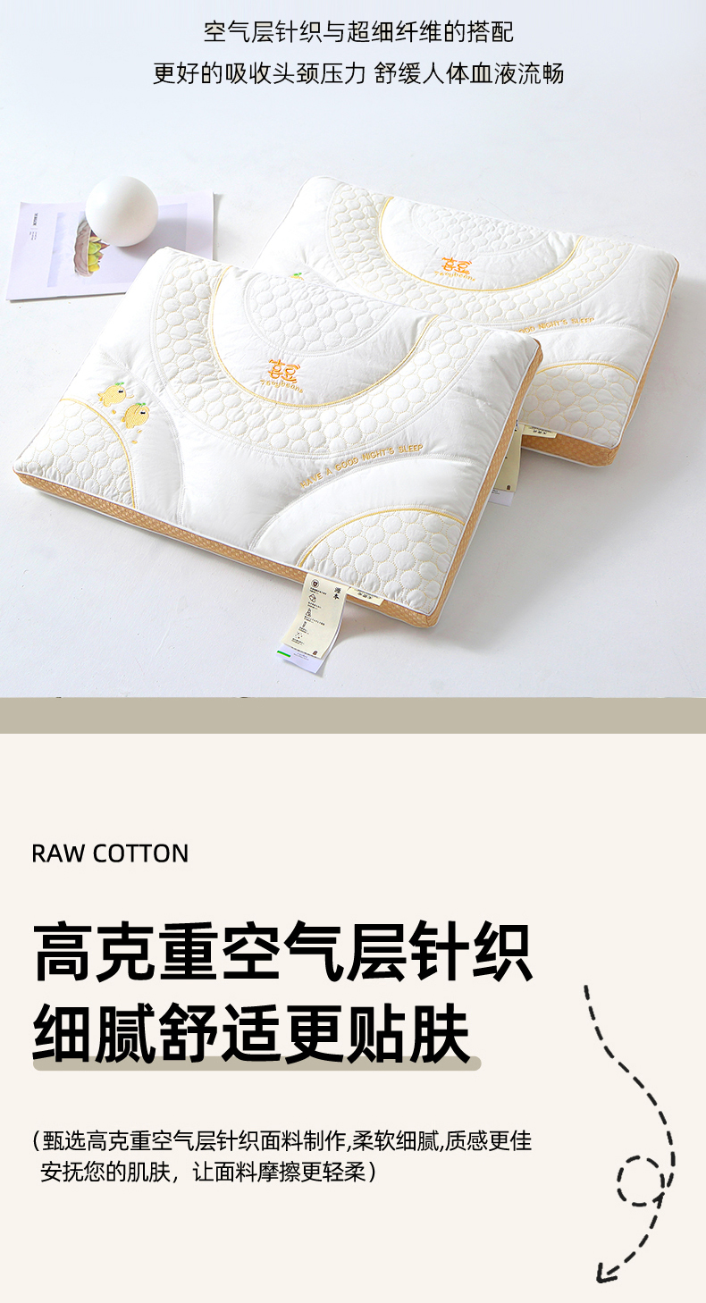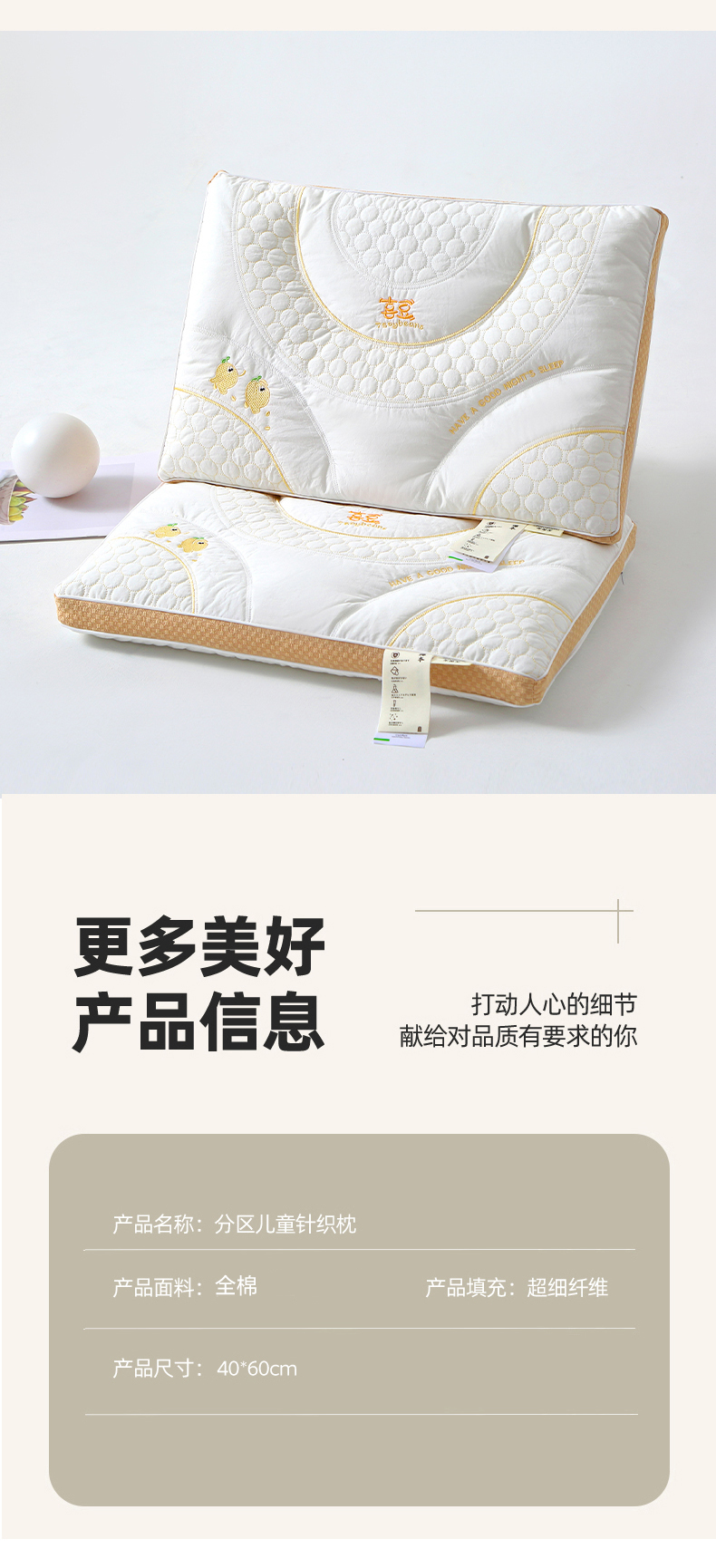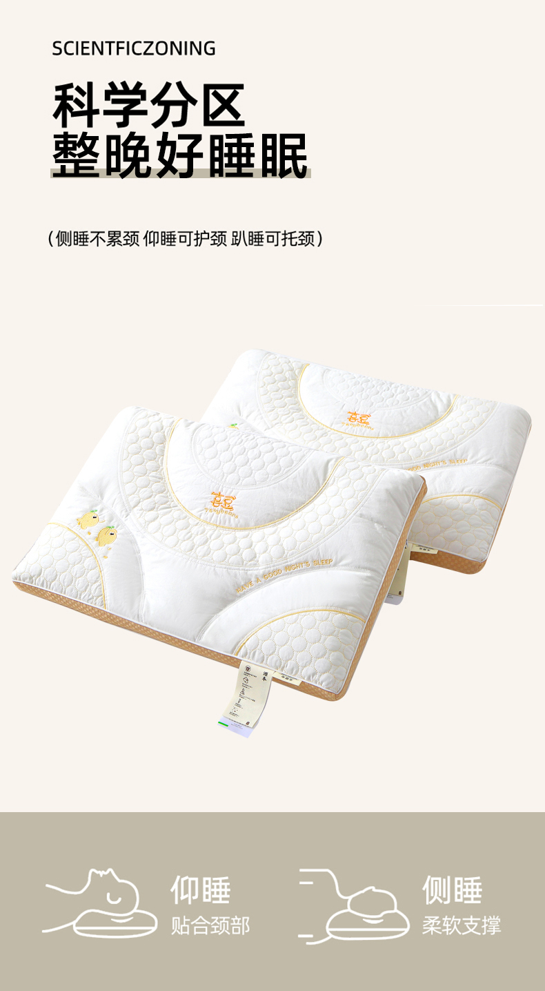 商品名称:糖果枕芯 2025新款儿童枕芯分区护颈学生枕头全棉枕芯 喜豆绿色边