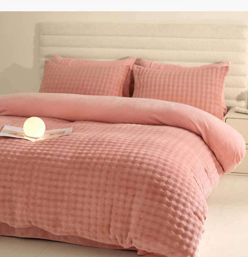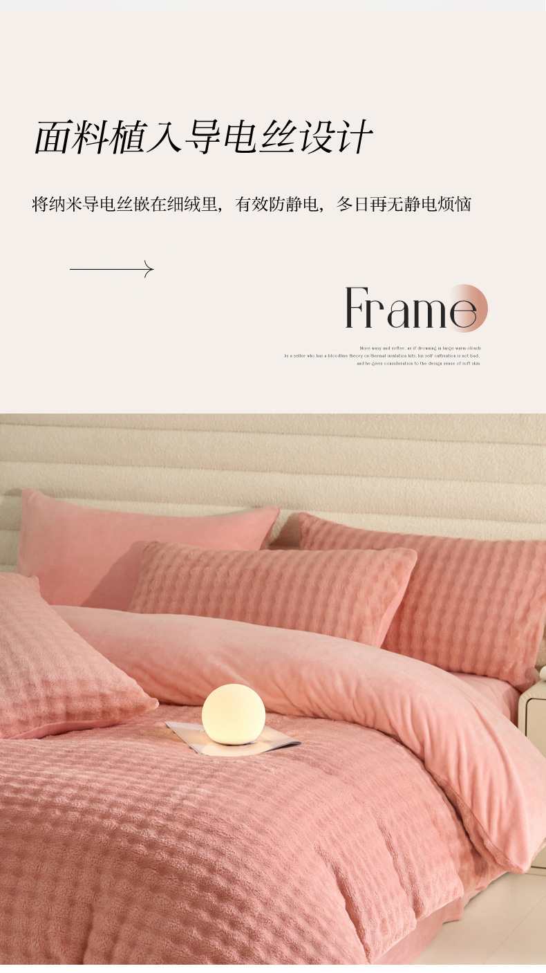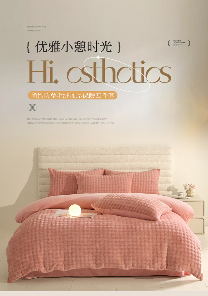 商品名称:眠博士 2025新款兔绒牛奶绒加厚保暖四件套-凯瑟琳场景一 凯瑟琳-暖豆沙