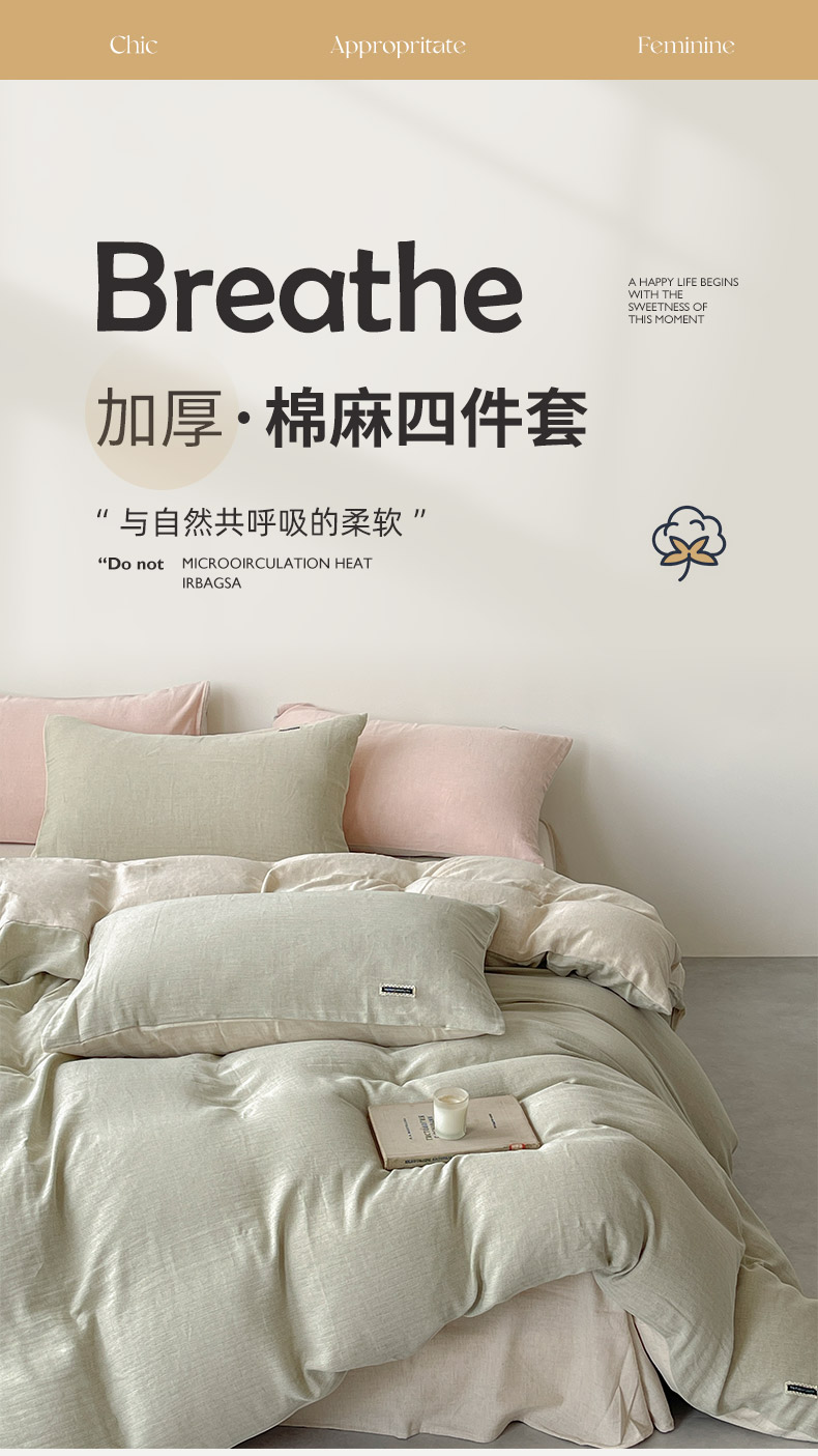 当前位置: 91家纺网 > 商品网购 > 床品套件 > 四件套 > 其它四件套 > (总)2025新款休闲风超柔棉麻四件套简约纯棉全棉复古风素色亚麻高端床上用品四季通用