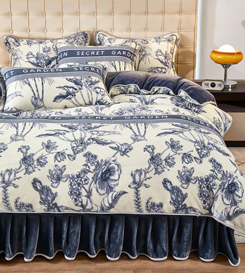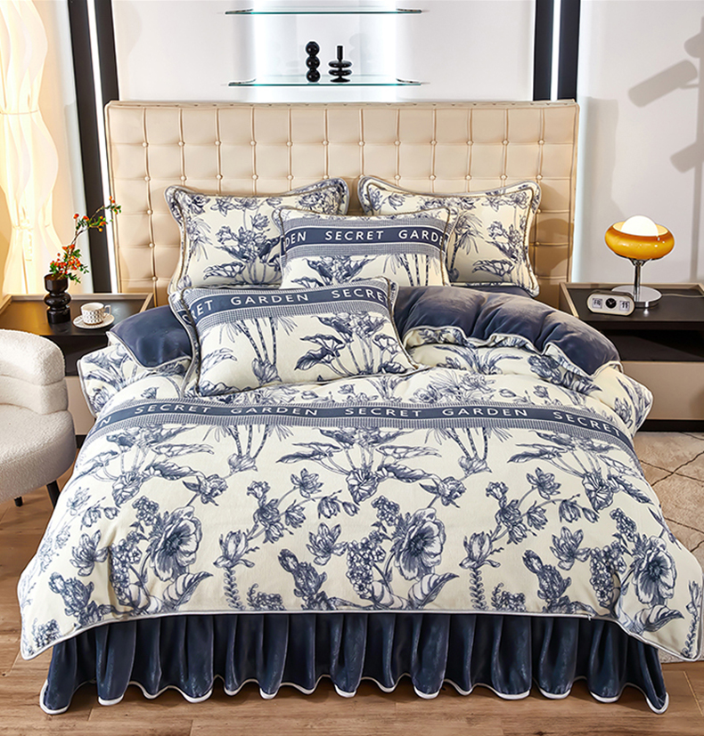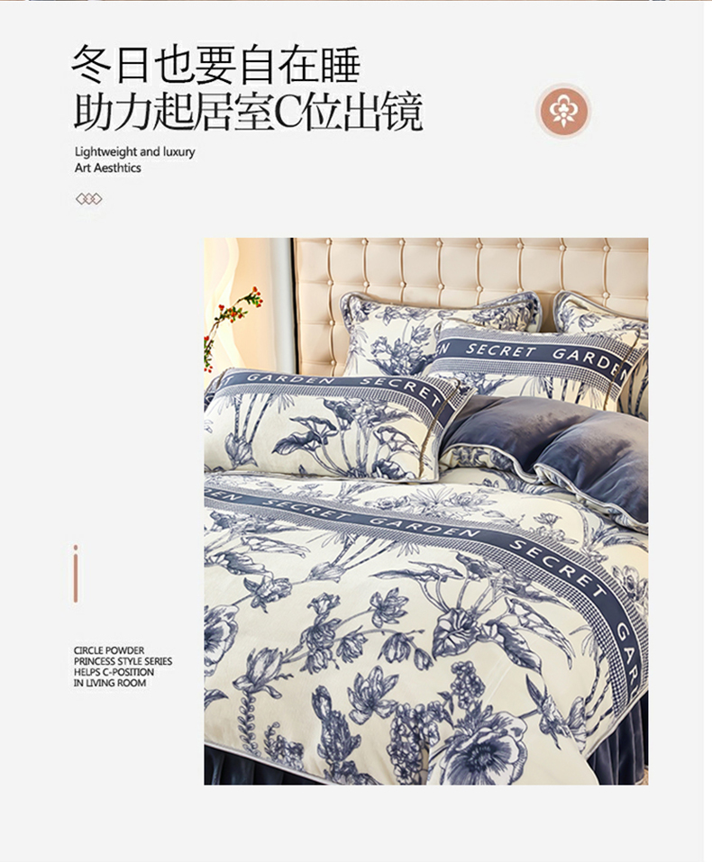 栩裕 2025新款7斤重牛奶金貂绒印花牛奶绒四件套 维多利