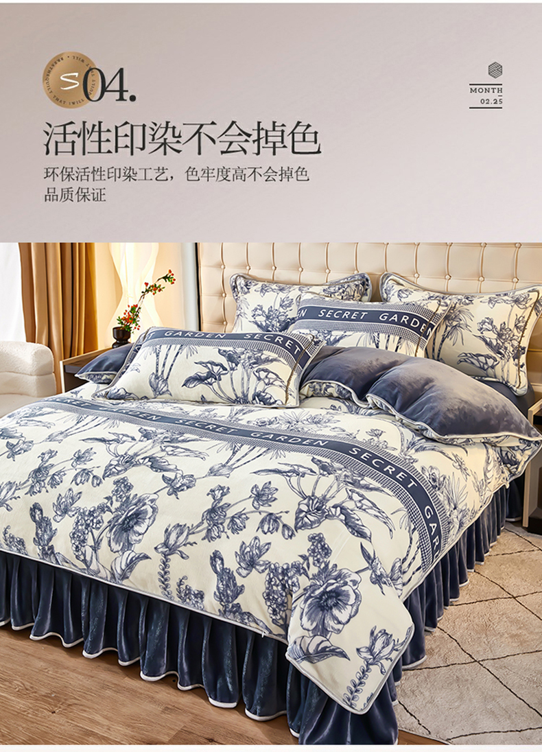 商品名称:栩裕 2025新款7斤重牛奶金貂绒印花牛奶绒四件套 维多利