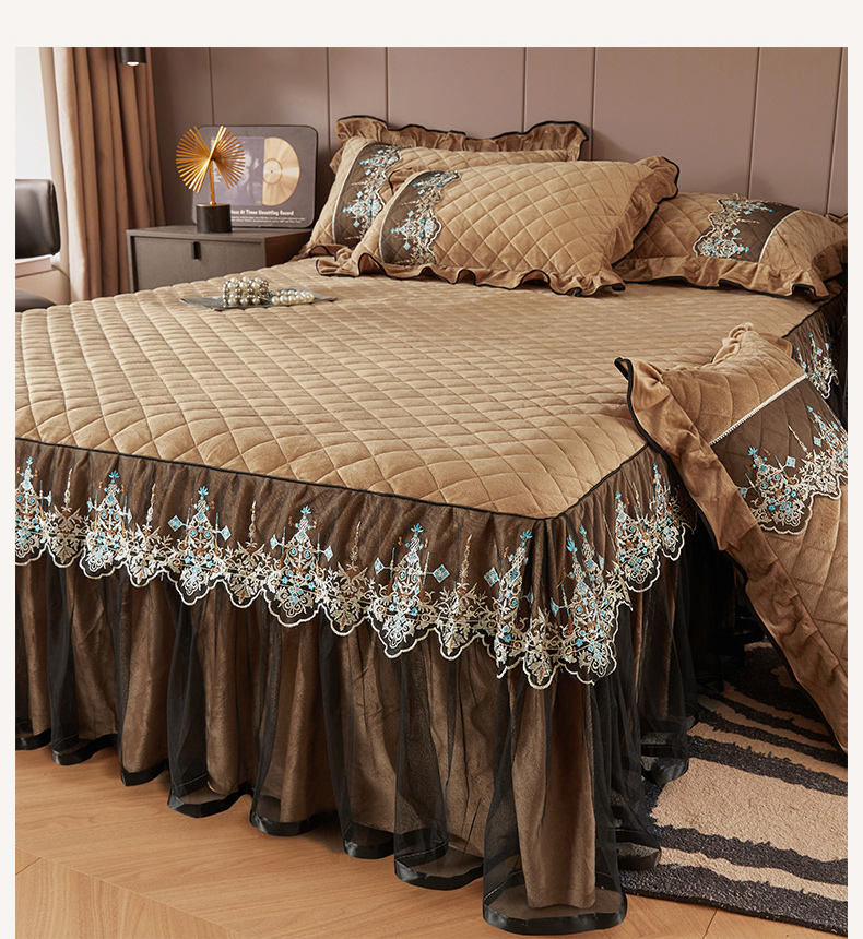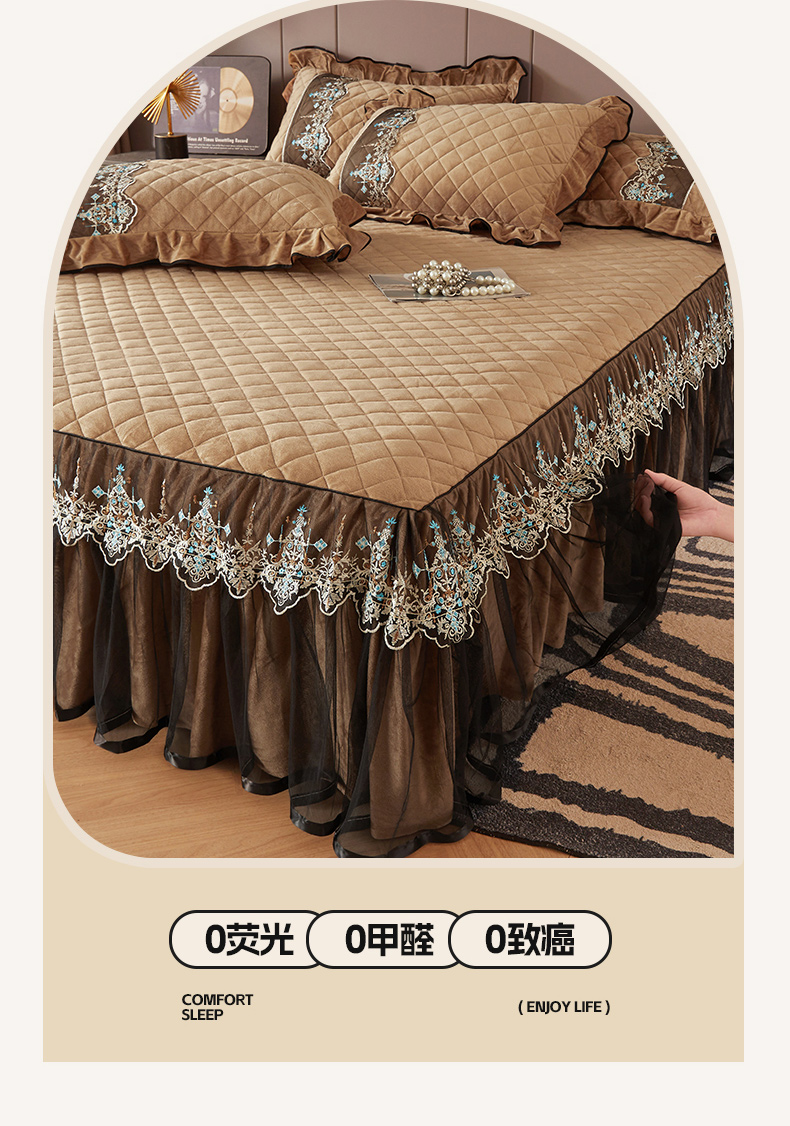 当前位置: 91家纺网 > 商品网购 > 床品套件 > 四件套 > 水晶绒四件套 > 恋尚 2025新款水晶绒保暖床裙四件套-梵蒂莎(控价) 梵蒂莎-驼