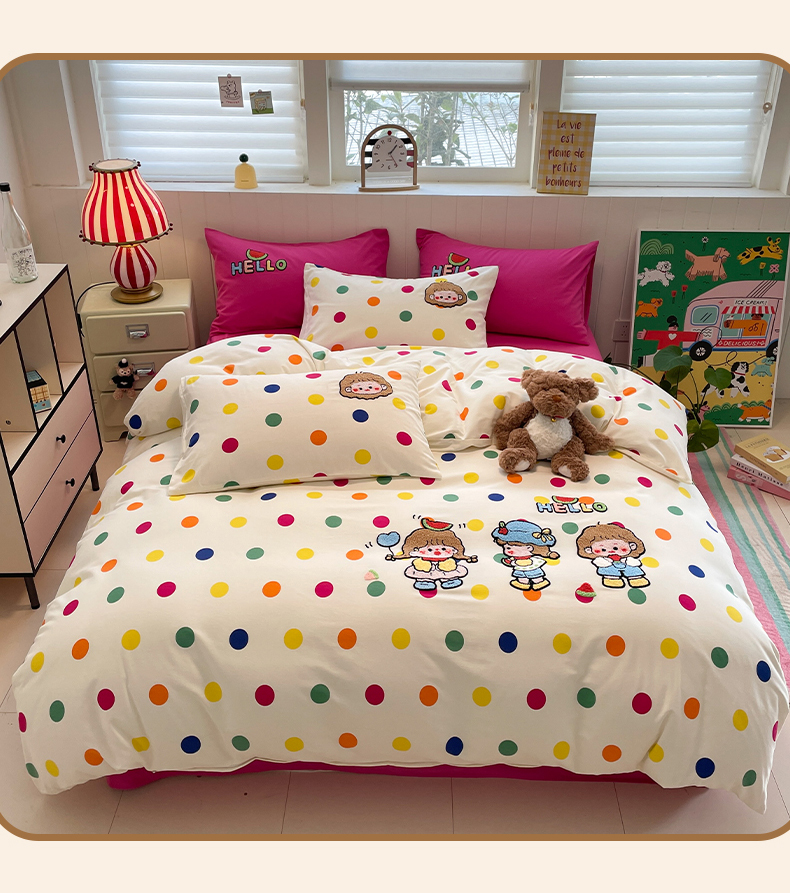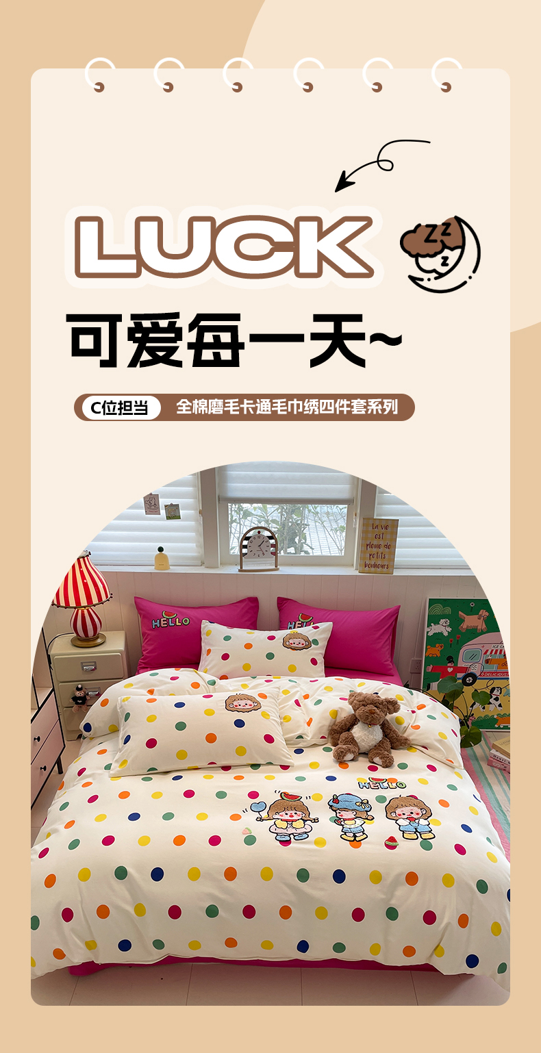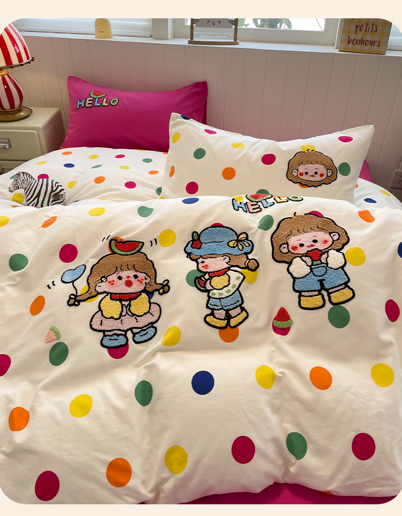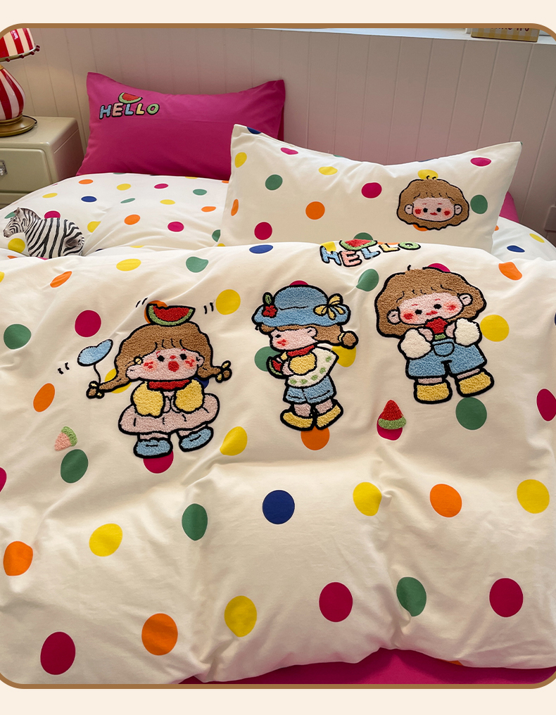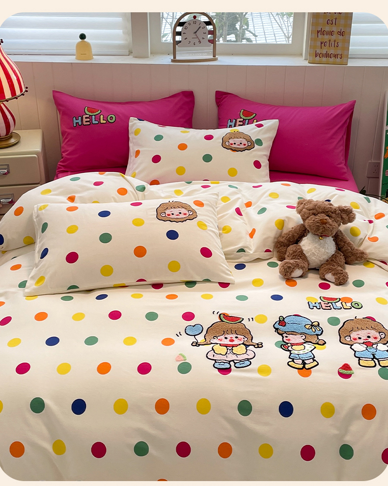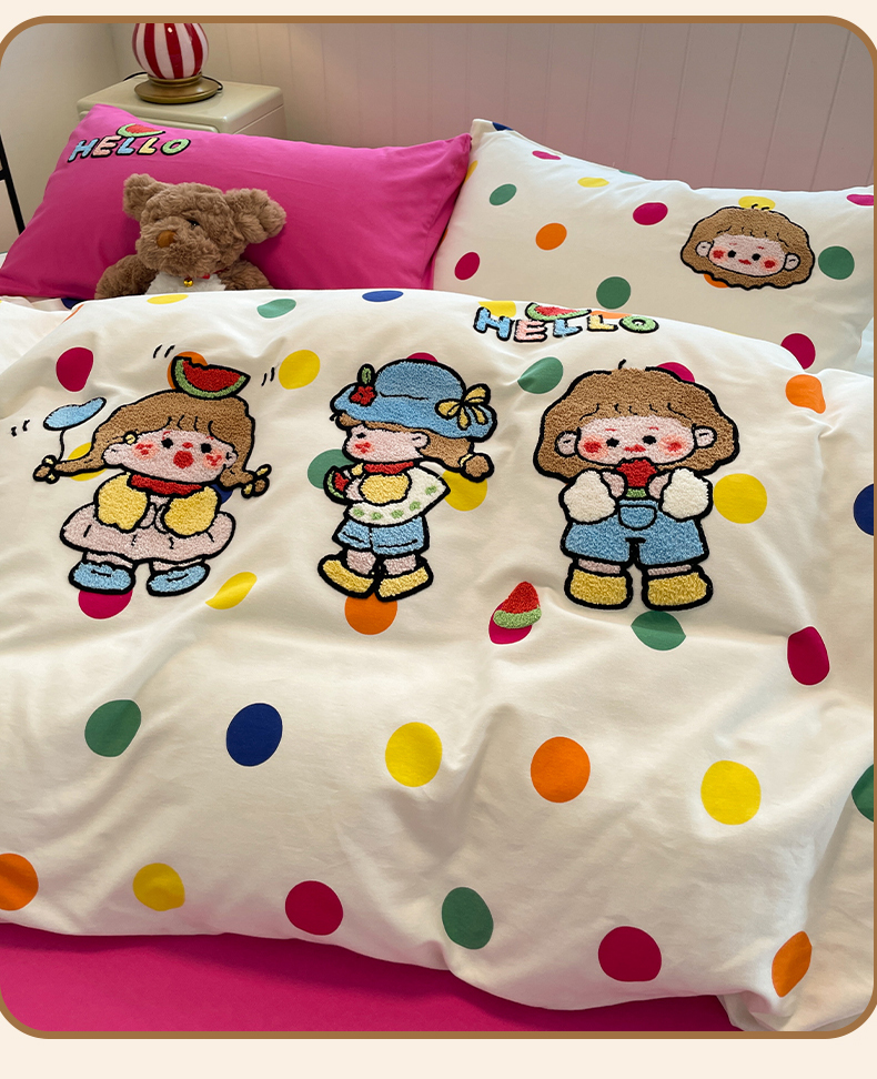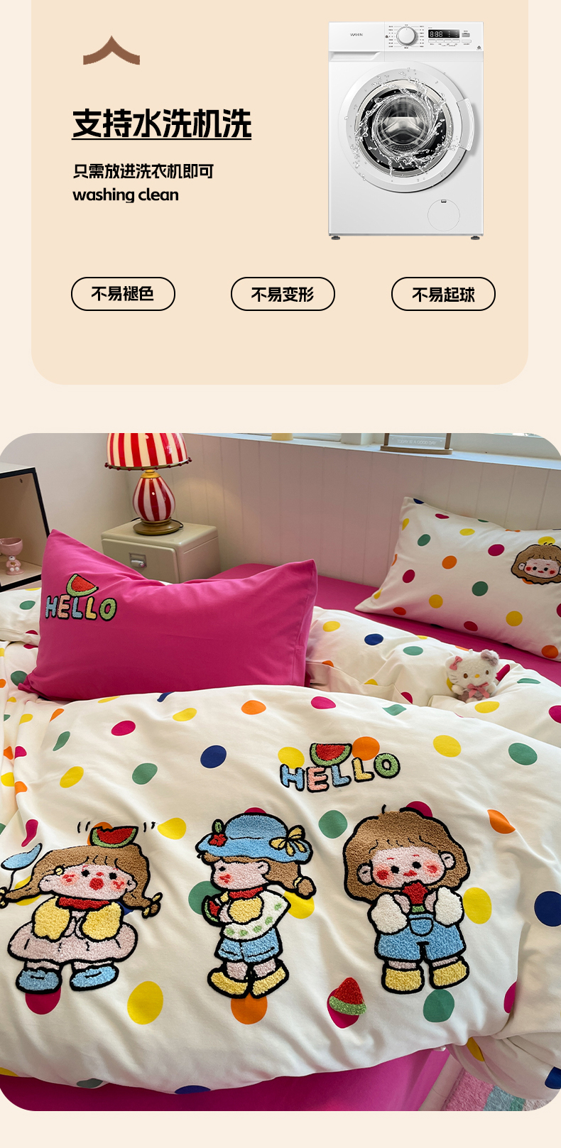 当前位置: 91家纺网 > 商品网购 > 床品套件 > 四件套 > 普通磨毛四件套 > 蓝邻家纺 2025新款全棉磨毛卡通刺绣款四件套--毛巾绣系列 甜趣玩伴