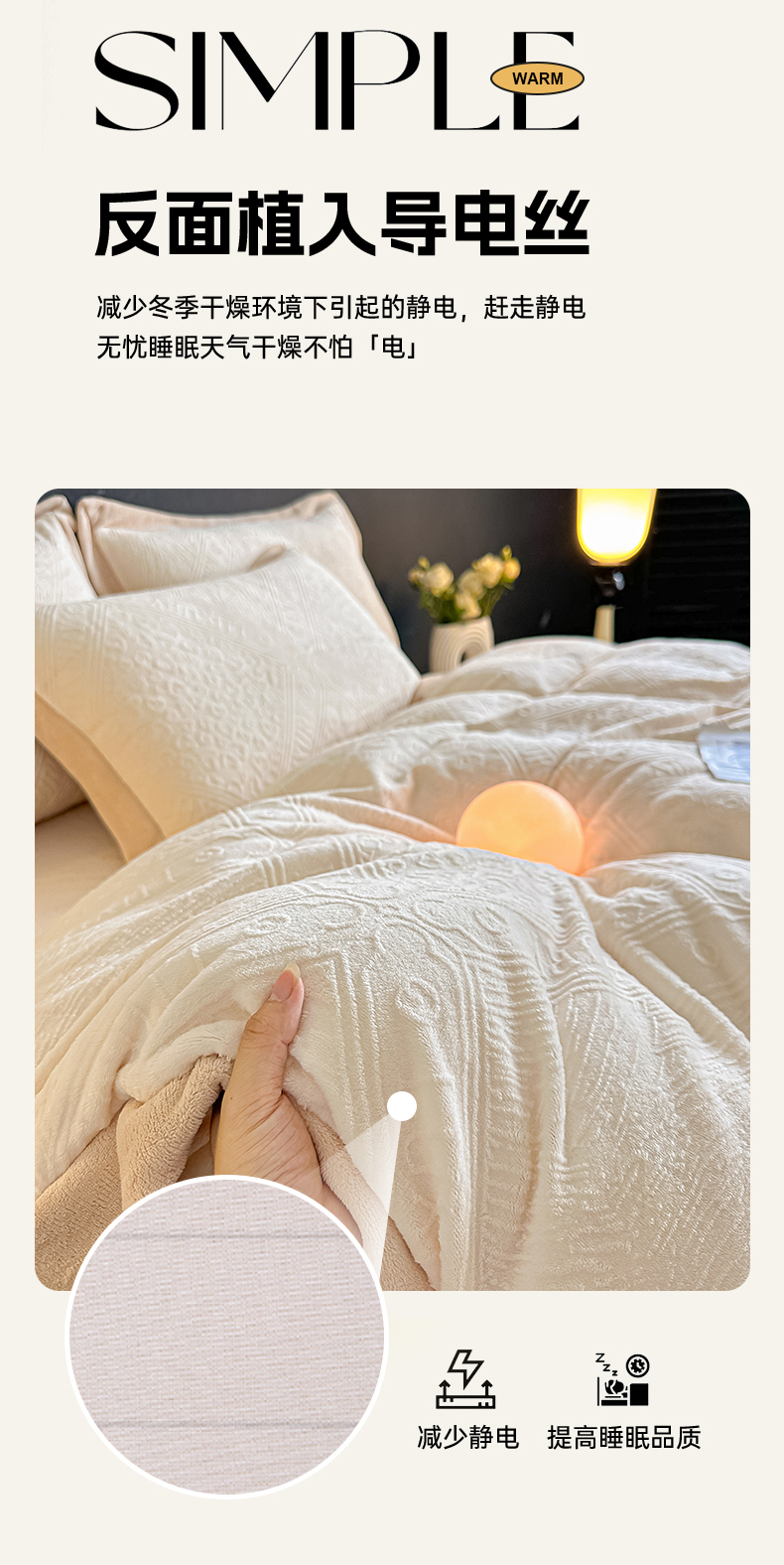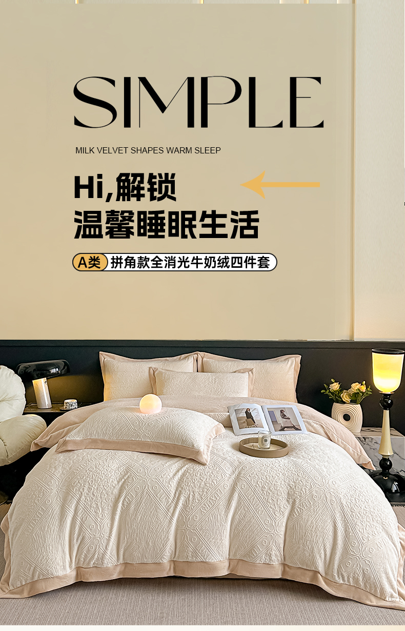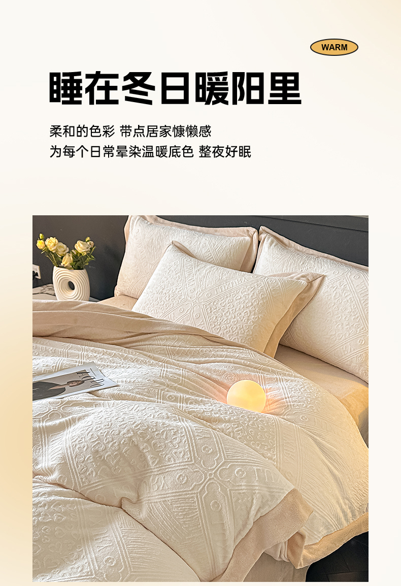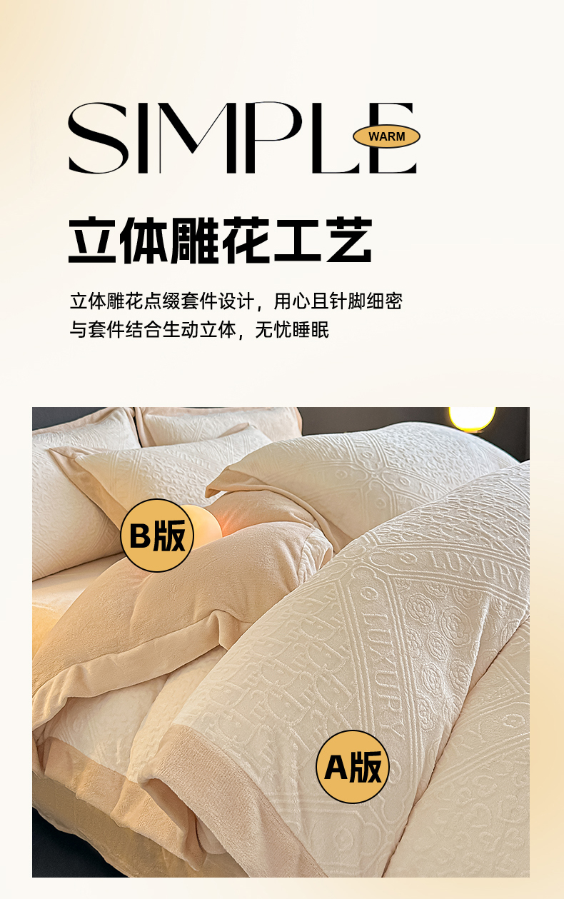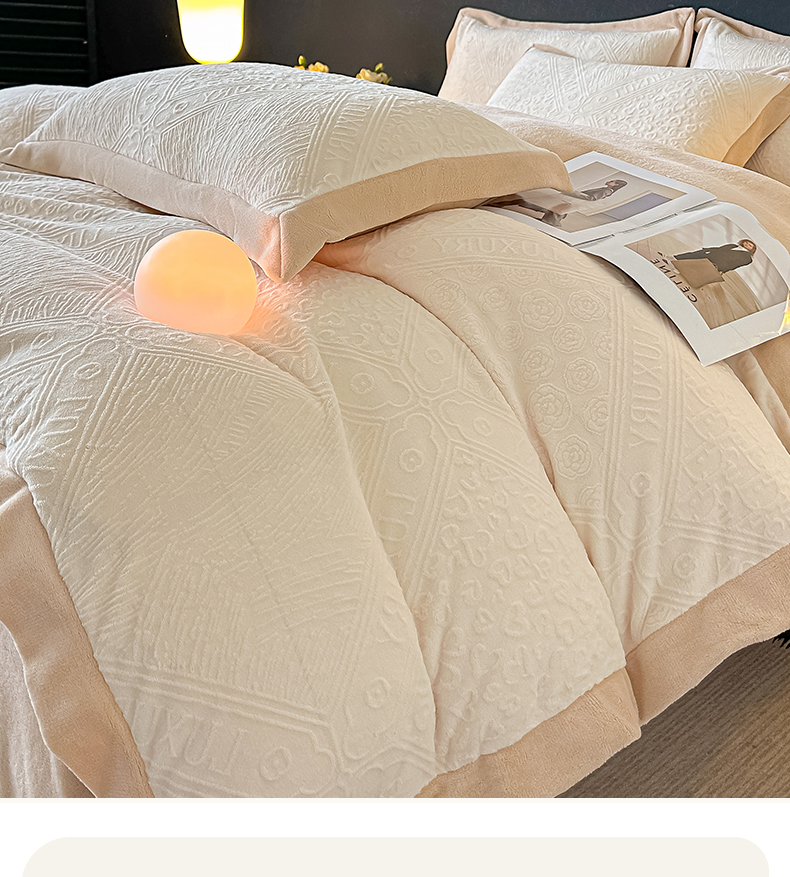当前位置: 91家纺网 > 商品网购 > 床品套件 > 四件套 > 牛奶绒四件套 > 亿梵家居 2025秋冬新款-拼角款A类全消光牛奶绒立体5D雕花绒四件套 图兰朵-奶油白