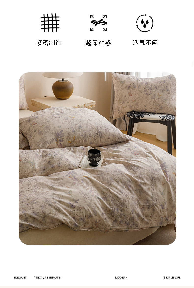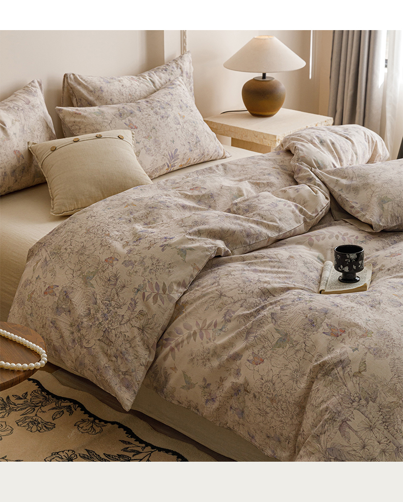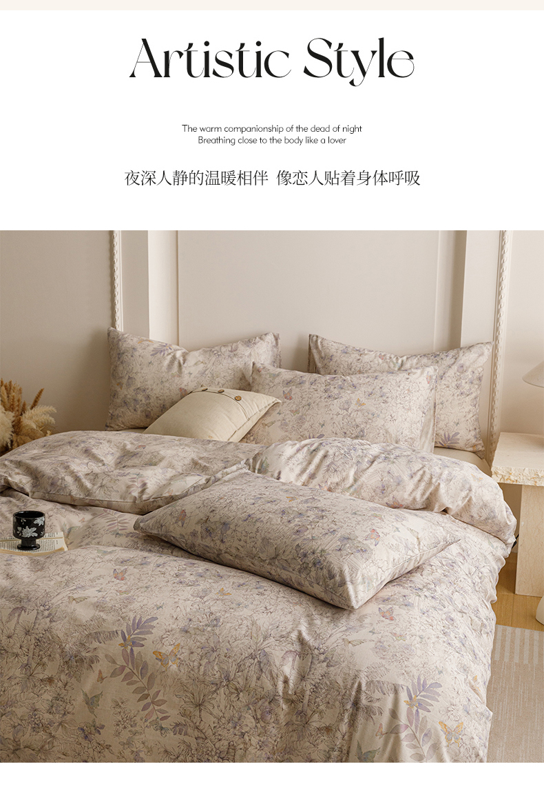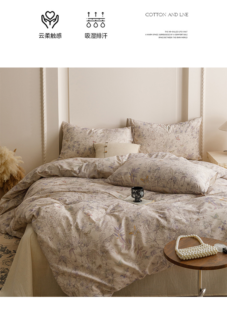 当前位置: 91家纺网 > 商品网购 > 床品套件 > 四件套 > 其它四件套 > 爱思佳 2025新款棉麻数码印花四件套 花蝶-紫