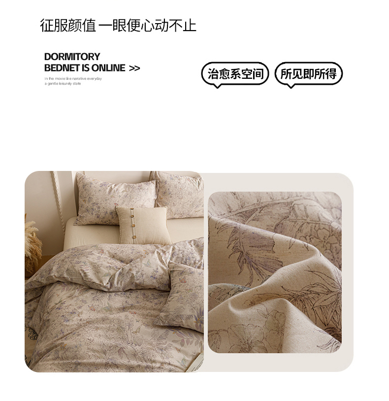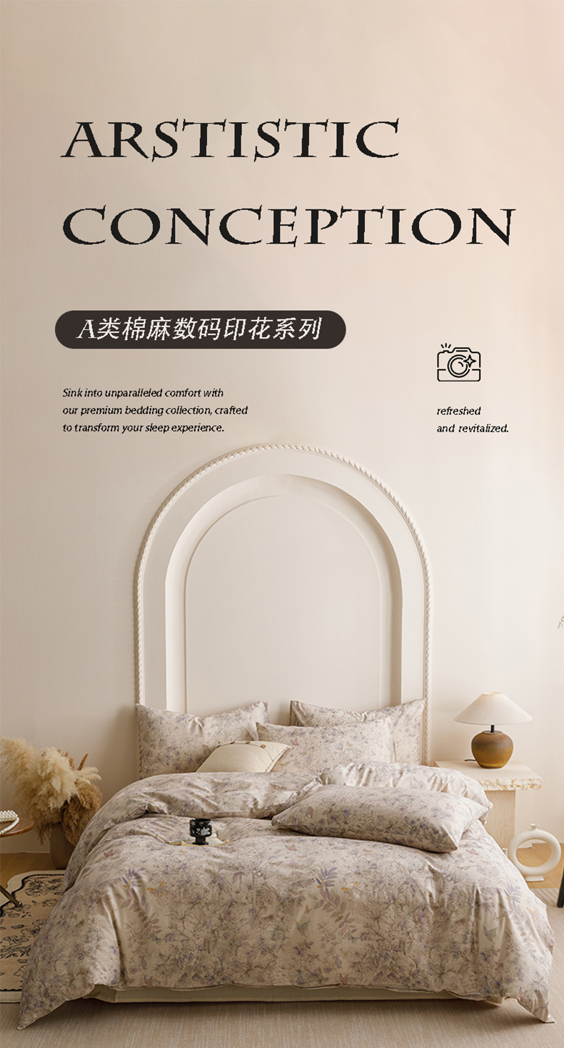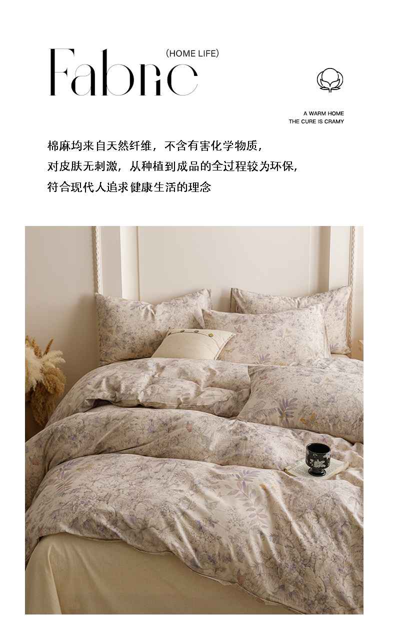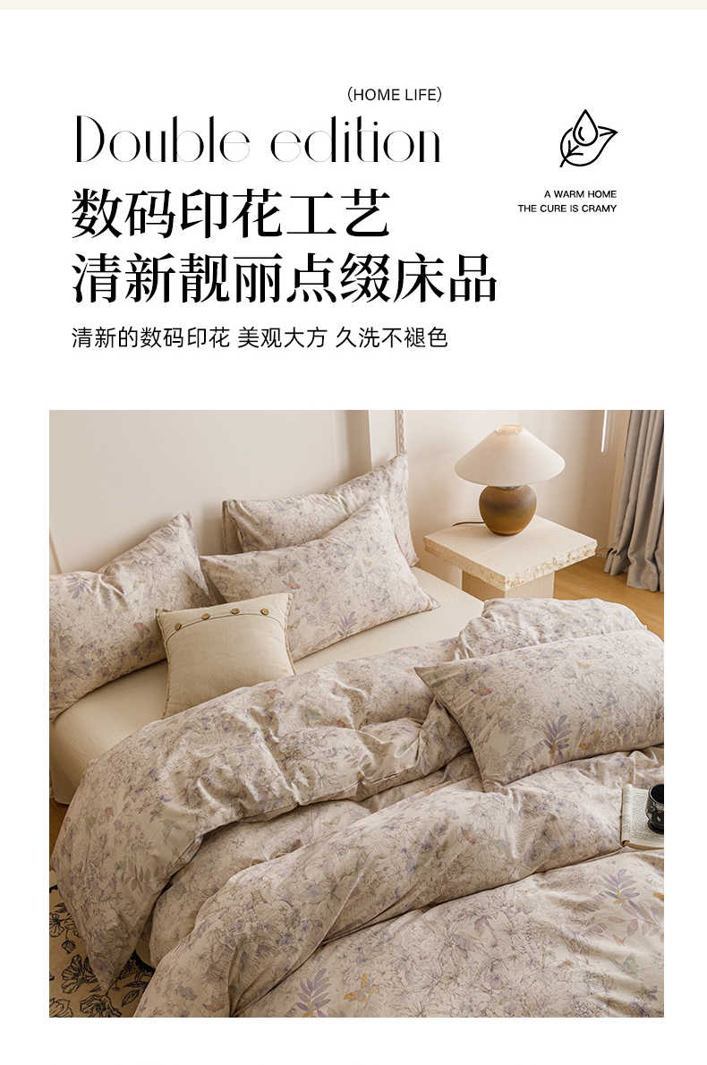 当前位置: 91家纺网 > 商品网购 > 床品套件 > 四件套 > 其它四件套 > 爱思佳 2025新款棉麻数码印花四件套 花蝶-紫