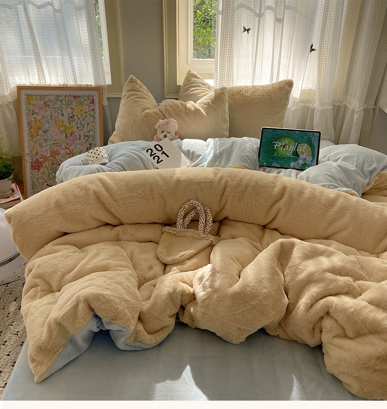 当前位置: 91家纺网 > 商品网购 > 床品套件 > 四件套 > 牛奶绒四件套 > 金爱家 2025新款全消光牛奶绒A类纯色獭兔毛绒立体四件套 混搭-黄蓝