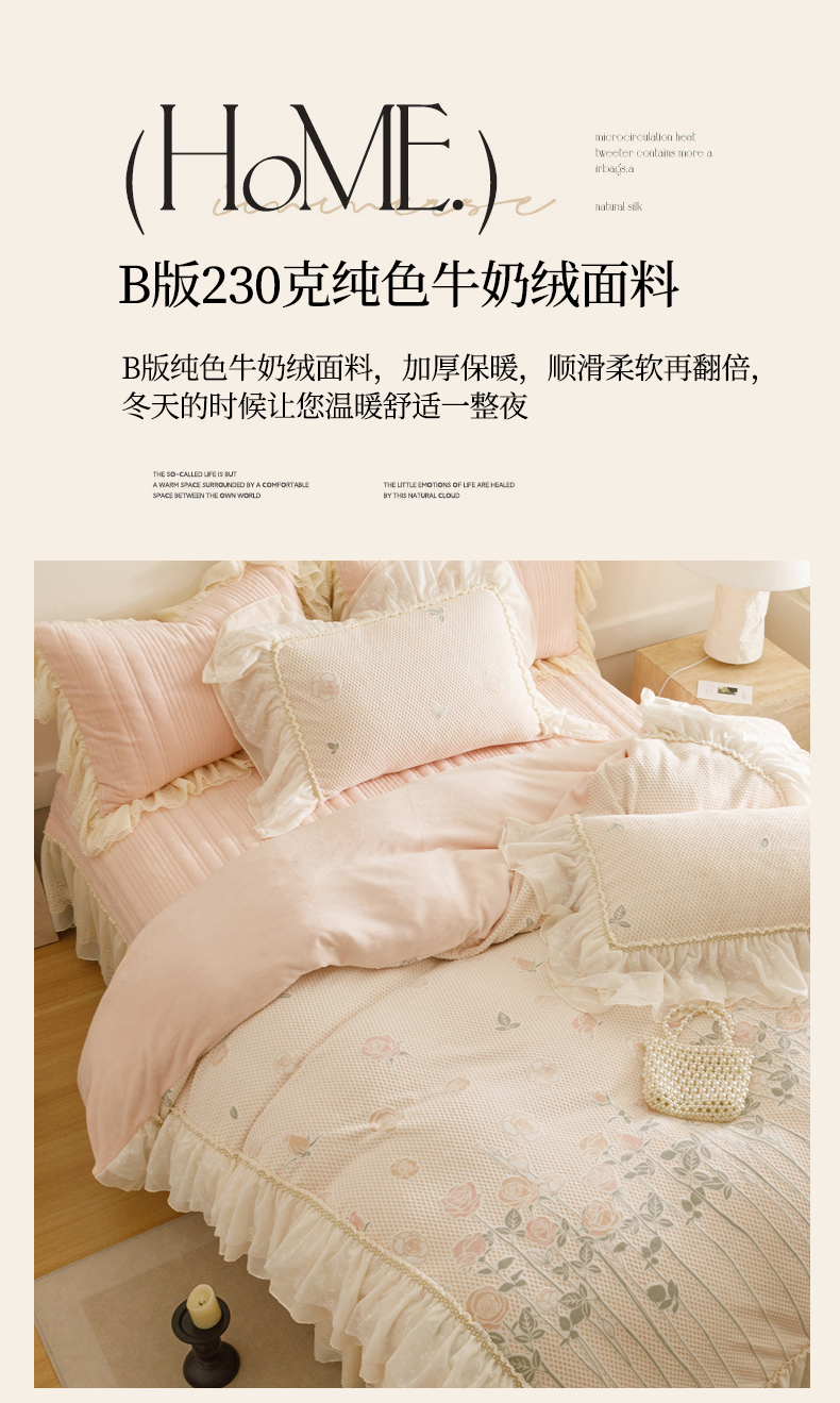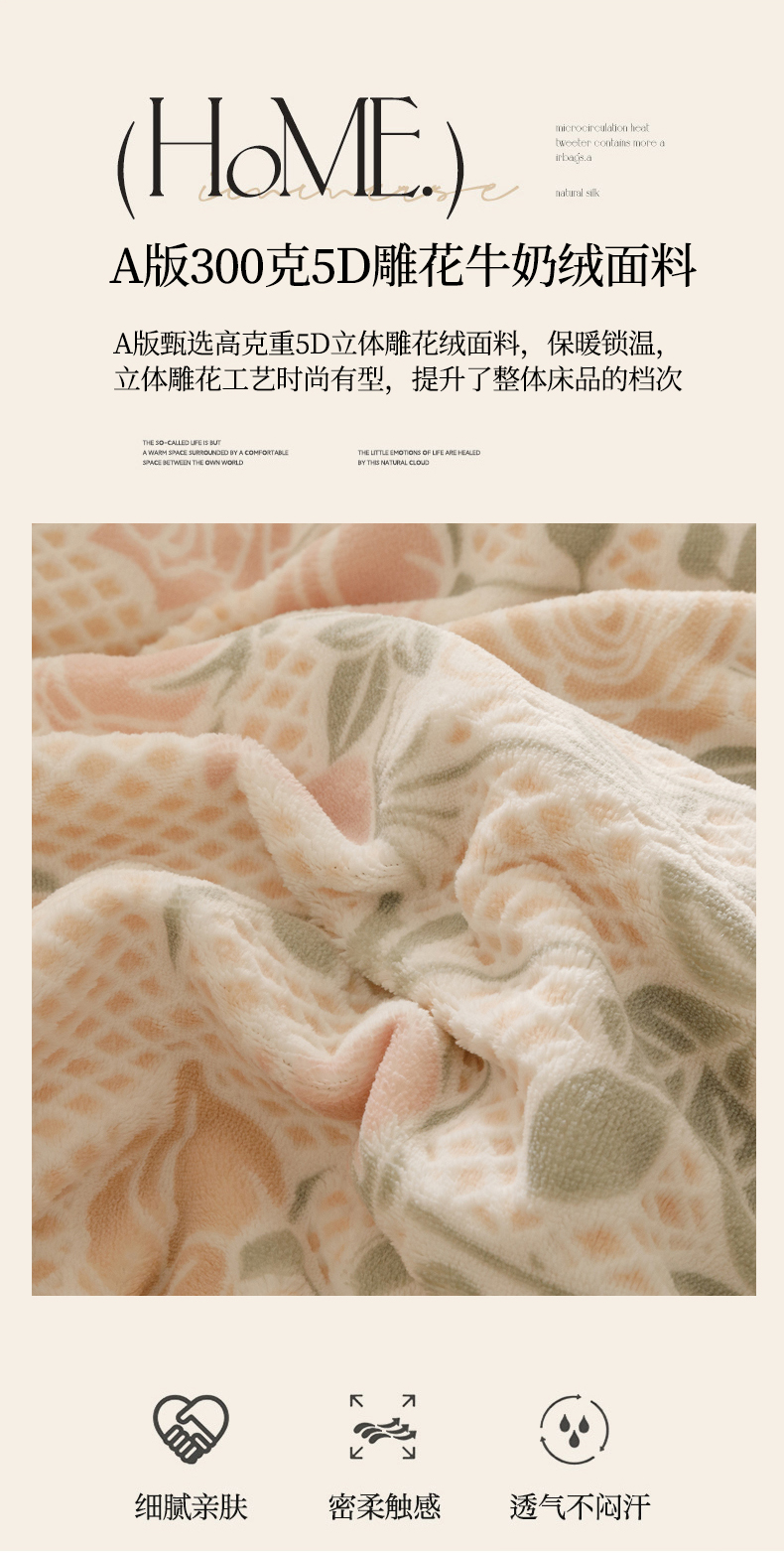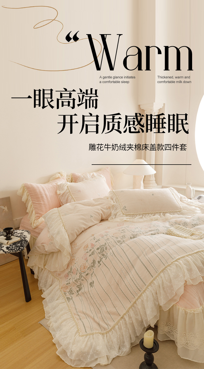 当前位置: 91家纺网 > 商品网购 > 床品套件 > 四件套 > 牛奶绒四件套 > (总)菊上家纺 2025新品高克重着色雕花浪漫玫瑰绒床盖款四件套-玫瑰故事系列