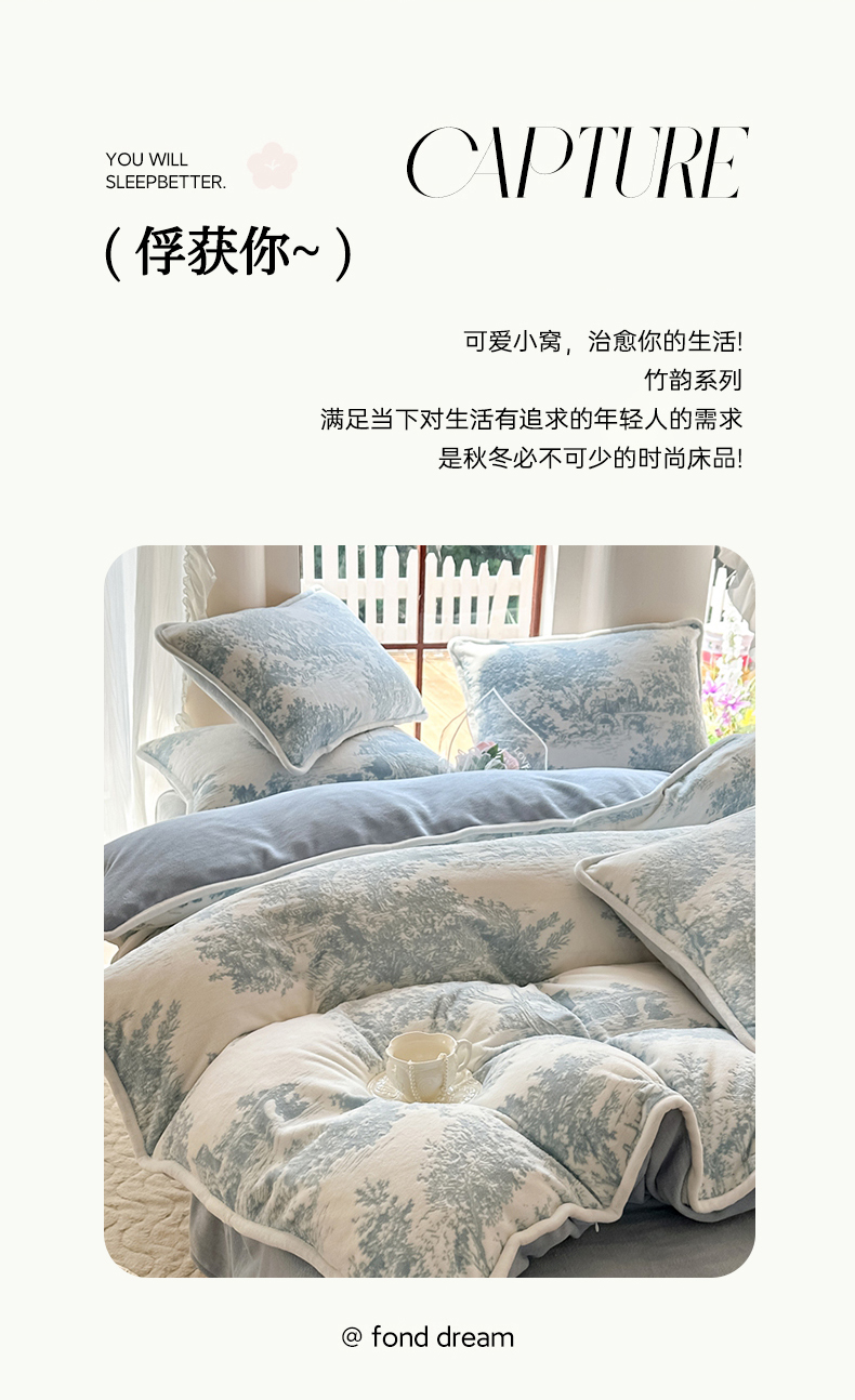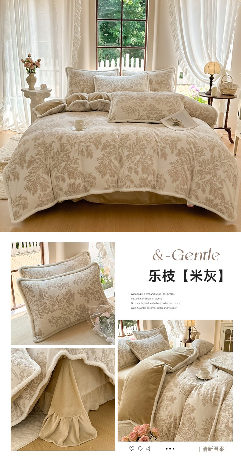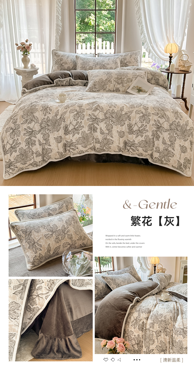 • 91家纺网 家纺一手货源 找家纺 总亿品2025新款直播爆款韩版赫本风高克重牛奶绒四件套床裙款 8.5斤(有买家秀加v),暗香疏影,春风十里,春枝,扶苏,红叶寄暖,花浅红,花影,花语,露娜,漫花飞舞,摩登时代,秋恋,赛琳娜,水树风闲,椰树林,知秋,花边紫韵