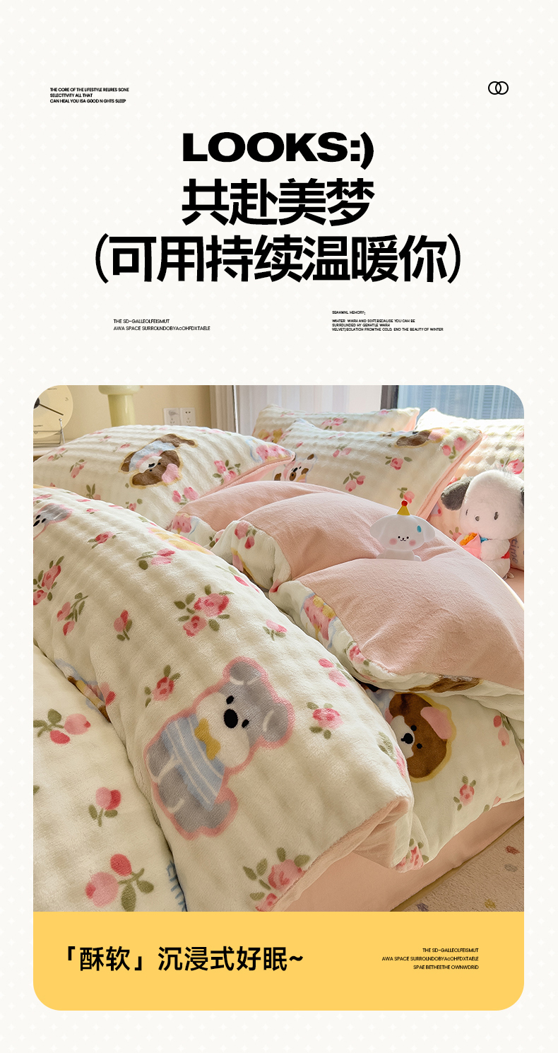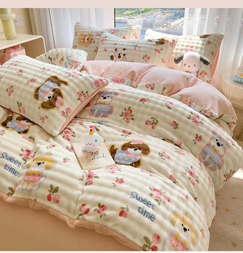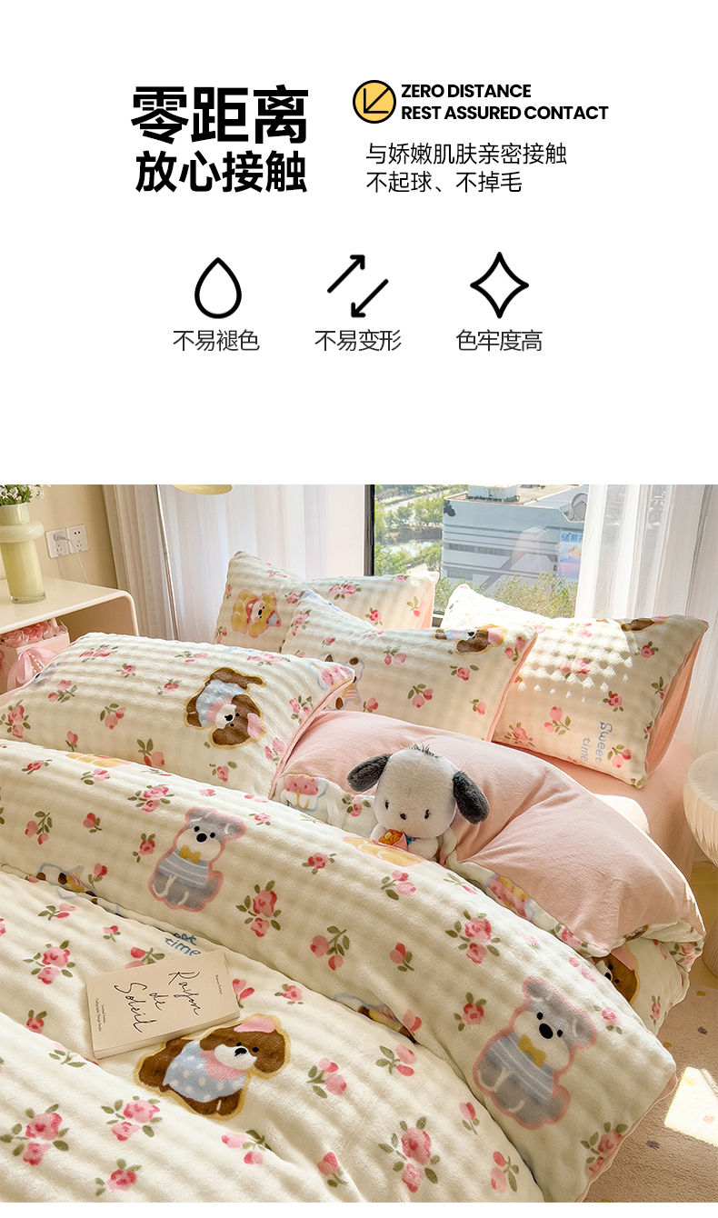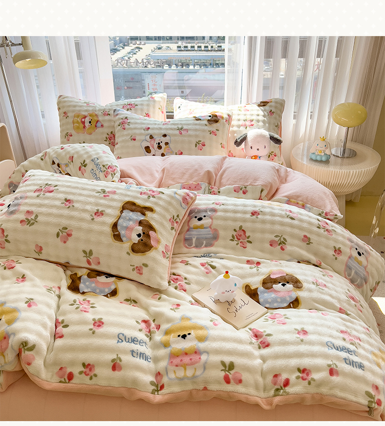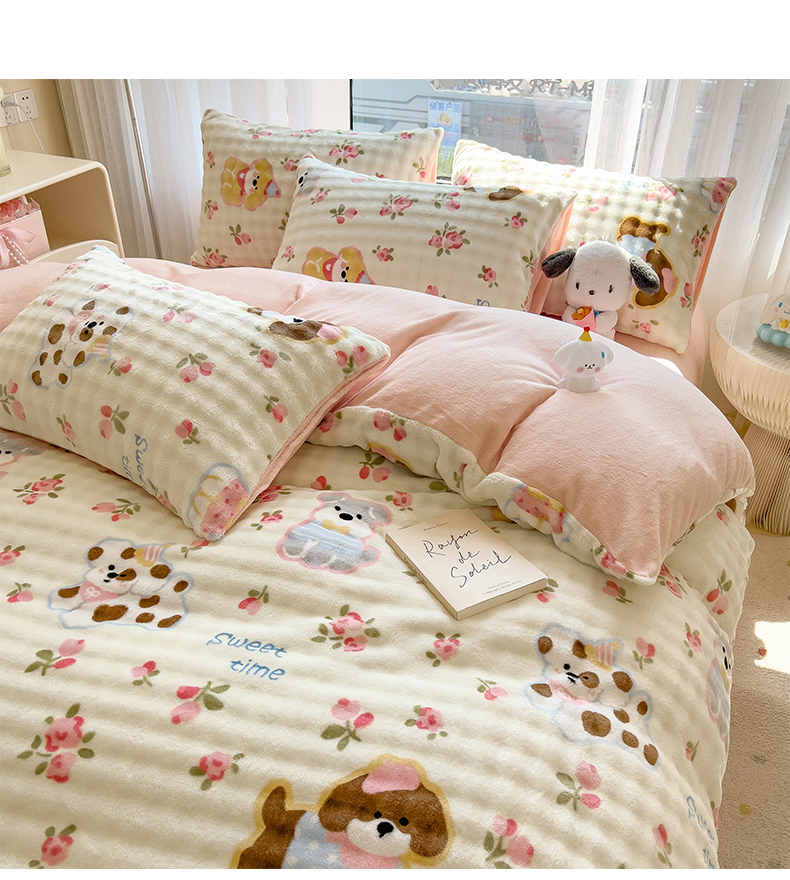 当前位置: 91家纺网 > 商品网购 > 床品套件 > 四件套 > 牛奶绒四件套 > 摩妮卡 2025新款小清新加厚260克牛奶绒泡泡绒四件套 花园狗
