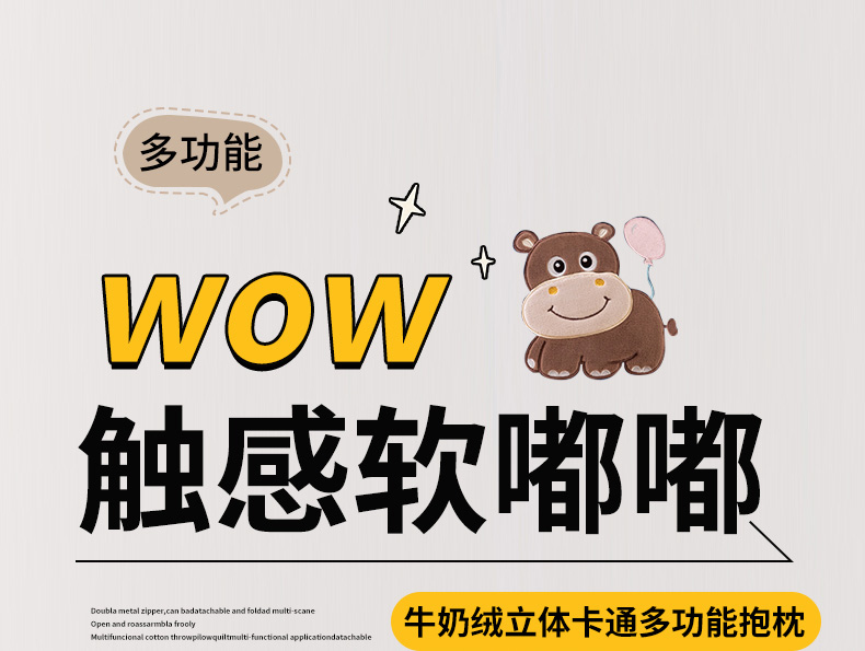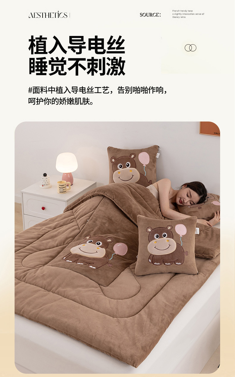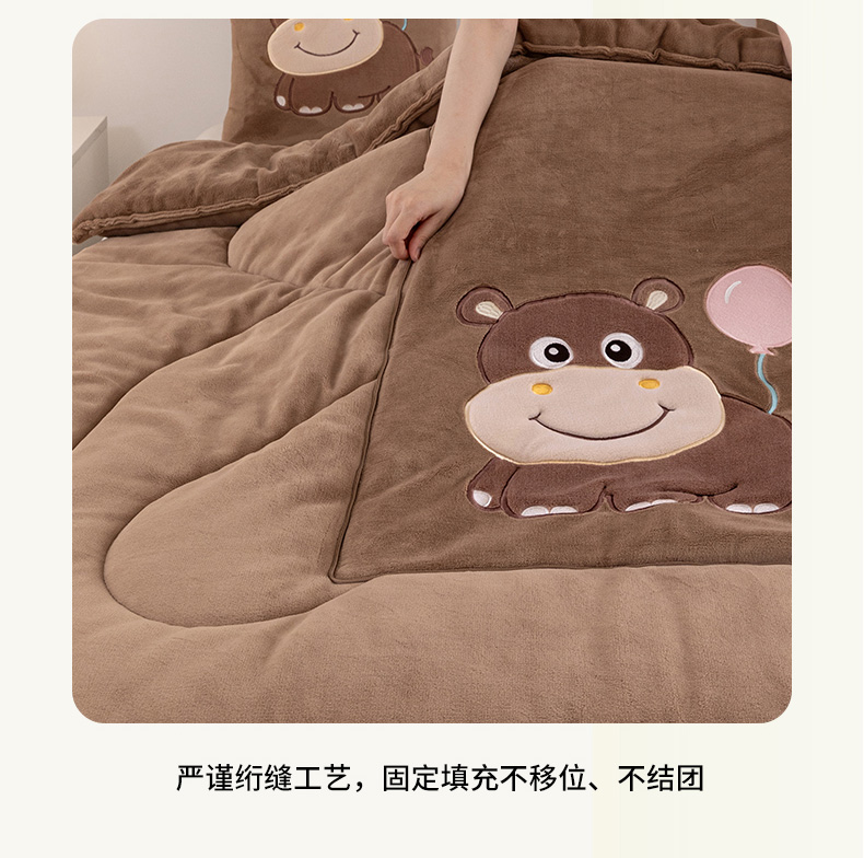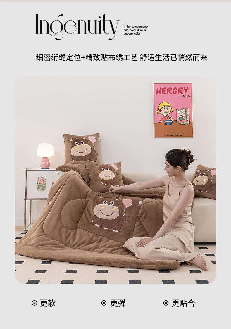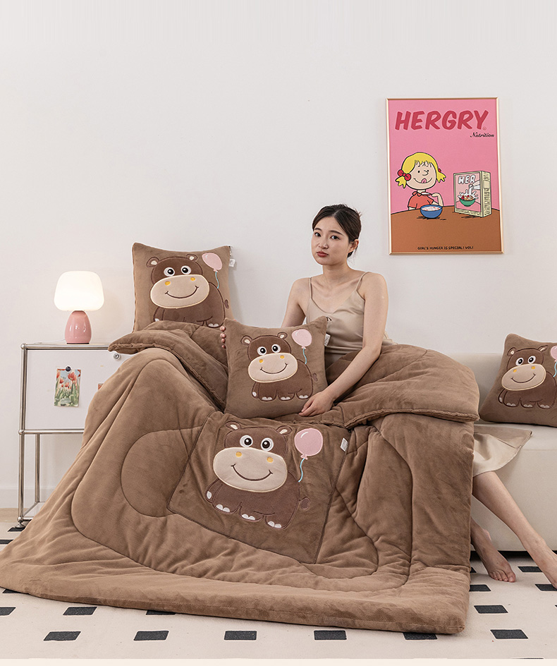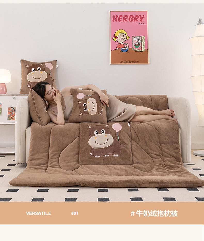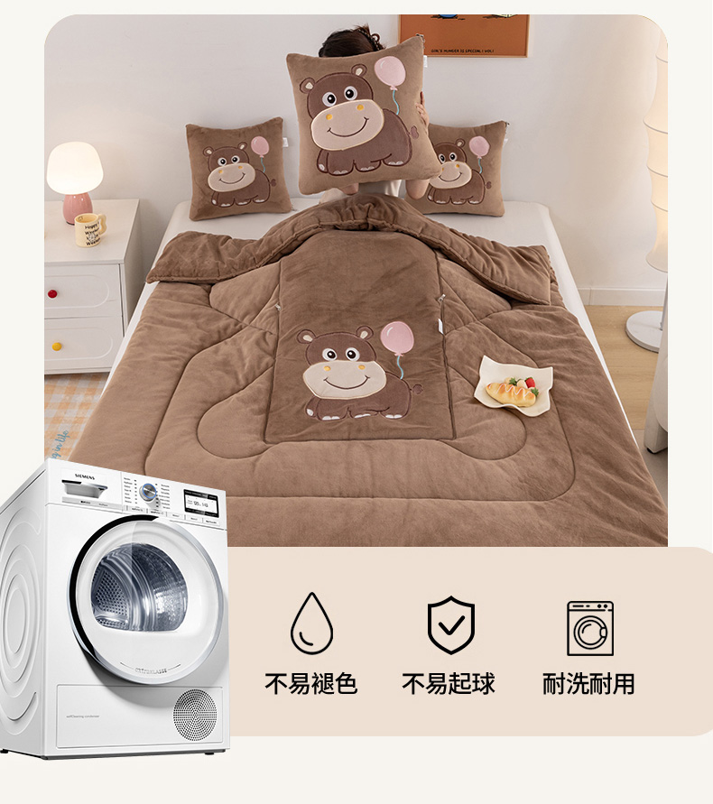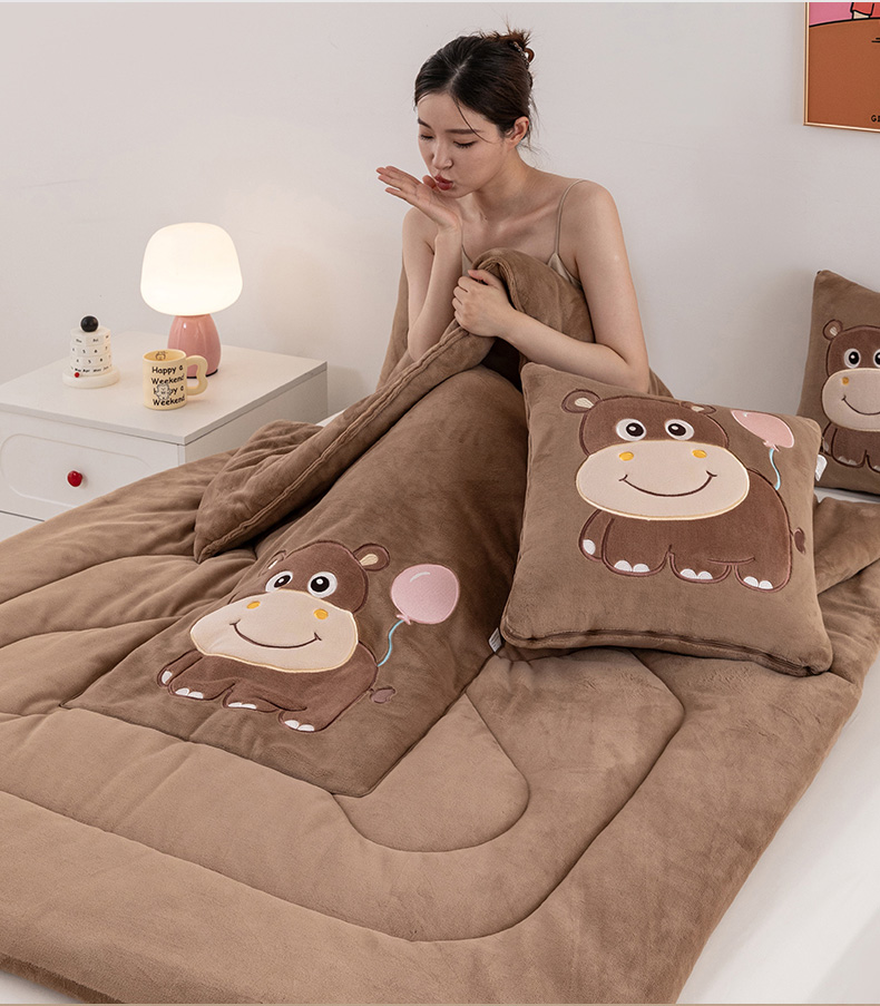 商品名称:哩哩熊 2025新款抱枕被子两用加厚牛奶绒二合一汽车载枕头办公室午睡毯子冬天-气球河马 气球河马-深咖