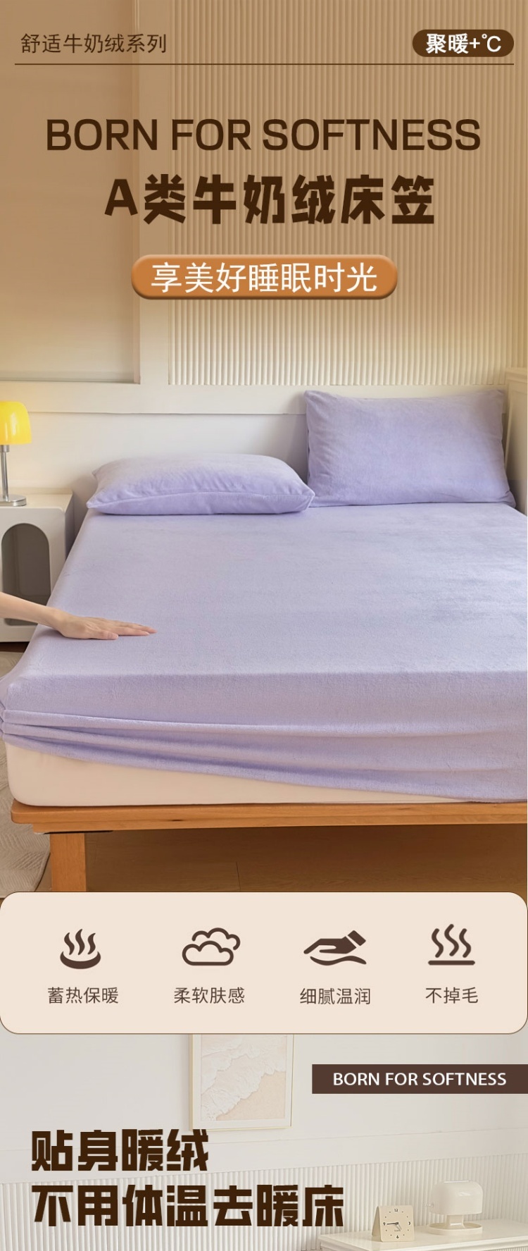 • 91家纺网 家纺一手货源 找家纺 璐维斯 2025新款秋冬保暖牛奶绒床笠床垫套保护套跨境外贸电商全尺寸现货 浅紫