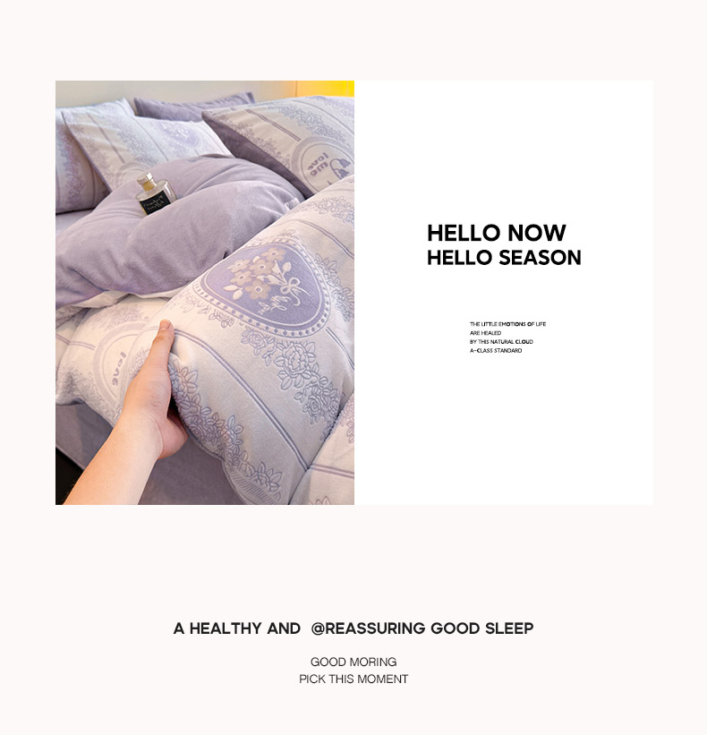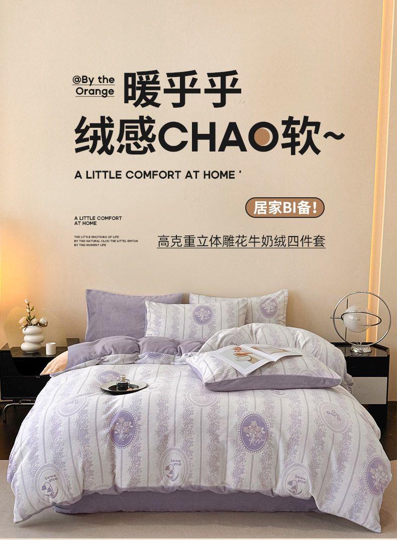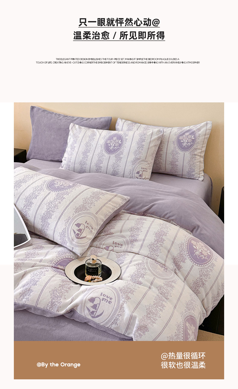 吾诺家居 2025新款雕花牛奶绒柔美系列四件套 米娅紫