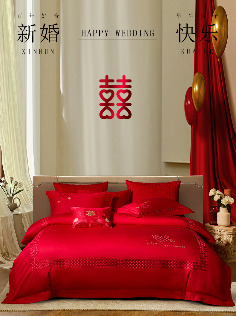 当前位置: 91家纺网 > 商品网购 > 床品套件 > 四件套 > 长绒棉四件套 > 高大尚婚庆馆 2025秋冬新款长绒棉臻棉系列婚庆款多件套星河花海