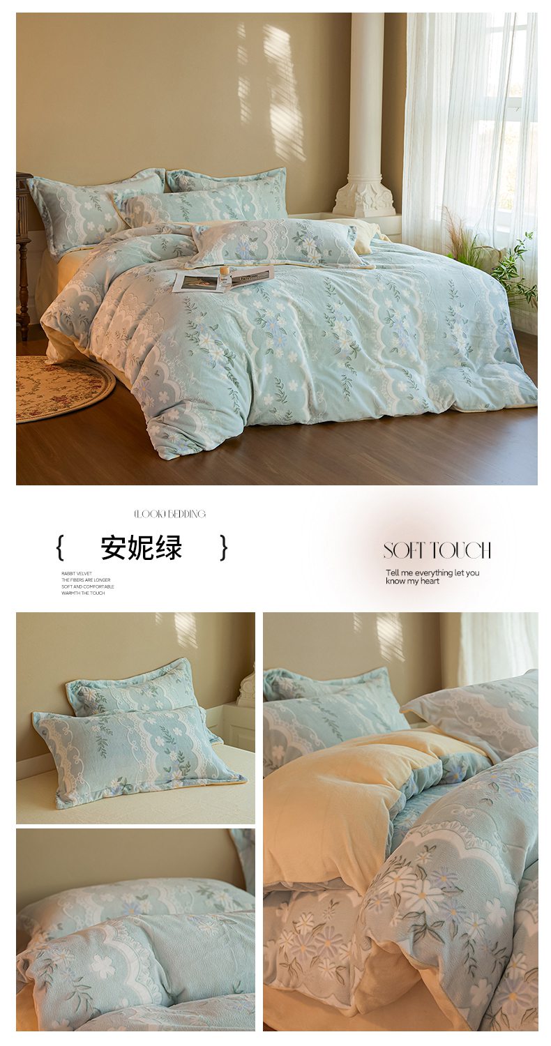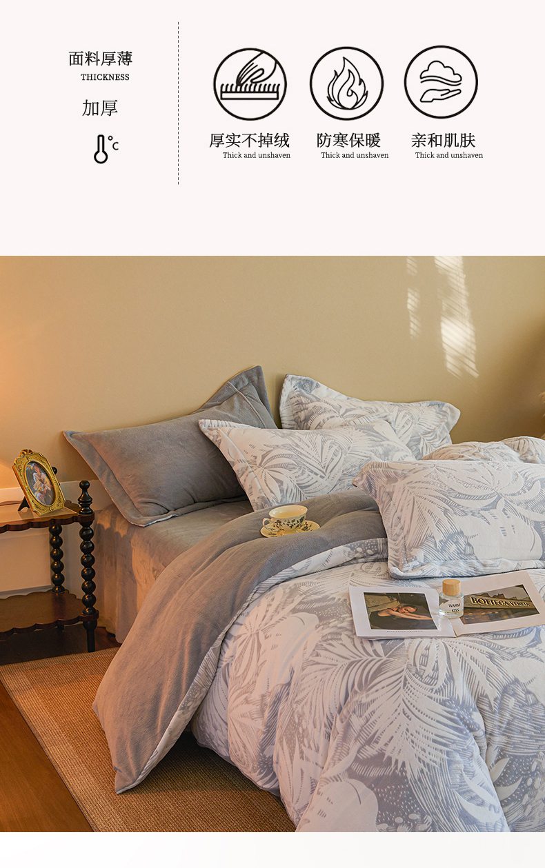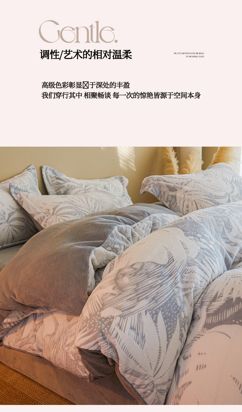 当前位置: 91家纺网 > 商品网购 > 床品套件 > 四件套 > 牛奶绒四件套 > 菡宝 【主推第三批 带质检报告】A类全消光230g雕花绒牛奶绒四件套支持定制定做尺寸 冬之恋