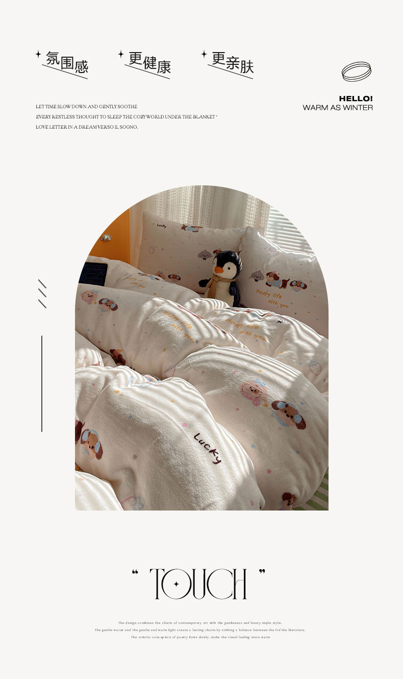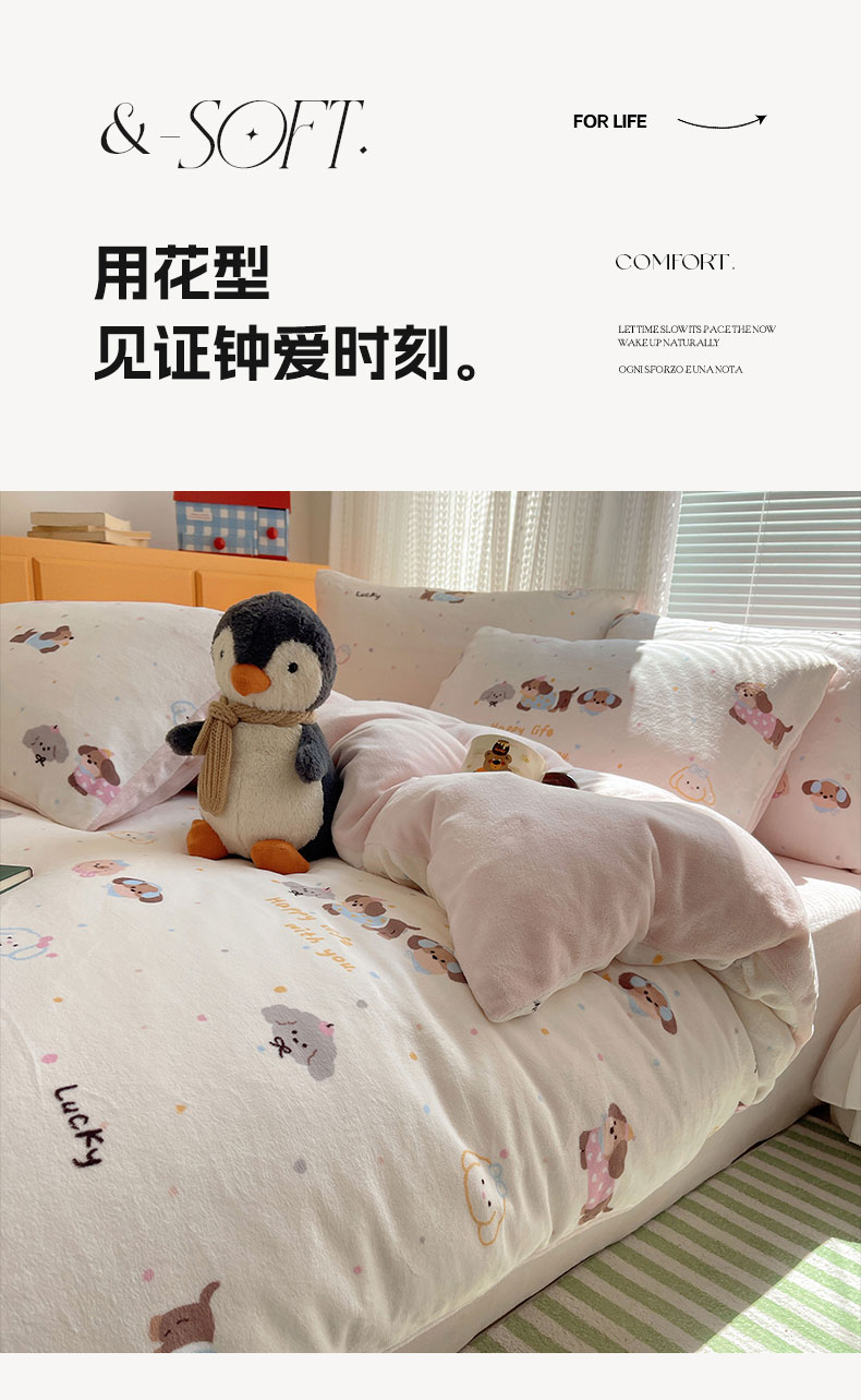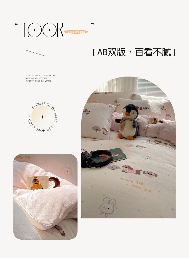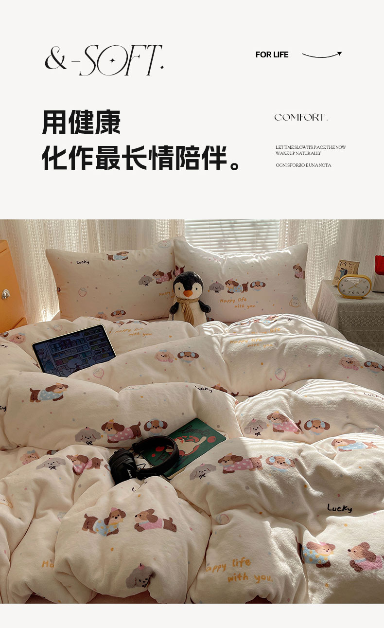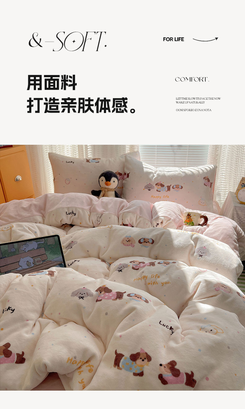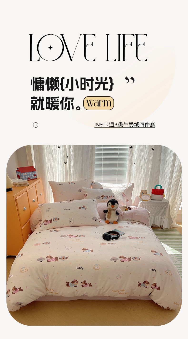 六巷胡同 2025新款INS卡通A类200克牛奶绒基础款四件套(第一系) 基础款-腊肠狗联盟